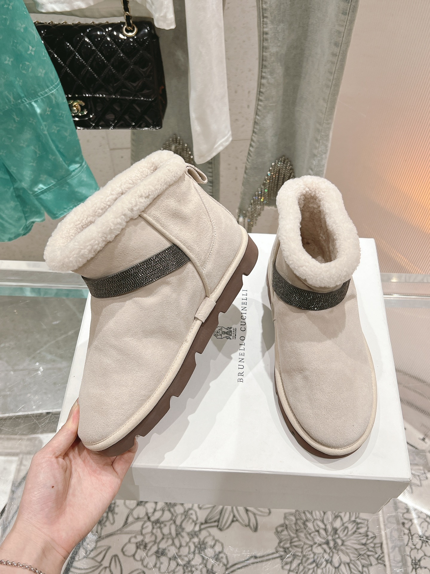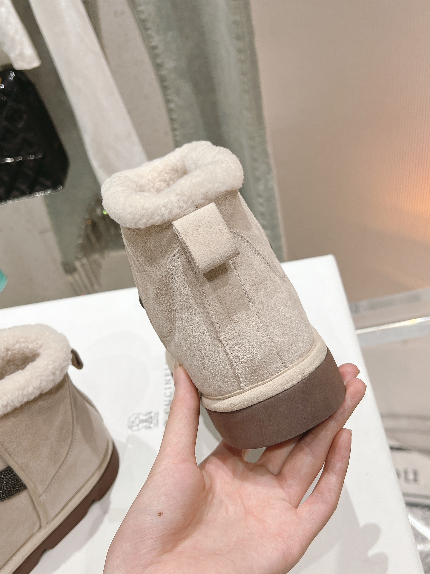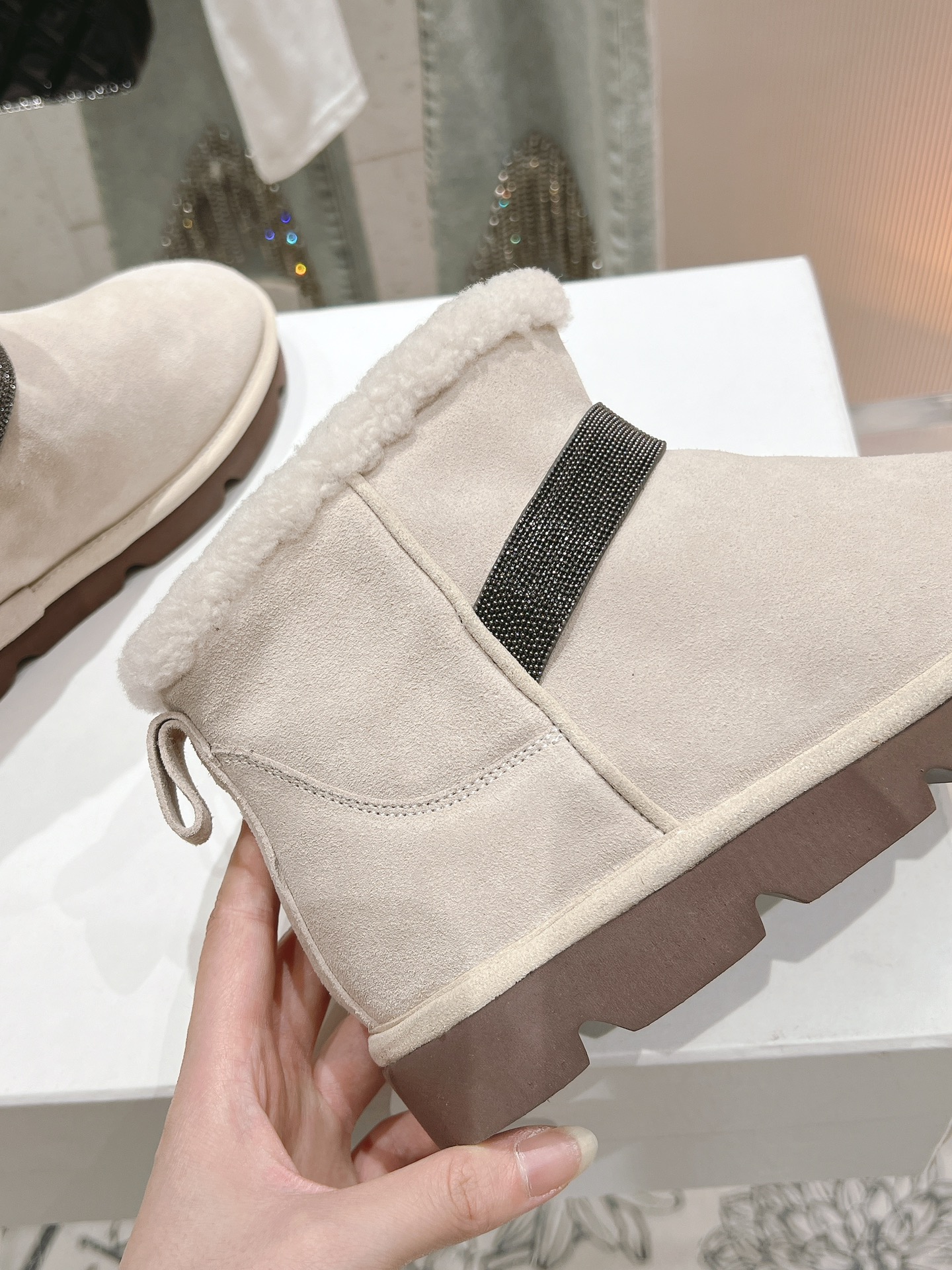 这款鞋子是AAAAA 1:1 质量 (非常棒). 使用了和原版一模一样的材料. 商标部分也保持了和UGG雪地靴一样. 图片拍摄是实物鞋子拍摄, 您所收到的实物保证和我们图片一模一样.