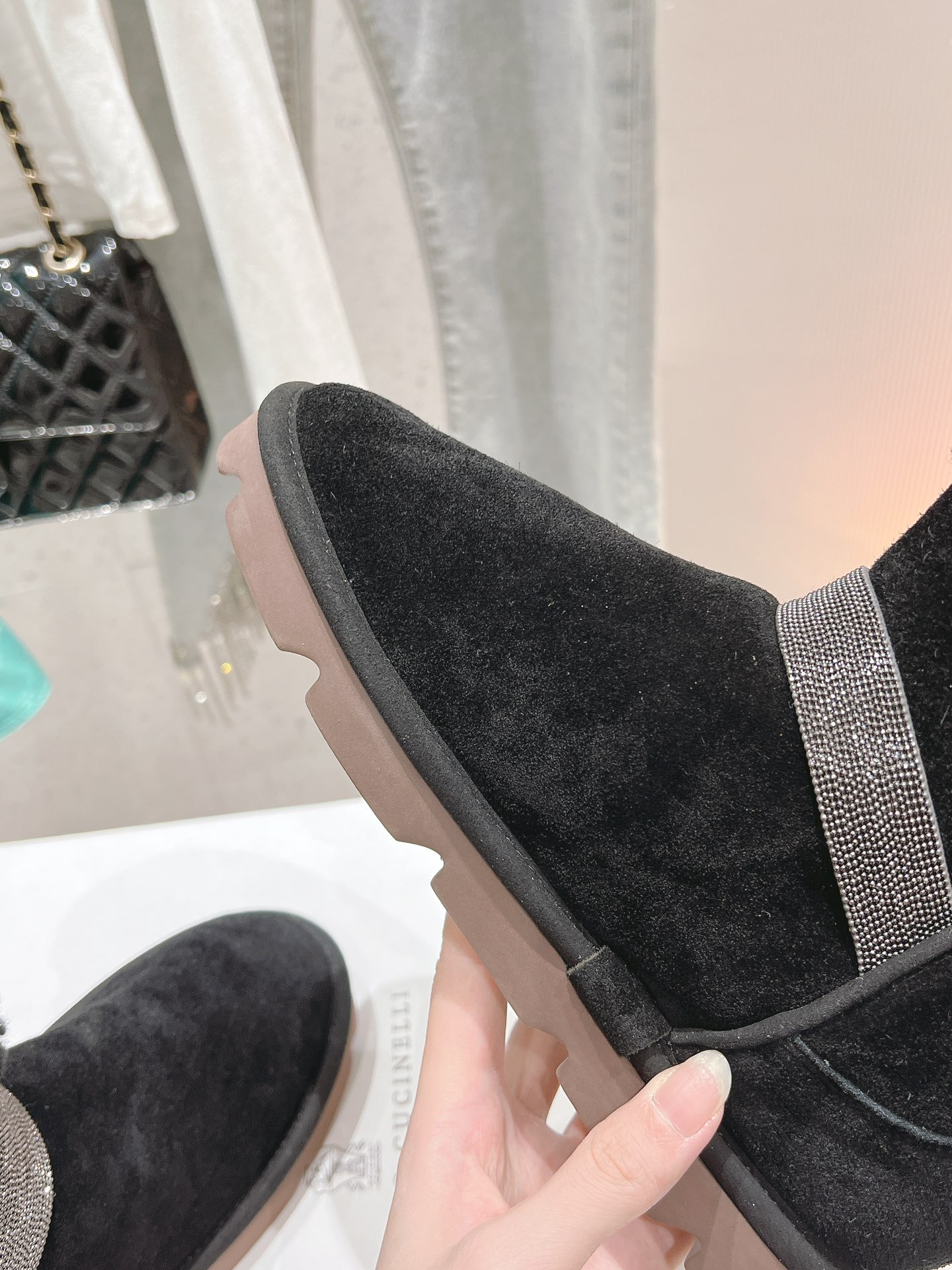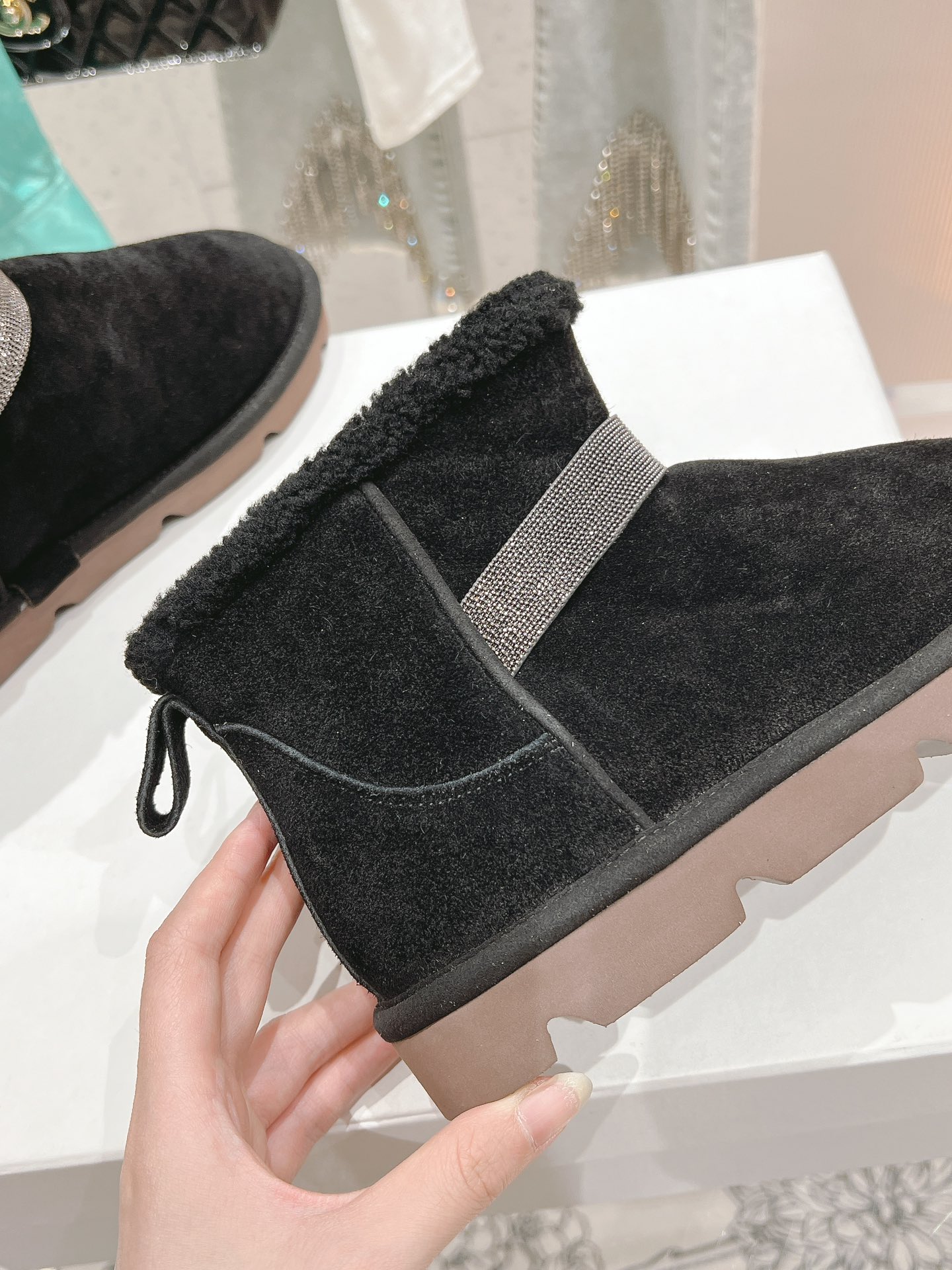 这款鞋子是AAAAA 1:1 质量 (非常棒). 使用了和原版一模一样的材料. 商标部分也保持了和UGG雪地靴一样. 图片拍摄是实物鞋子拍摄, 您所收到的实物保证和我们图片一模一样.