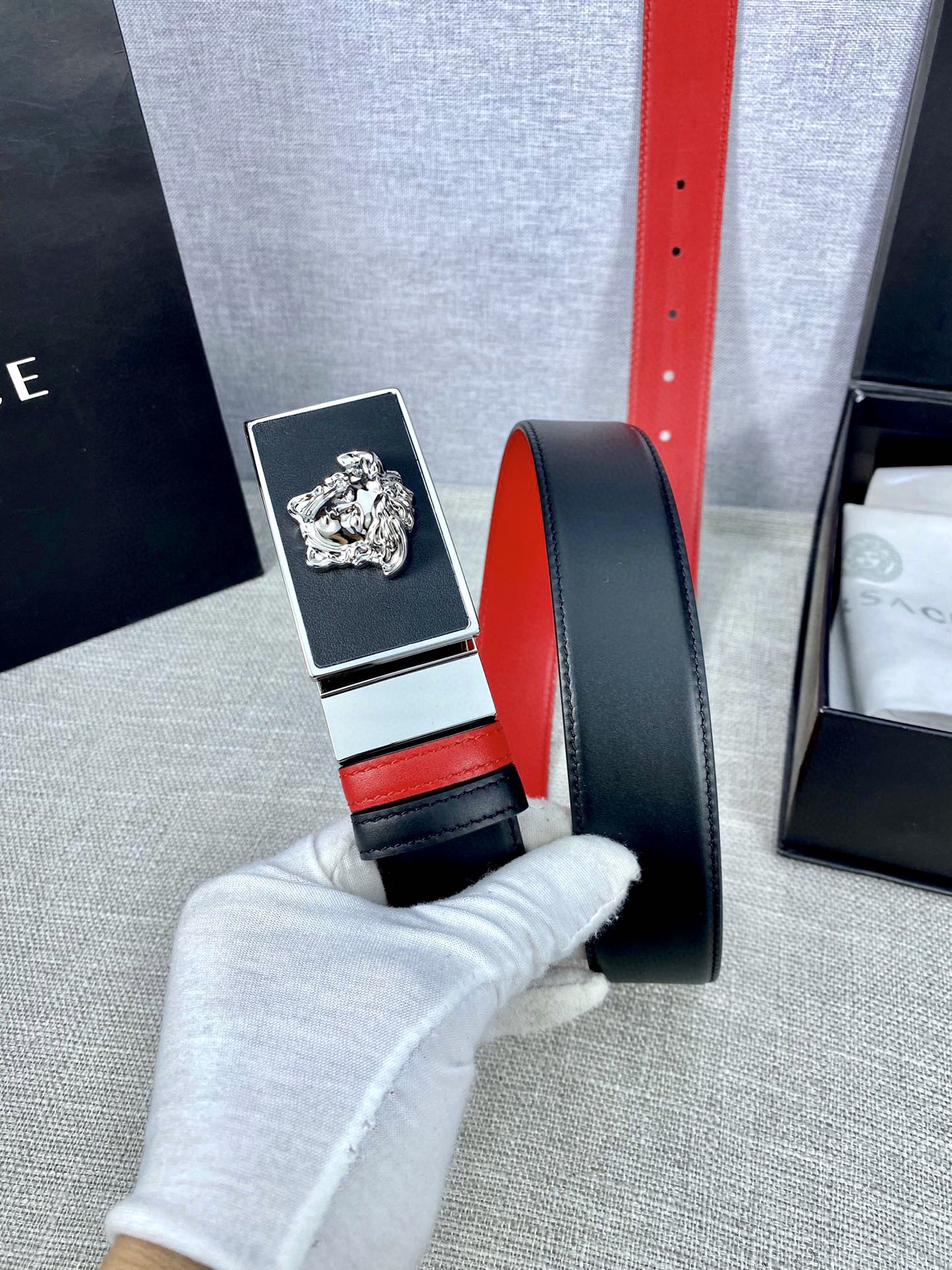 这款皮带是AAAAA 1:1 质量 (非常棒). 使用了和原版一模一样的材料. 商标部分也保持了和范思哲/Versace一样. 图片拍摄是实物皮带拍摄, 您所收到的实物保证和我们图片一模一样.