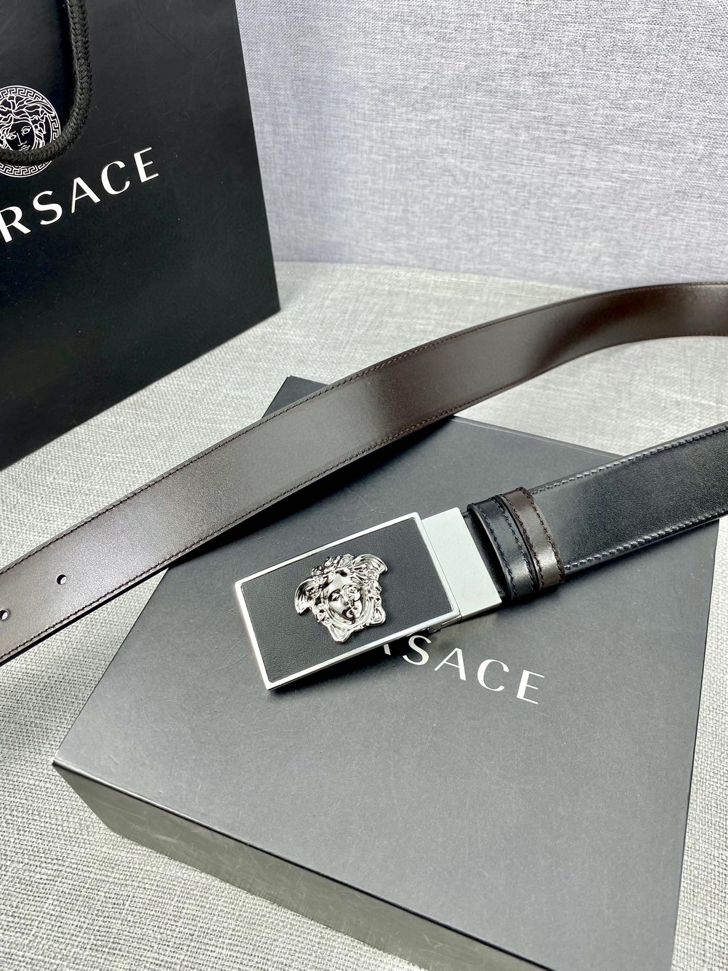这款皮带是AAAAA 1:1 质量 (非常棒). 使用了和原版一模一样的材料. 商标部分也保持了和范思哲/Versace一样. 图片拍摄是实物皮带拍摄, 您所收到的实物保证和我们图片一模一样.