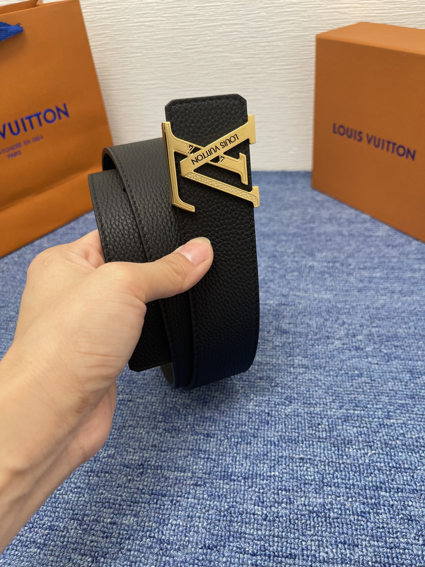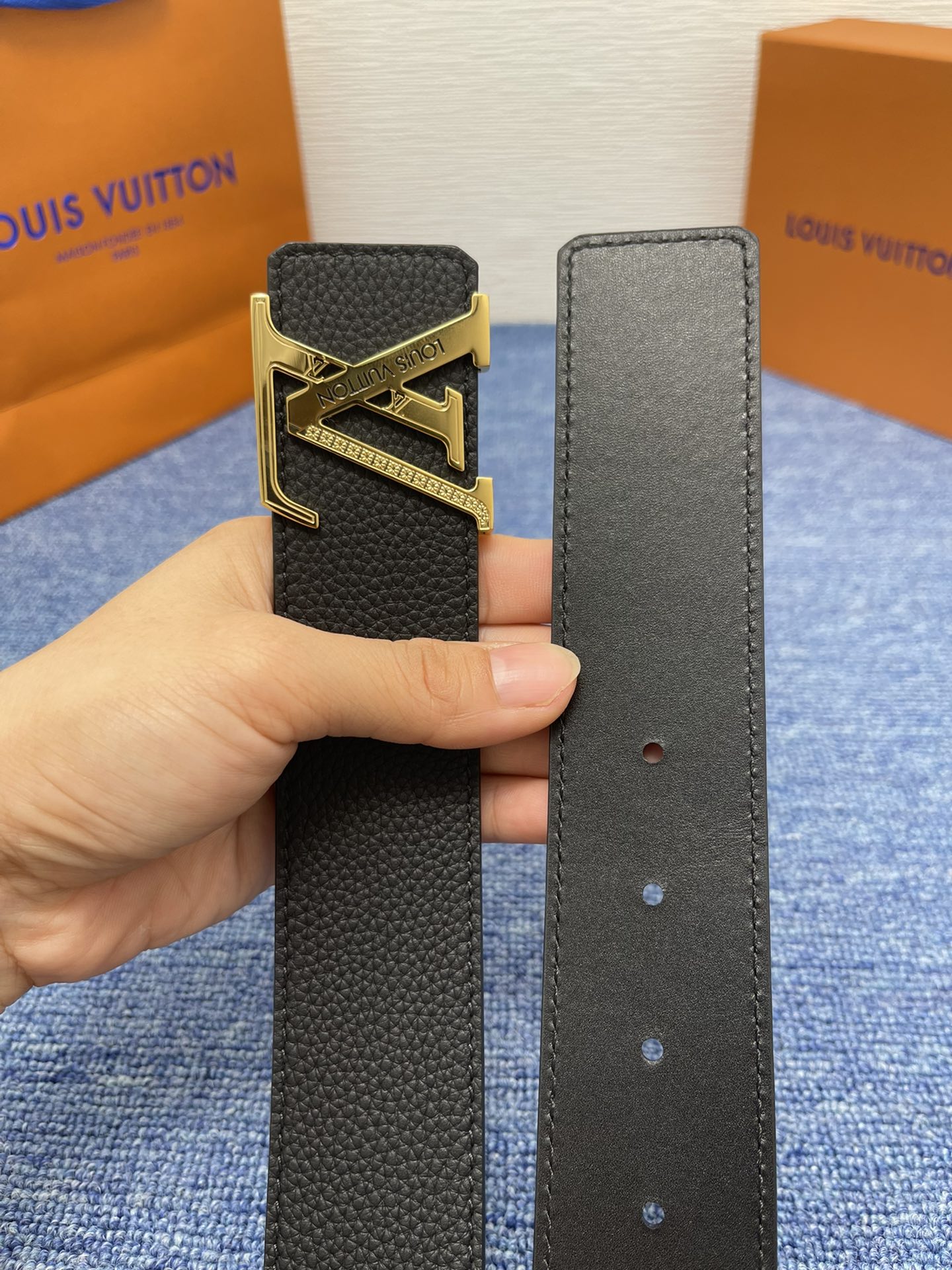 这款皮带是AAAAA 1:1 质量 (非常棒). 使用了和原版一模一样的材料. 商标部分也保持了和路易威登/Louis Vuitton一样. 图片拍摄是实物皮带拍摄, 您所收到的实物保证和我们图片一模一样.