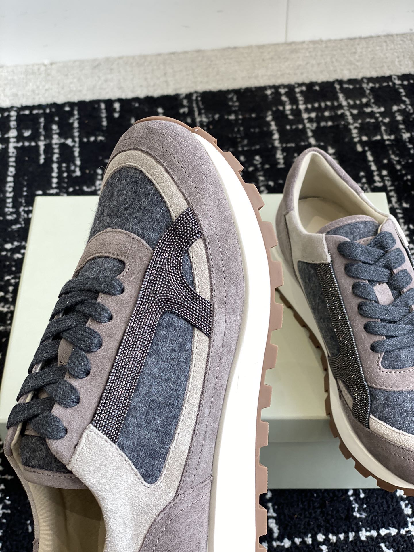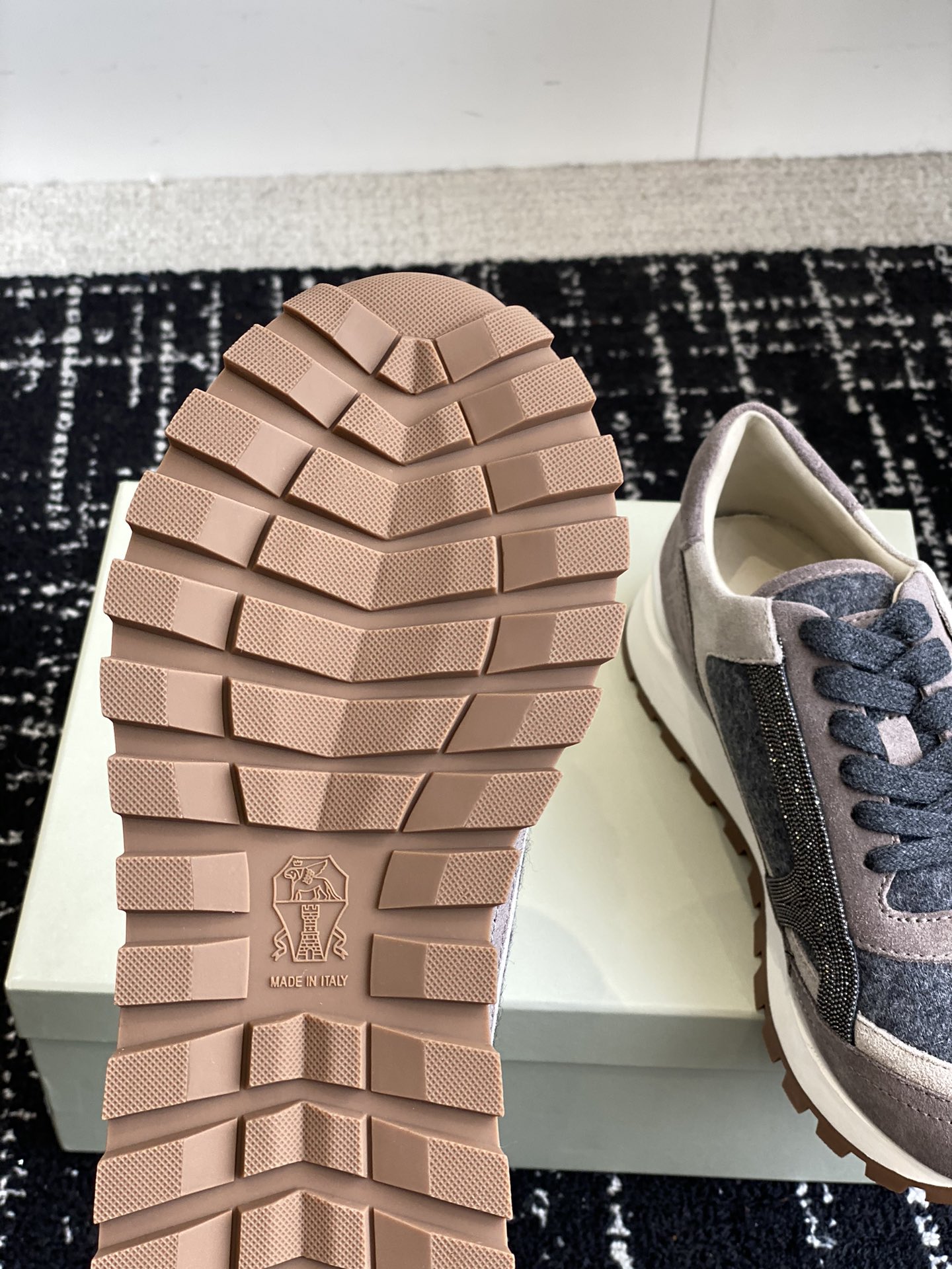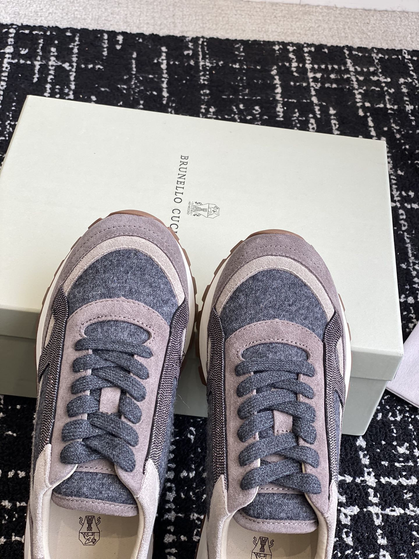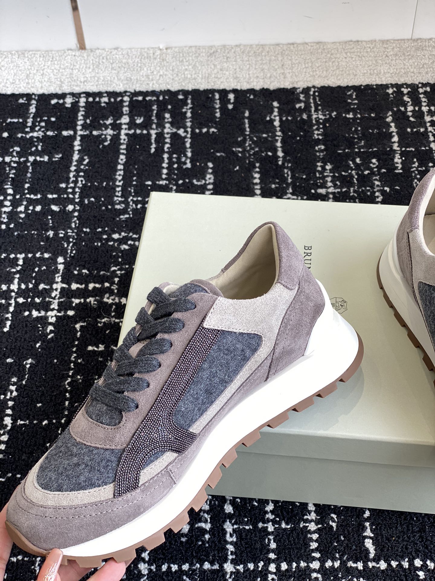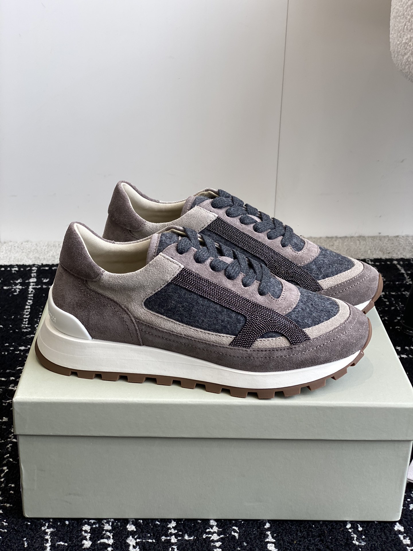 这款鞋子是AAAAA 1:1 质量 (非常棒). 使用了和原版一模一样的材料. 商标部分也保持了和Brunello Cucinelli一样. 图片拍摄是实物鞋子拍摄, 您所收到的实物保证和我们图片一模一样.