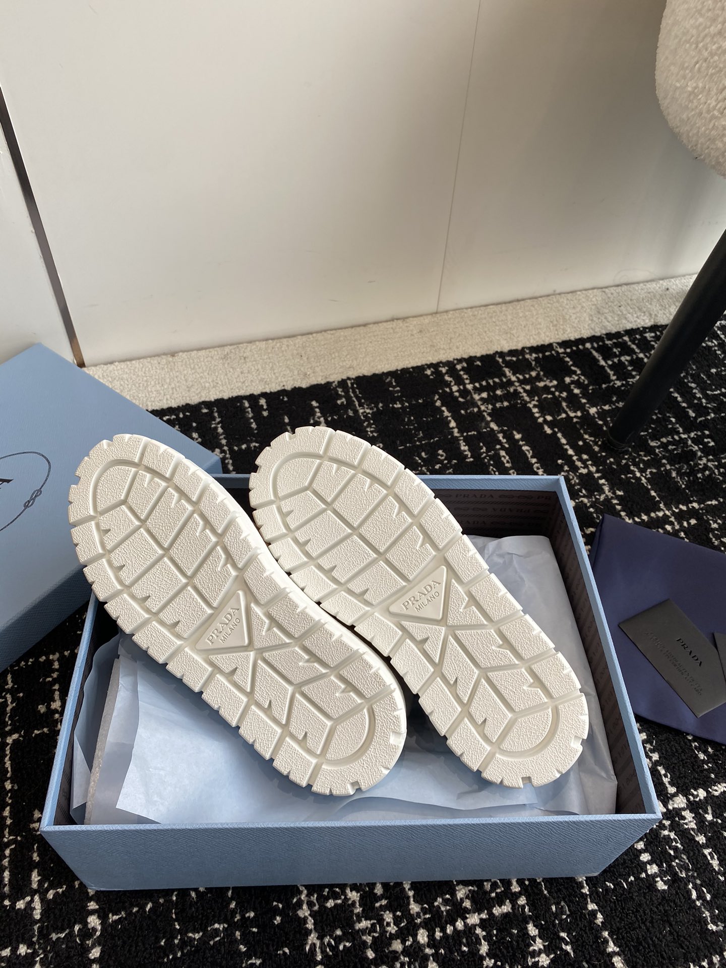 这款鞋子是AAAAA 1:1 质量 (非常棒). 使用了和原版一模一样的材料. 商标部分也保持了和普拉达/Prada一样. 图片拍摄是实物鞋子拍摄, 您所收到的实物保证和我们图片一模一样.