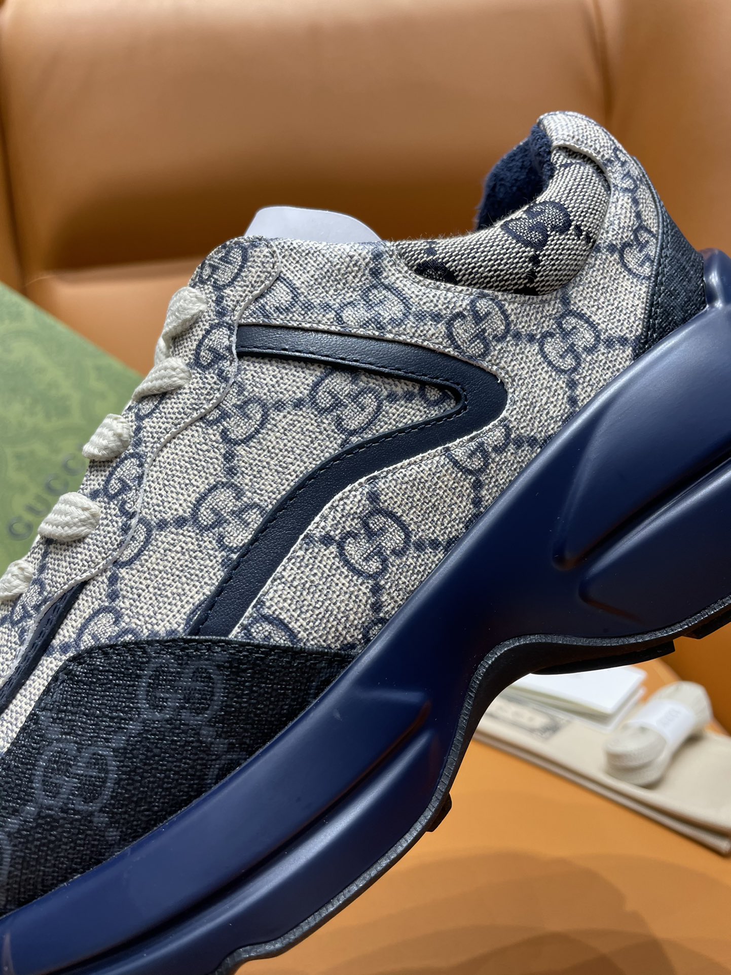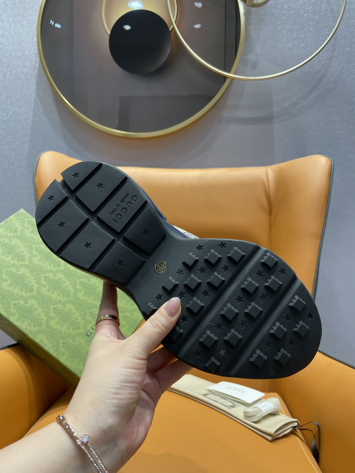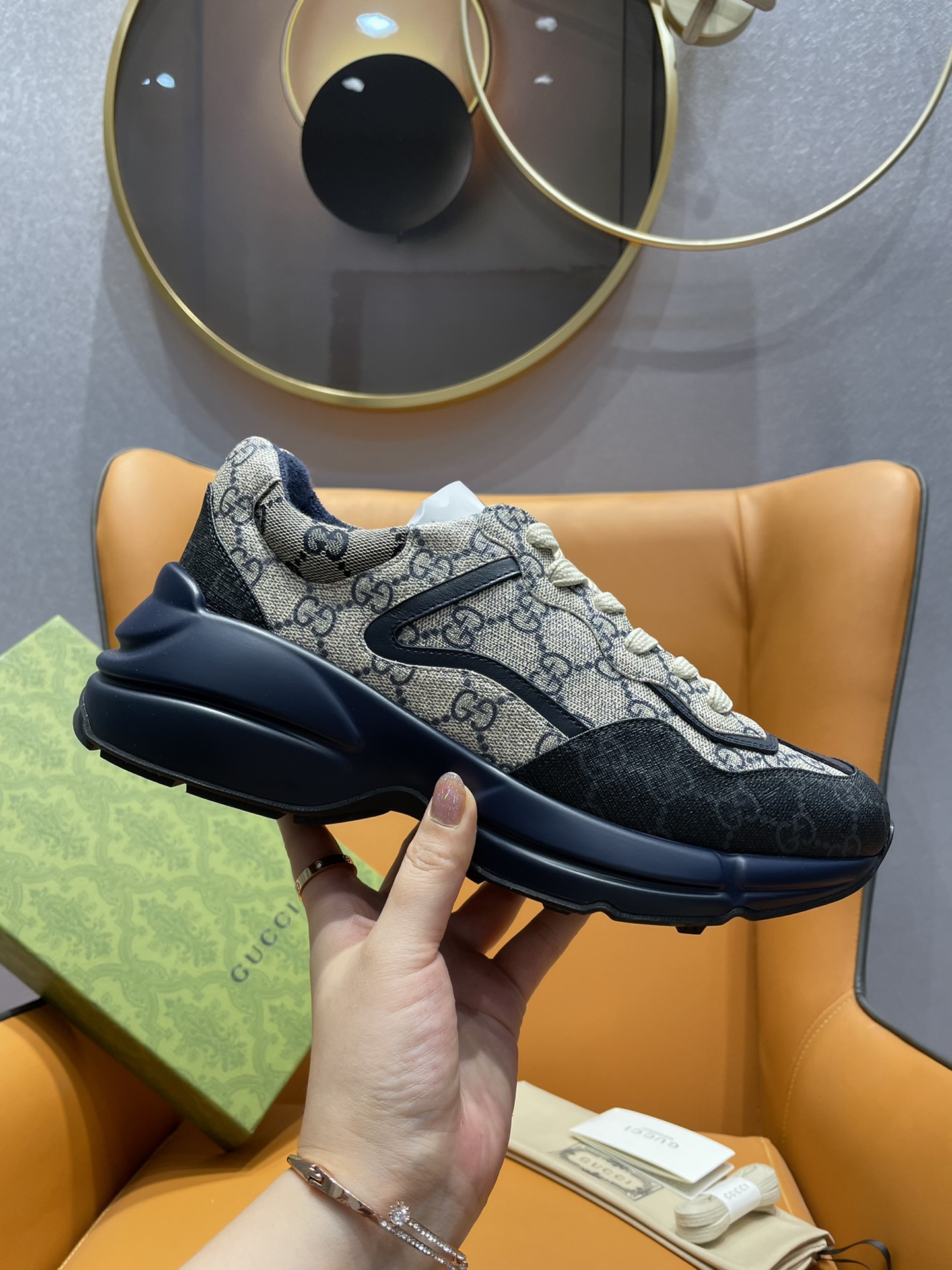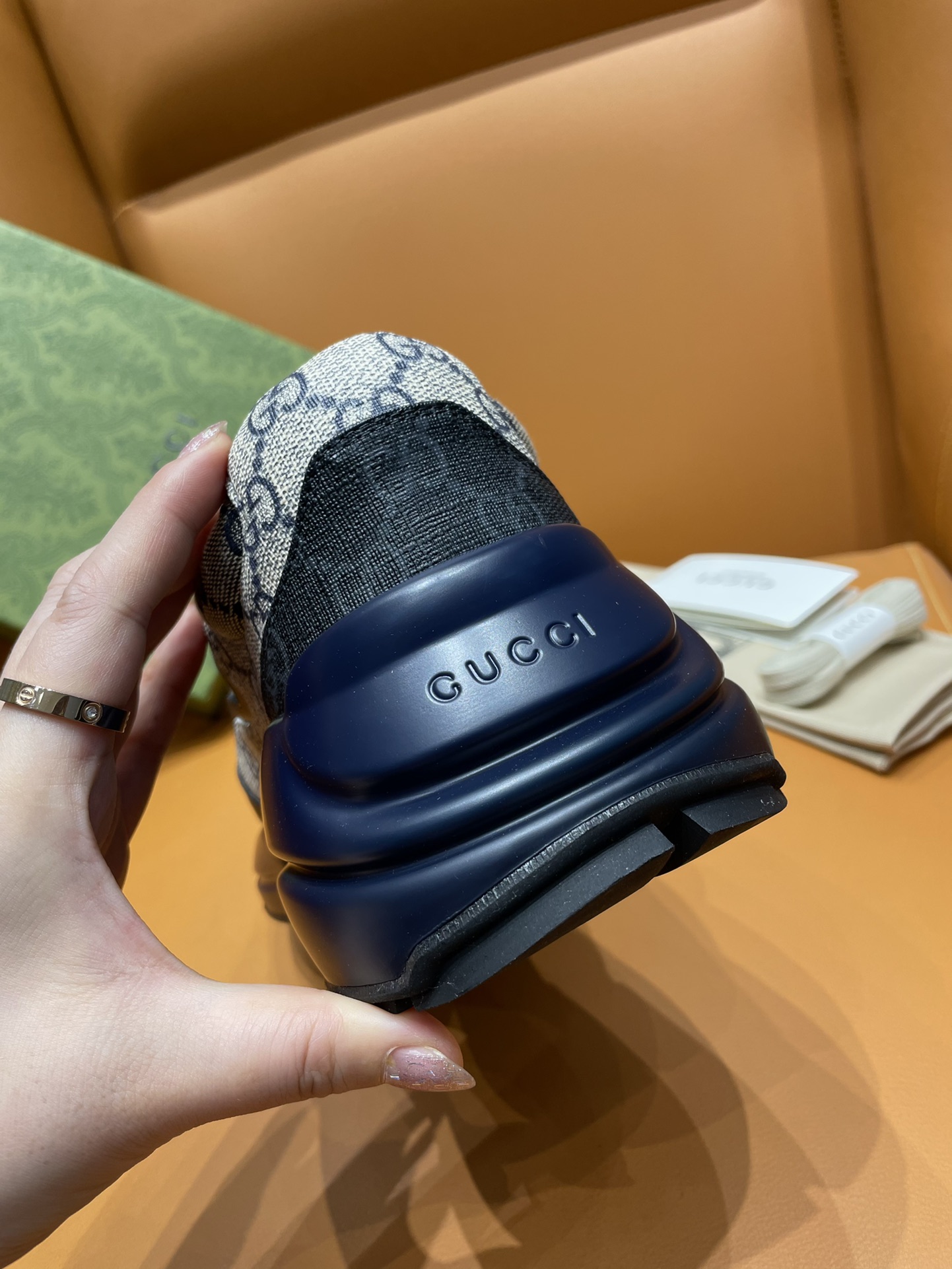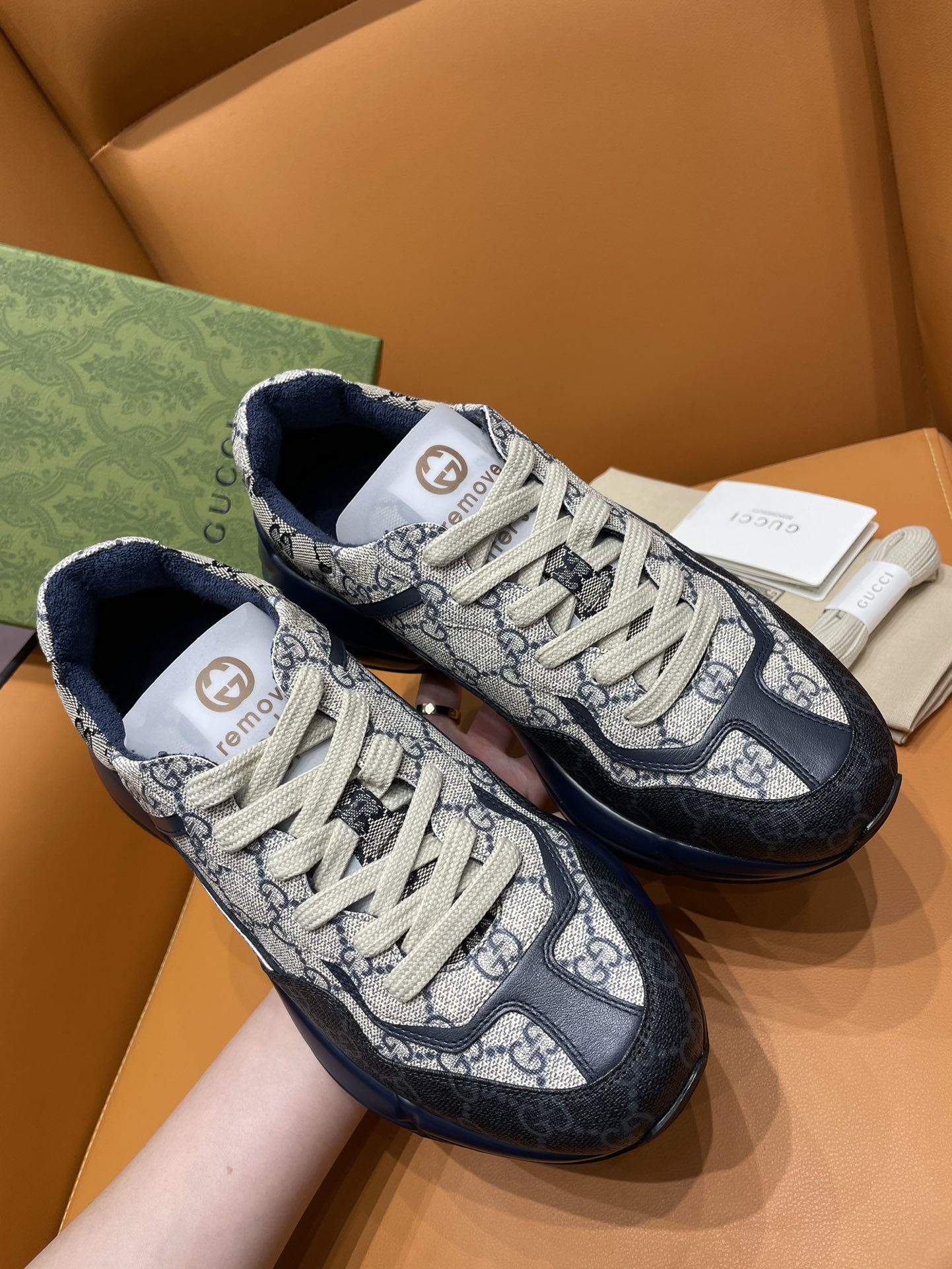 这款鞋子是AAAAA 1:1 质量 (非常棒). 使用了和原版一模一样的材料. 商标部分也保持了和古奇/Gucci一样. 图片拍摄是实物鞋子拍摄, 您所收到的实物保证和我们图片一模一样.