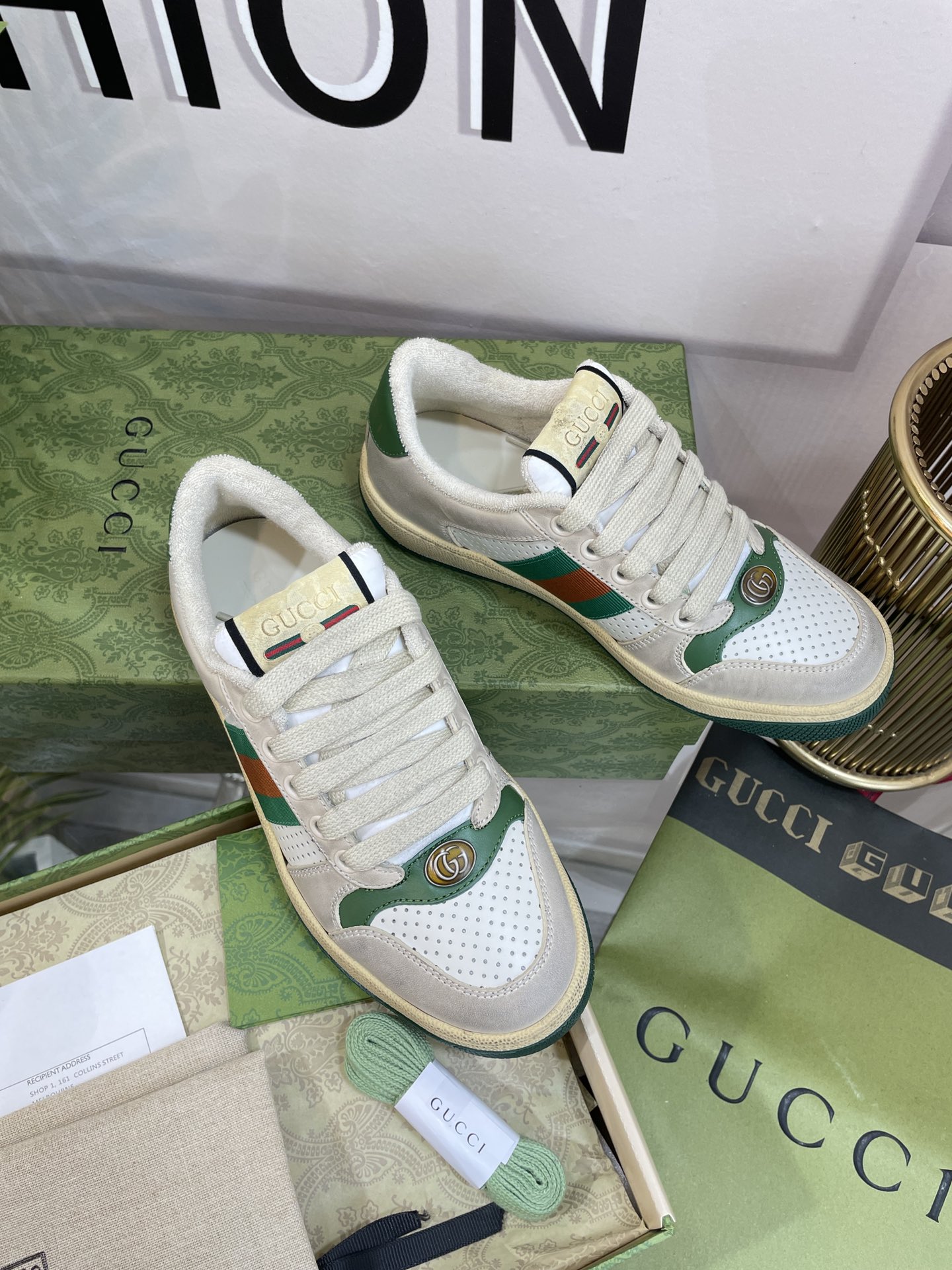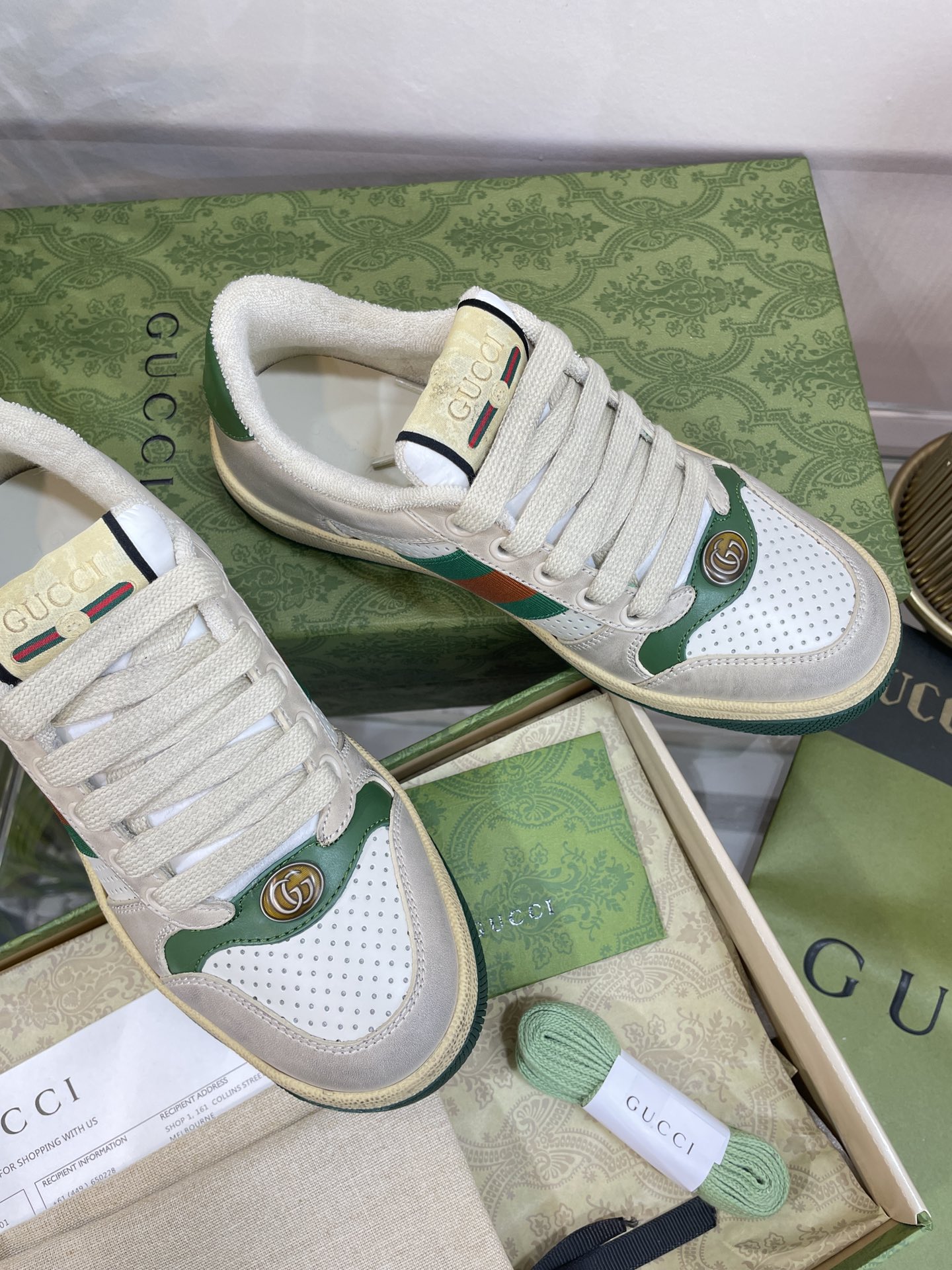 这款鞋子是AAAAA 1:1 质量 (非常棒). 使用了和原版一模一样的材料. 商标部分也保持了和古奇/Gucci一样. 图片拍摄是实物鞋子拍摄, 您所收到的实物保证和我们图片一模一样.