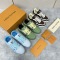 这款鞋子是AAAAA 1:1 质量 (非常棒). 使用了和原版一模一样的材料. 商标部分也保持了和路易威登/Louis Vuitton一样. 图片拍摄是实物鞋子拍摄, 您所收到的实物保证和我们图片一模一样.