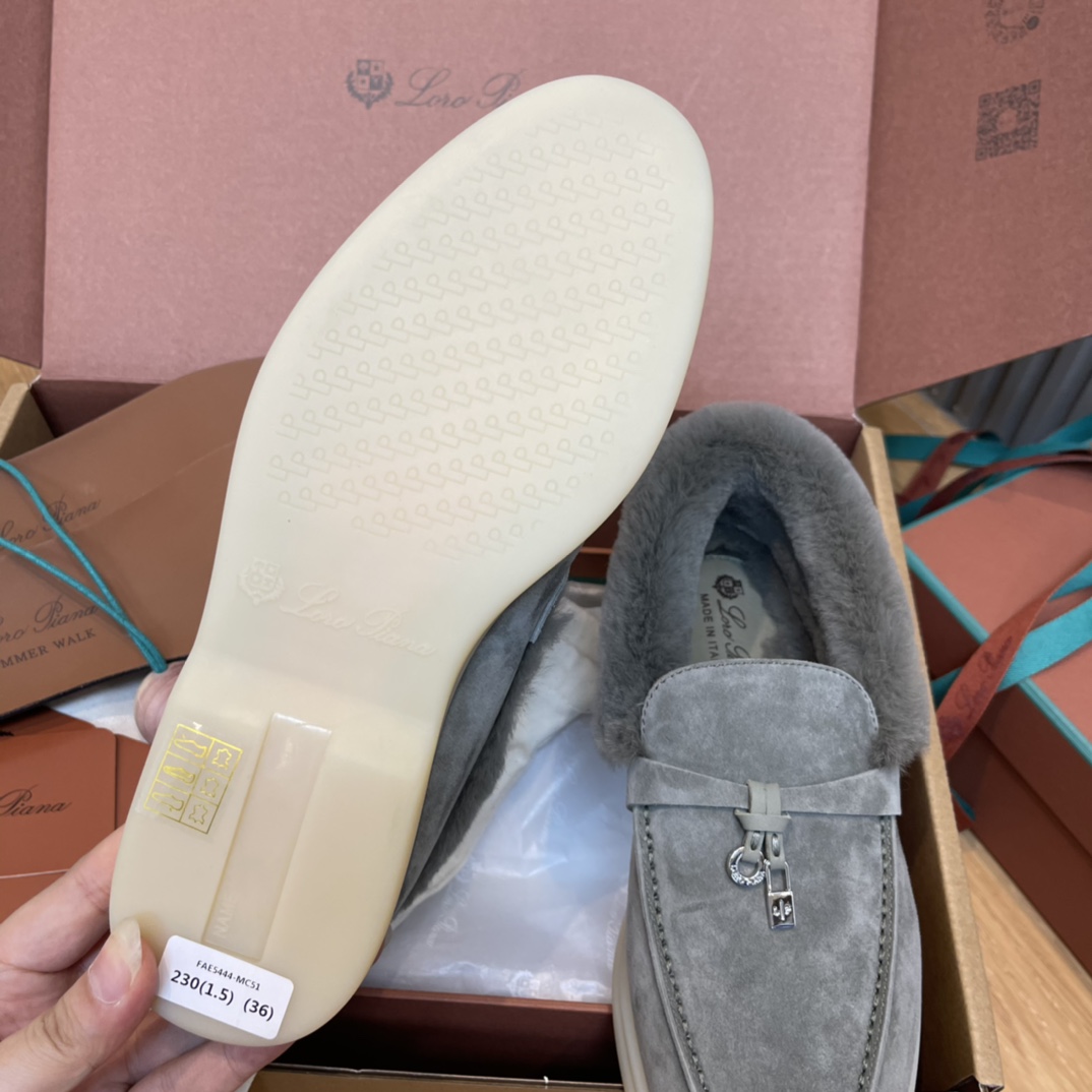 这款鞋子是AAAAA 1:1 质量 (非常棒). 使用了和原版一模一样的材料. 商标部分也保持了和洛罗皮亚纳/Loro Piana一样. 图片拍摄是实物鞋子拍摄, 您所收到的实物保证和我们图片一模一样.