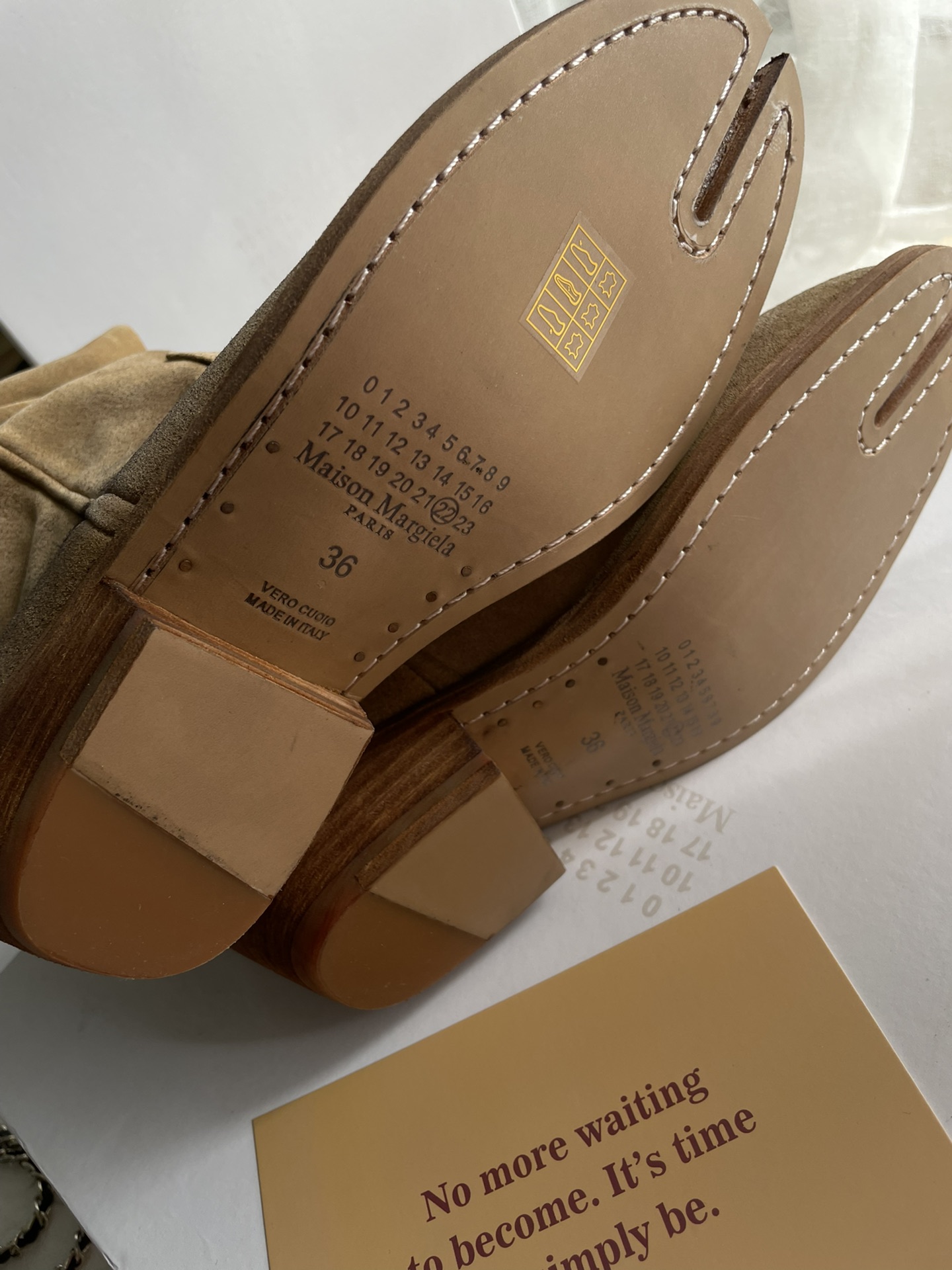 这款鞋子是AAAAA 1:1 质量 (非常棒). 使用了和原版一模一样的材料. 商标部分也保持了和Maison Margiela一样. 图片拍摄是实物鞋子拍摄, 您所收到的实物保证和我们图片一模一样.