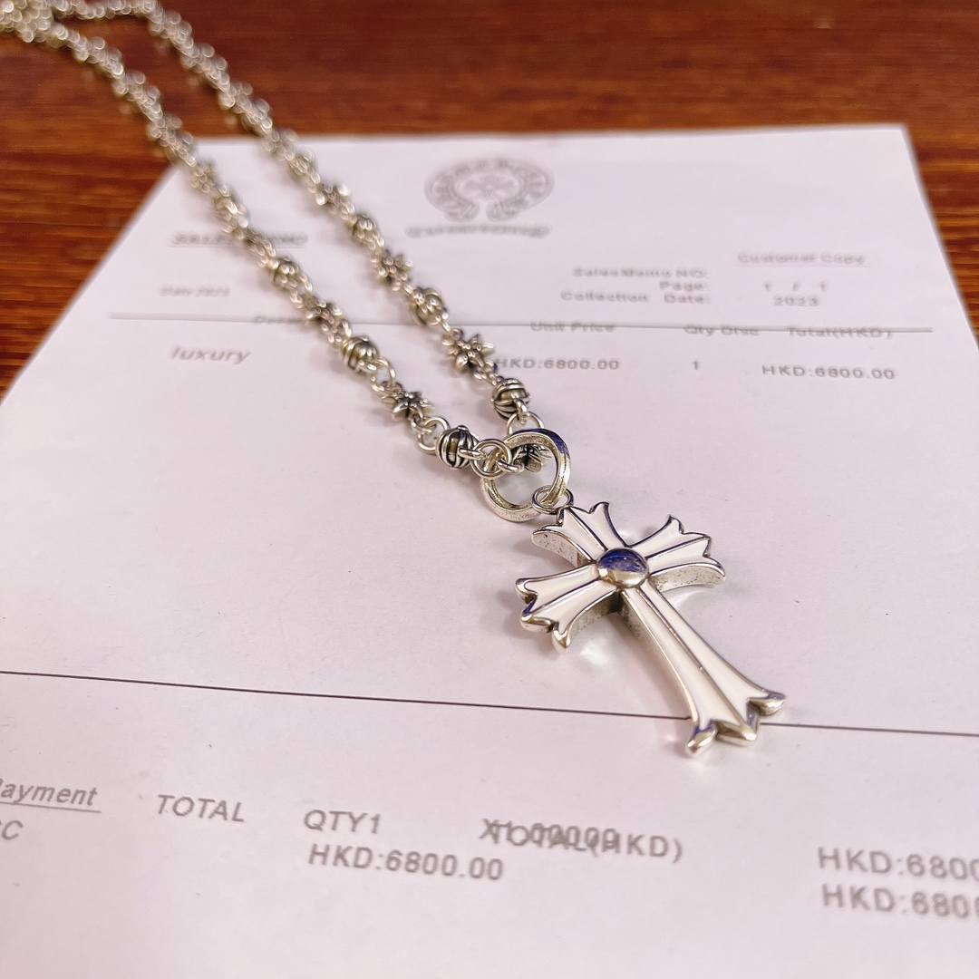 这款首饰是AAAAA 1:1 质量 (非常棒). 使用了和原版一模一样的材料. 商标部分也保持了和克罗心/Chrome Hearts一样. 图片拍摄是实物首饰拍摄, 您所收到的实物保证和我们图片一模一样.