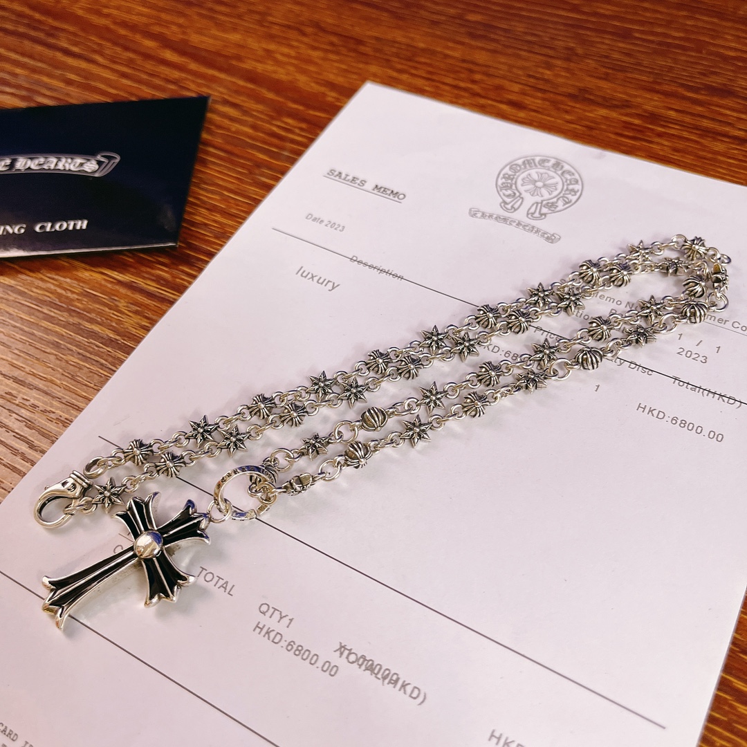这款首饰是AAAAA 1:1 质量 (非常棒). 使用了和原版一模一样的材料. 商标部分也保持了和克罗心/Chrome Hearts一样. 图片拍摄是实物首饰拍摄, 您所收到的实物保证和我们图片一模一样.