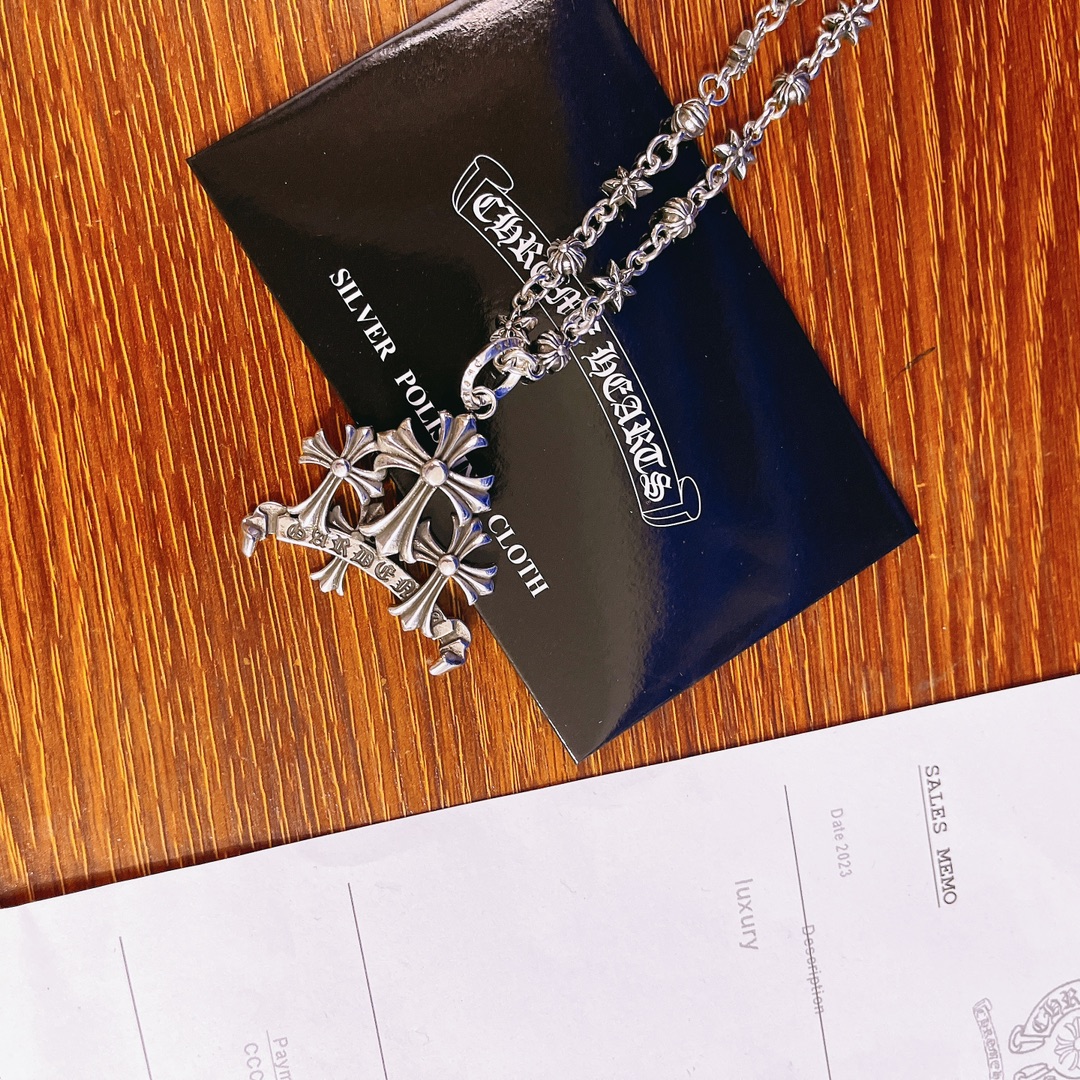 这款首饰是AAAAA 1:1 质量 (非常棒). 使用了和原版一模一样的材料. 商标部分也保持了和克罗心/Chrome Hearts一样. 图片拍摄是实物首饰拍摄, 您所收到的实物保证和我们图片一模一样.