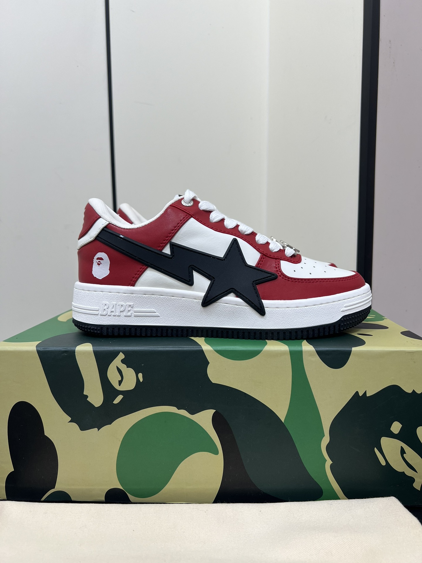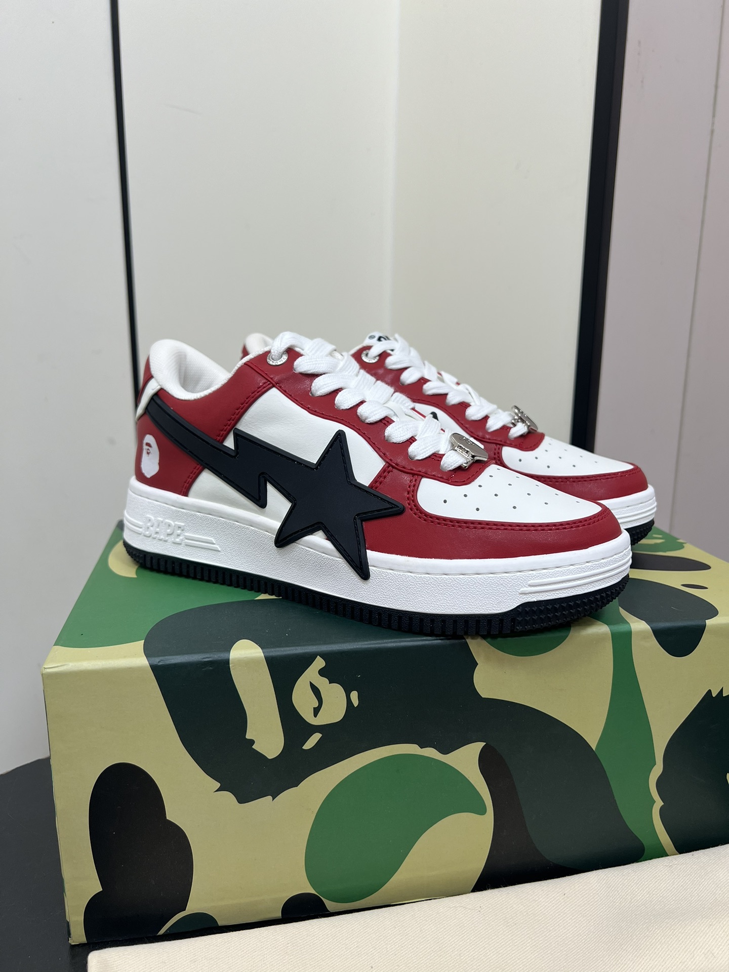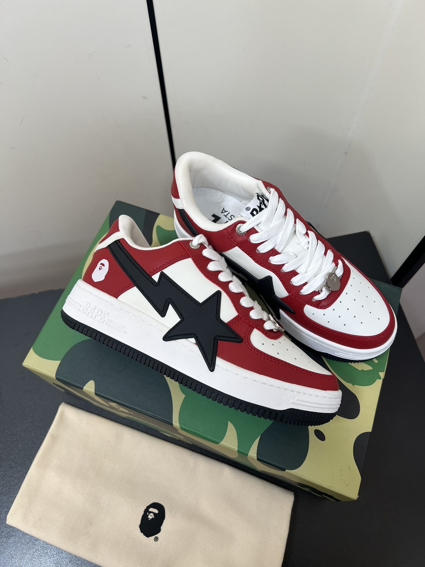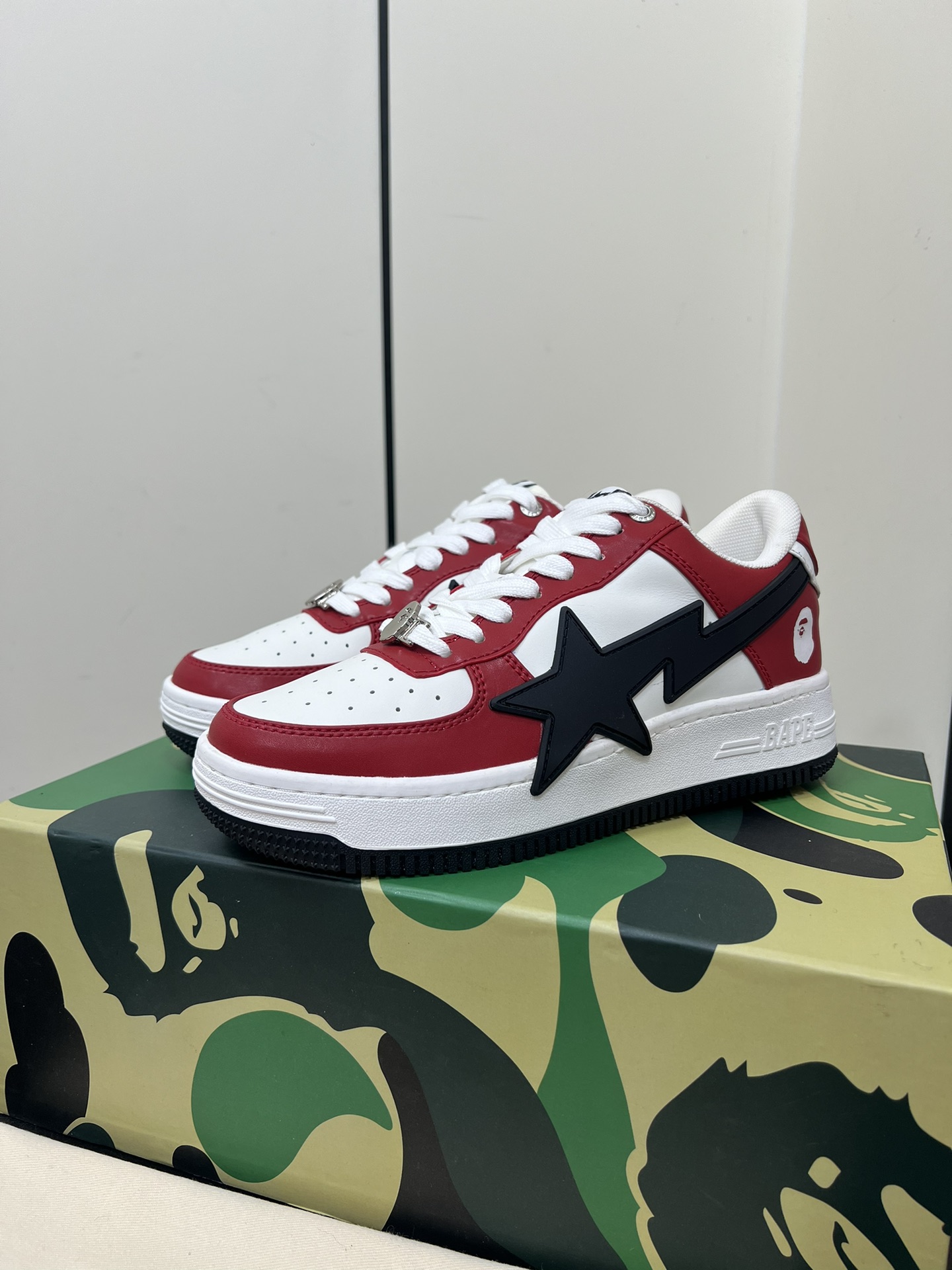 这款鞋子是AAAAA 1:1 质量 (非常棒). 使用了和原版一模一样的材料. 商标部分也保持了和Bape一样. 图片拍摄是实物鞋子拍摄, 您所收到的实物保证和我们图片一模一样.