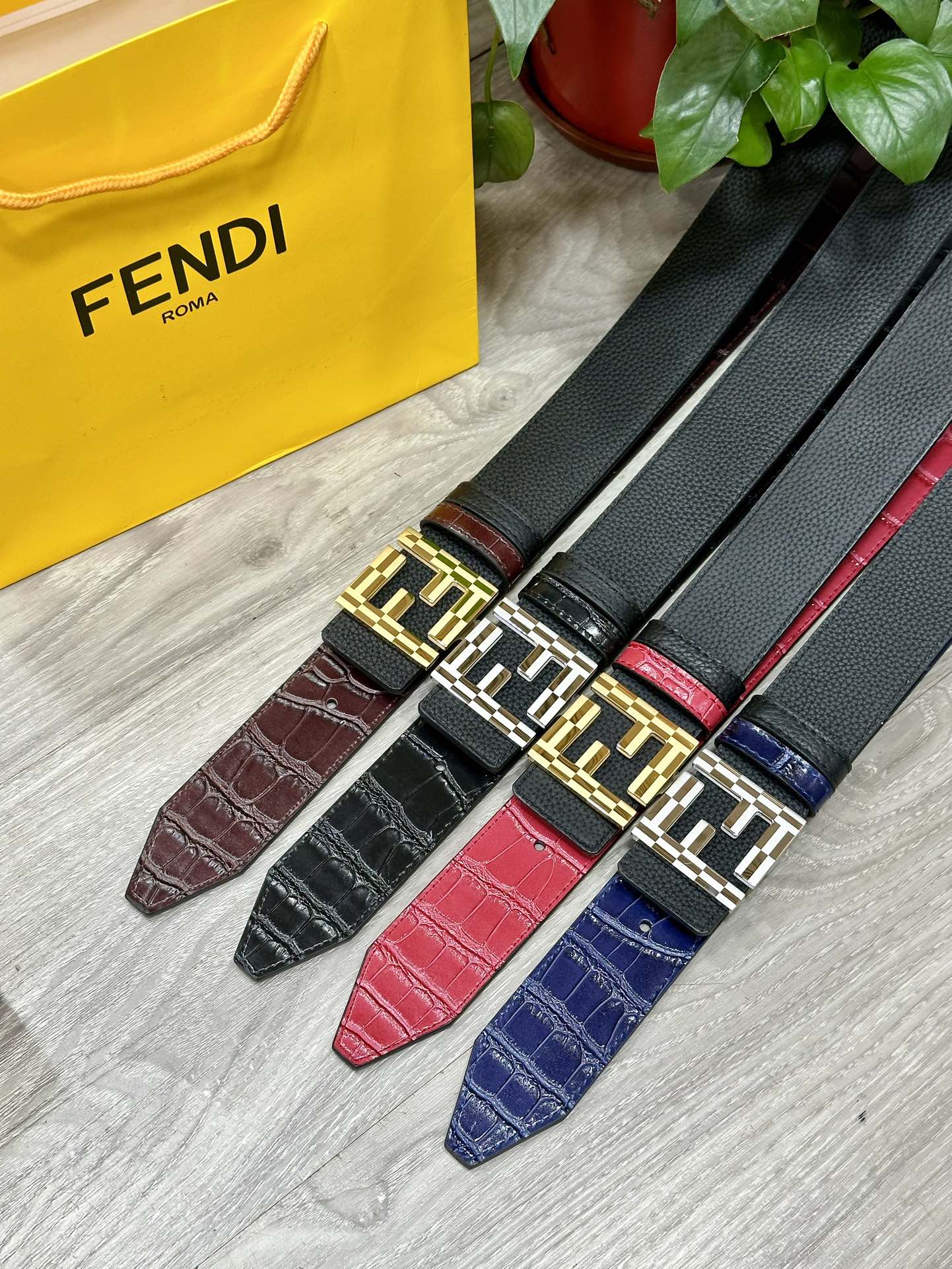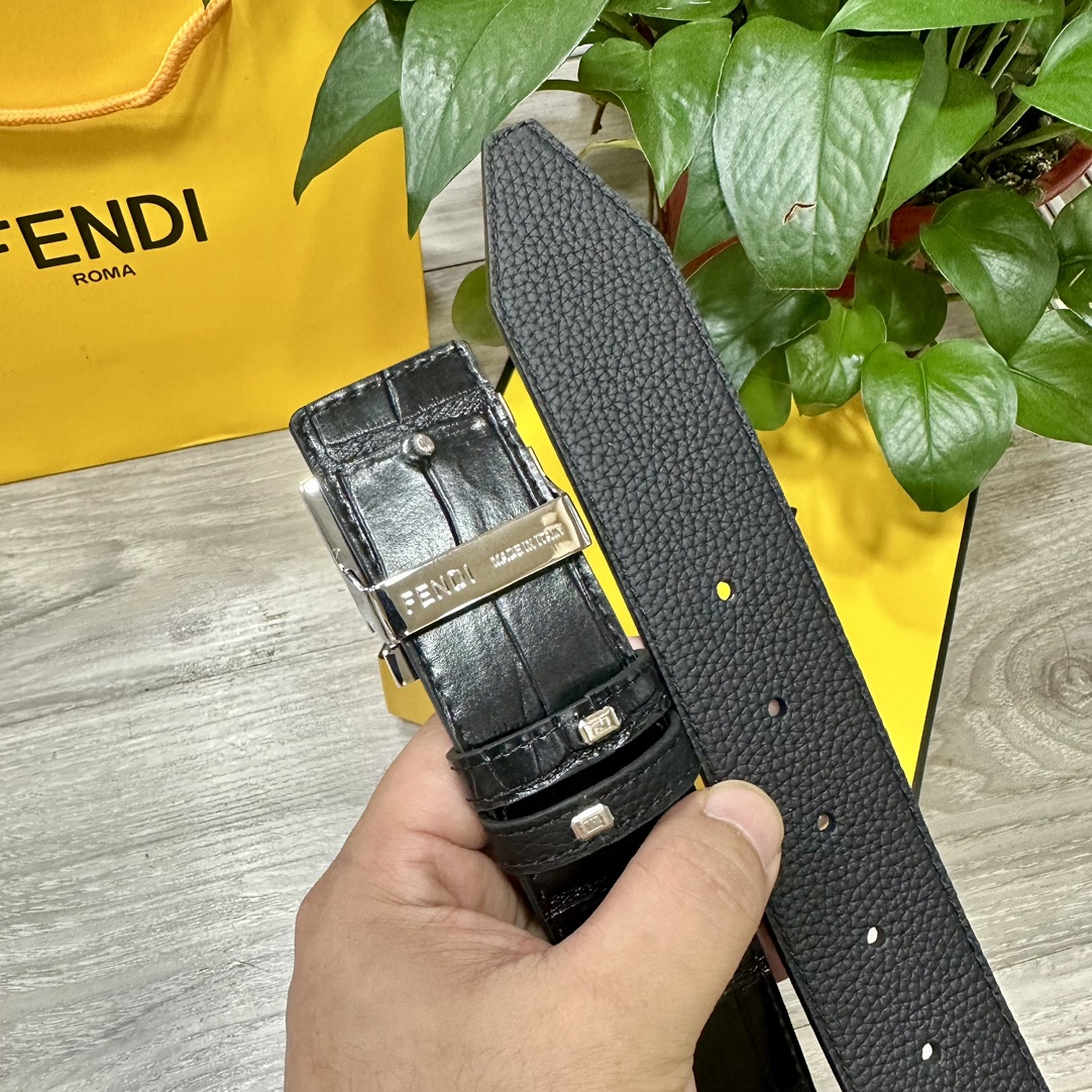 这款皮带是AAAAA 1:1 质量 (非常棒). 使用了和原版一模一样的材料. 商标部分也保持了和芬迪/Fendi一样. 图片拍摄是实物皮带拍摄, 您所收到的实物保证和我们图片一模一样.