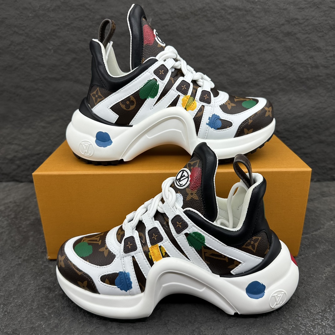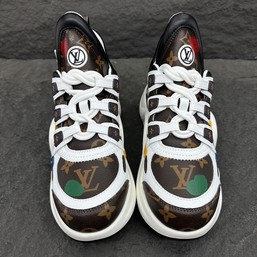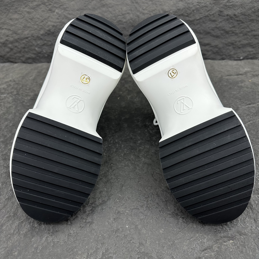 这款鞋子是AAAAA 1:1 质量 (非常棒). 使用了和原版一模一样的材料. 商标部分也保持了和路易威登/Louis Vuitton一样. 图片拍摄是实物鞋子拍摄, 您所收到的实物保证和我们图片一模一样.