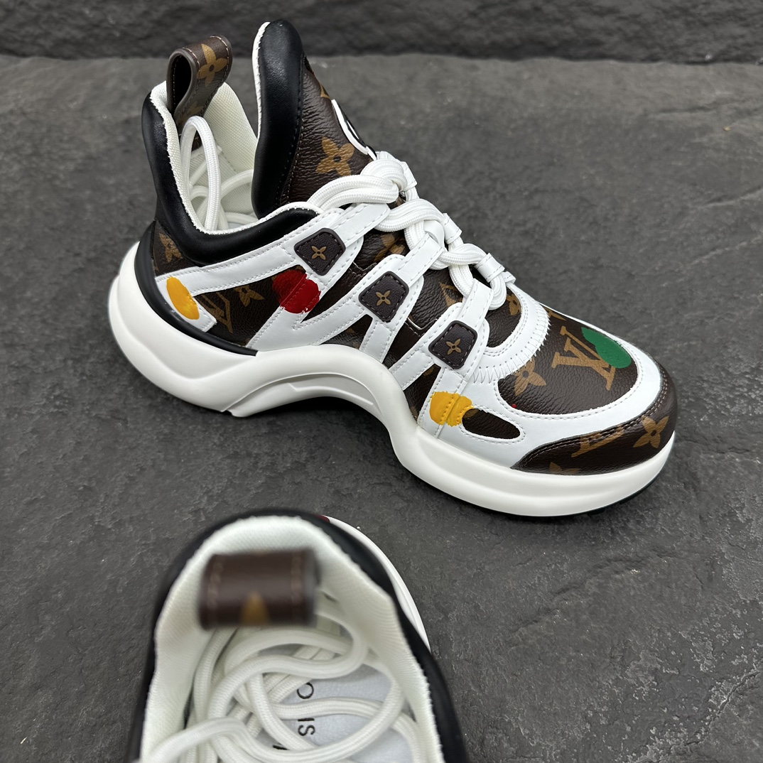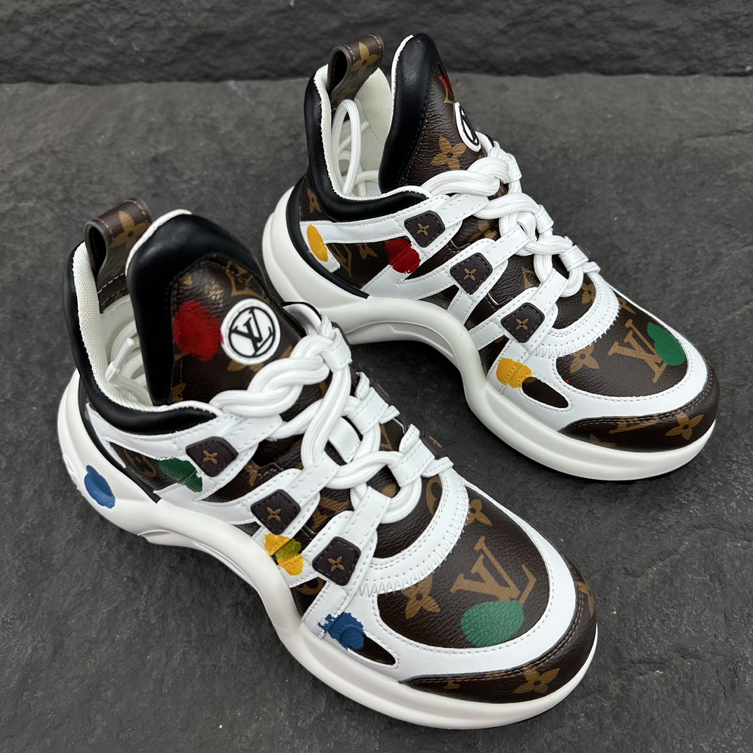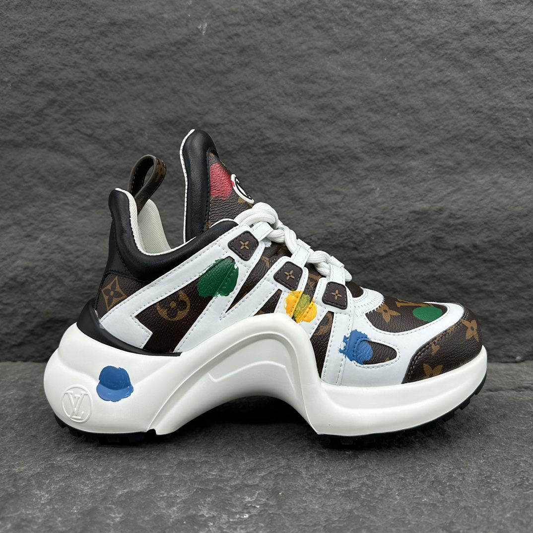这款鞋子是AAAAA 1:1 质量 (非常棒). 使用了和原版一模一样的材料. 商标部分也保持了和路易威登/Louis Vuitton一样. 图片拍摄是实物鞋子拍摄, 您所收到的实物保证和我们图片一模一样.