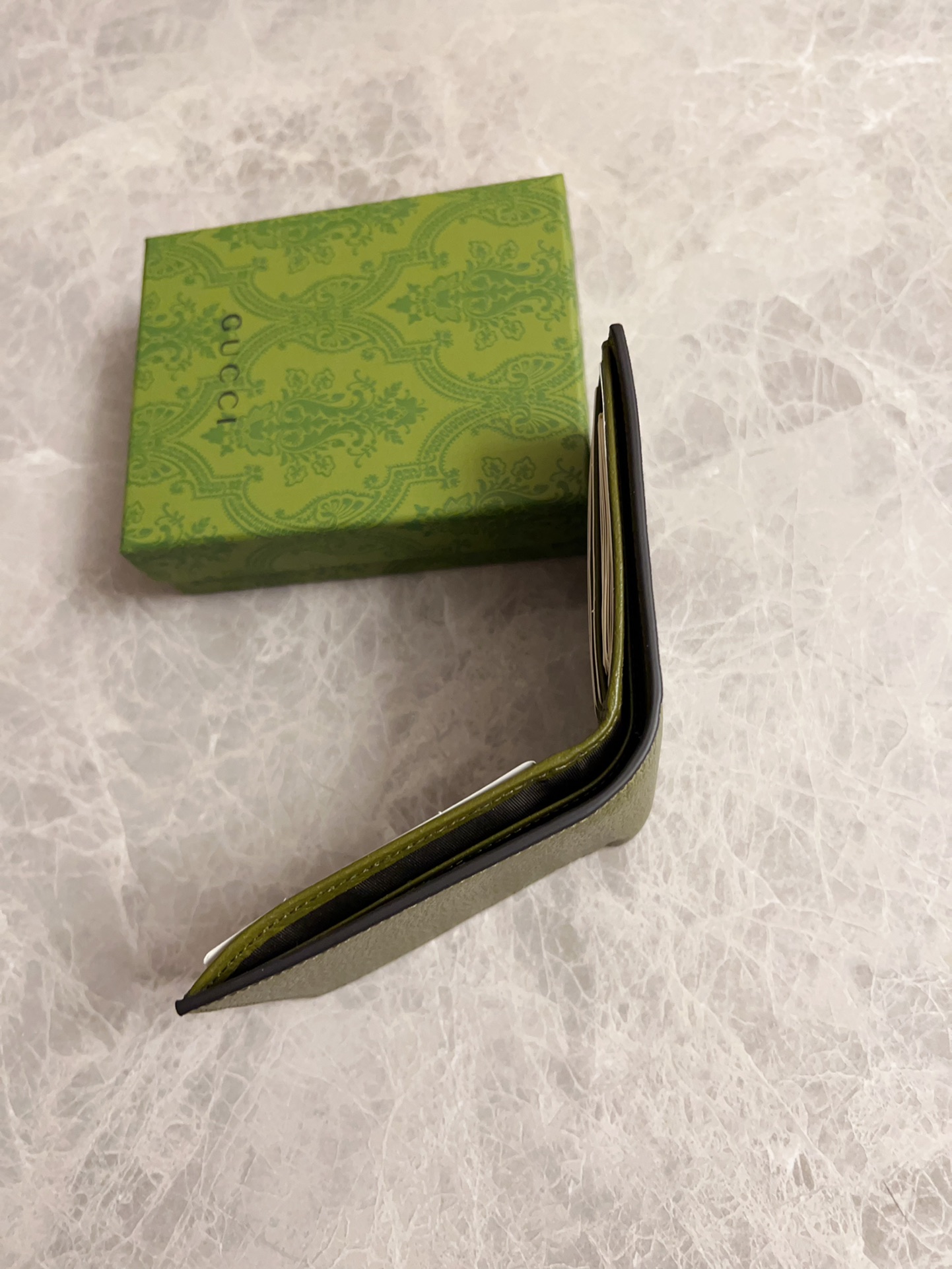 这款钱包是AAAAA 1:1 质量 (非常棒). 使用了和原版一模一样的材料. 商标部分也保持了和古奇/Gucci一样. 图片拍摄是实物钱包拍摄, 您所收到的实物保证和我们图片一模一样.