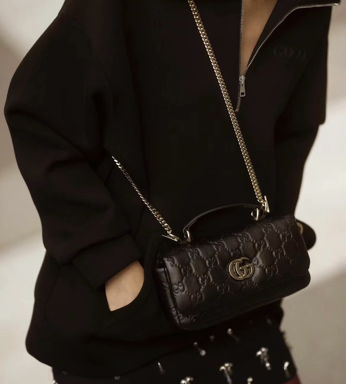 这款包包是AAAAA 1:1 质量 (非常棒). 使用了和原版一模一样的材料. 商标部分也保持了和古奇/Gucci一样. 图片拍摄是实物包包拍摄, 您所收到的实物保证和我们图片一模一样.