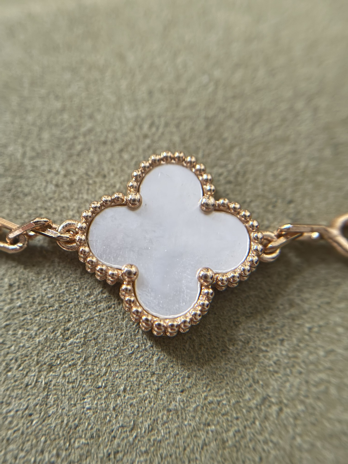 这款首饰是AAAAA 1:1 质量 (非常棒). 使用了和原版一模一样的材料. 商标部分也保持了和梵克雅宝/Van Cleef & Arpels一样. 图片拍摄是实物首饰拍摄, 您所收到的实物保证和我们图片一模一样.