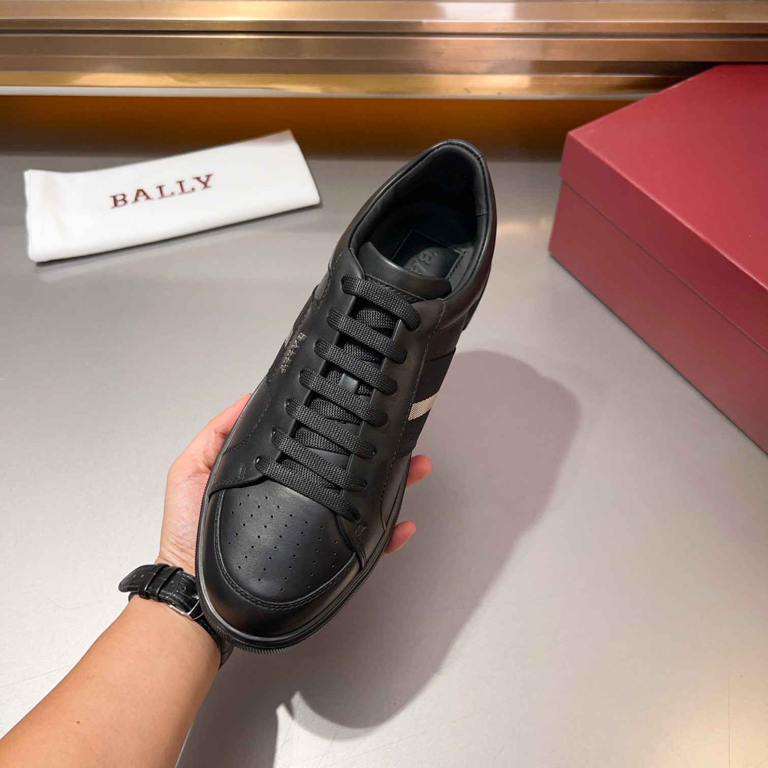 这款鞋子是AAAAA 1:1 质量 (非常棒). 使用了和原版一模一样的材料. 商标部分也保持了和BALLY巴利/BALLY一样. 图片拍摄是实物鞋子拍摄, 您所收到的实物保证和我们图片一模一样.