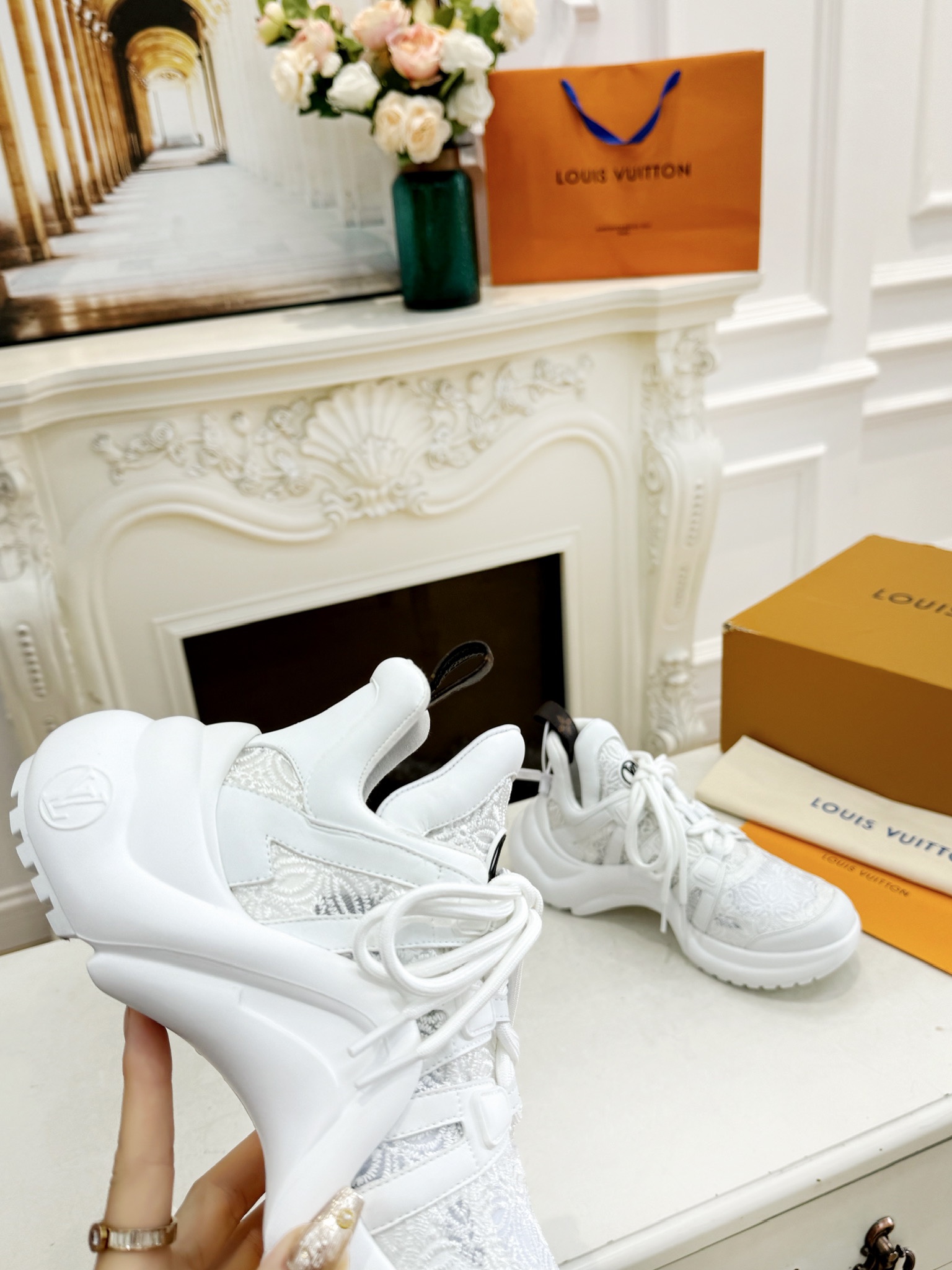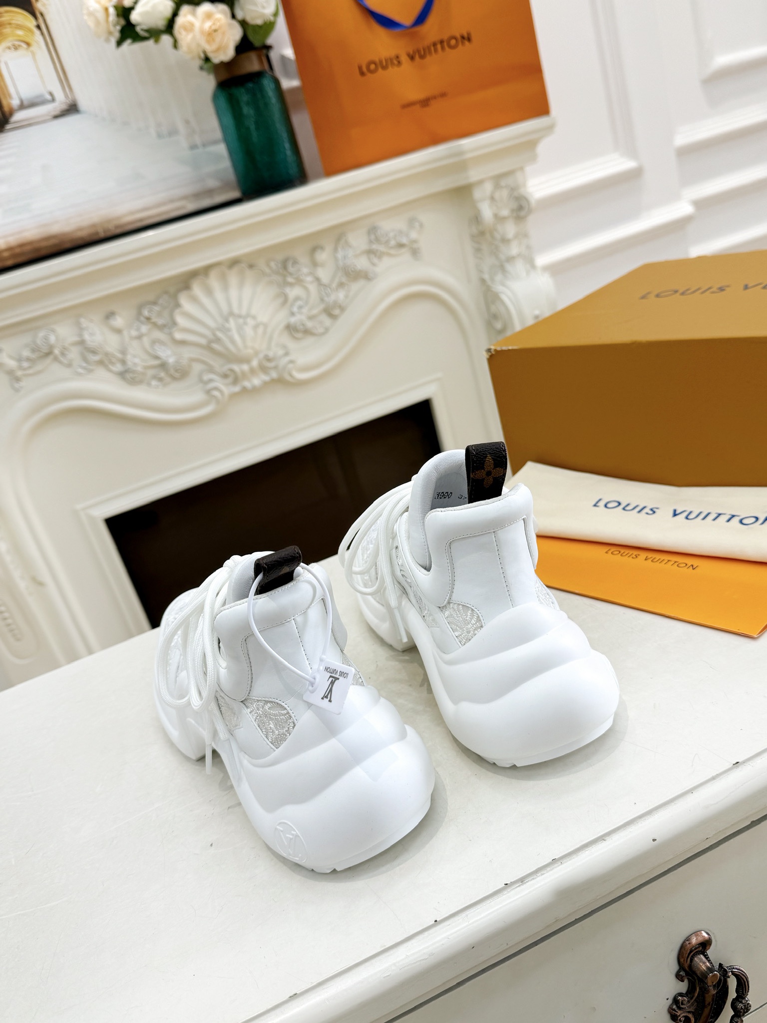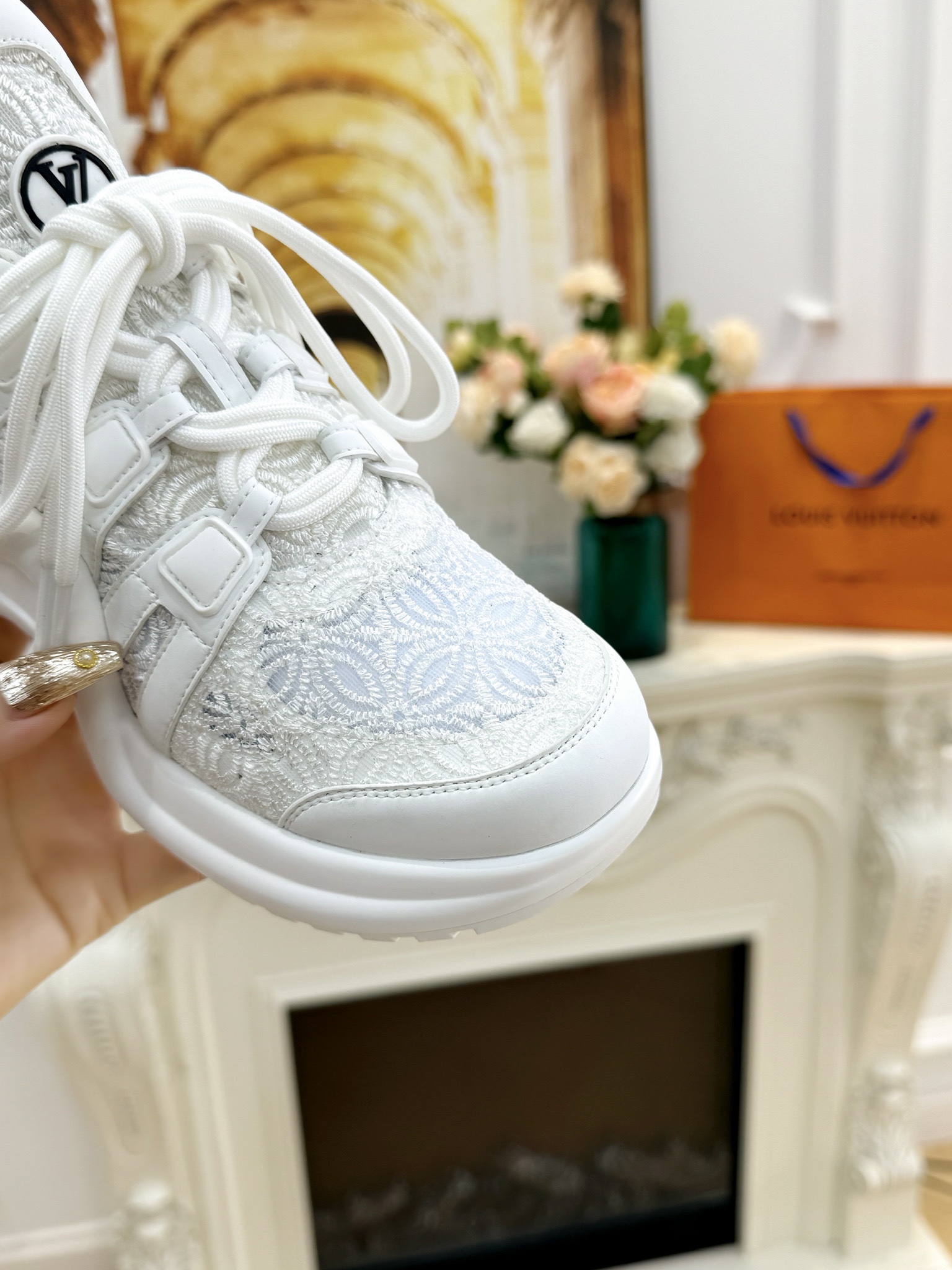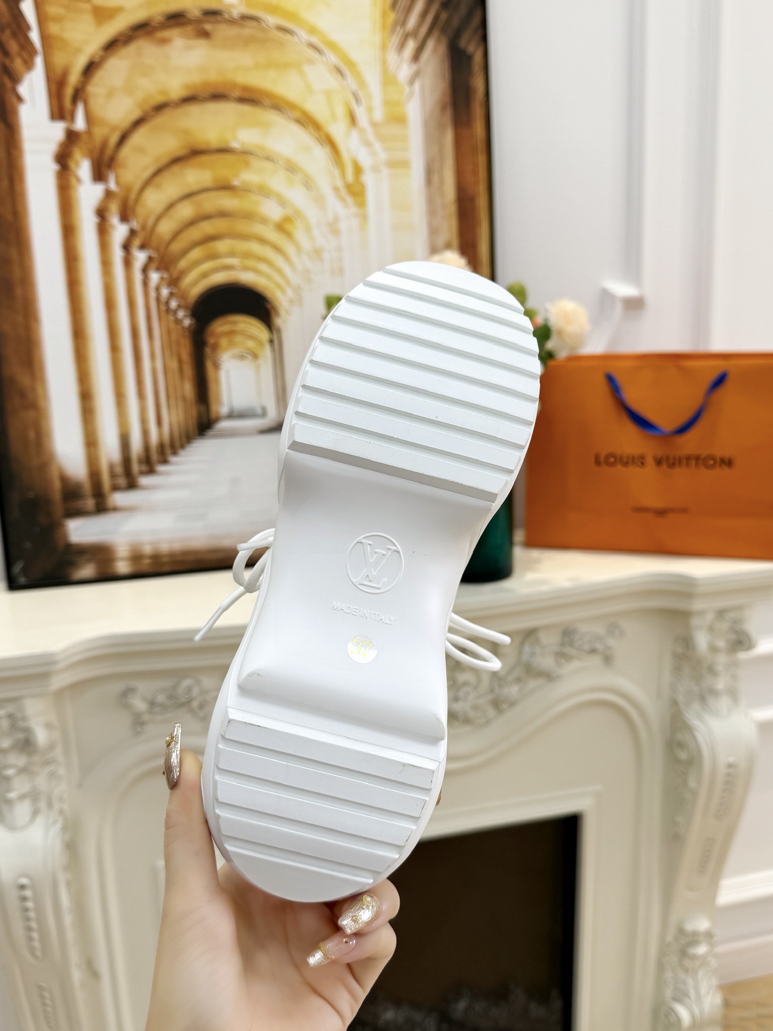 这款鞋子是AAAAA 1:1 质量 (非常棒). 使用了和原版一模一样的材料. 商标部分也保持了和路易威登/Louis Vuitton一样. 图片拍摄是实物鞋子拍摄, 您所收到的实物保证和我们图片一模一样.
