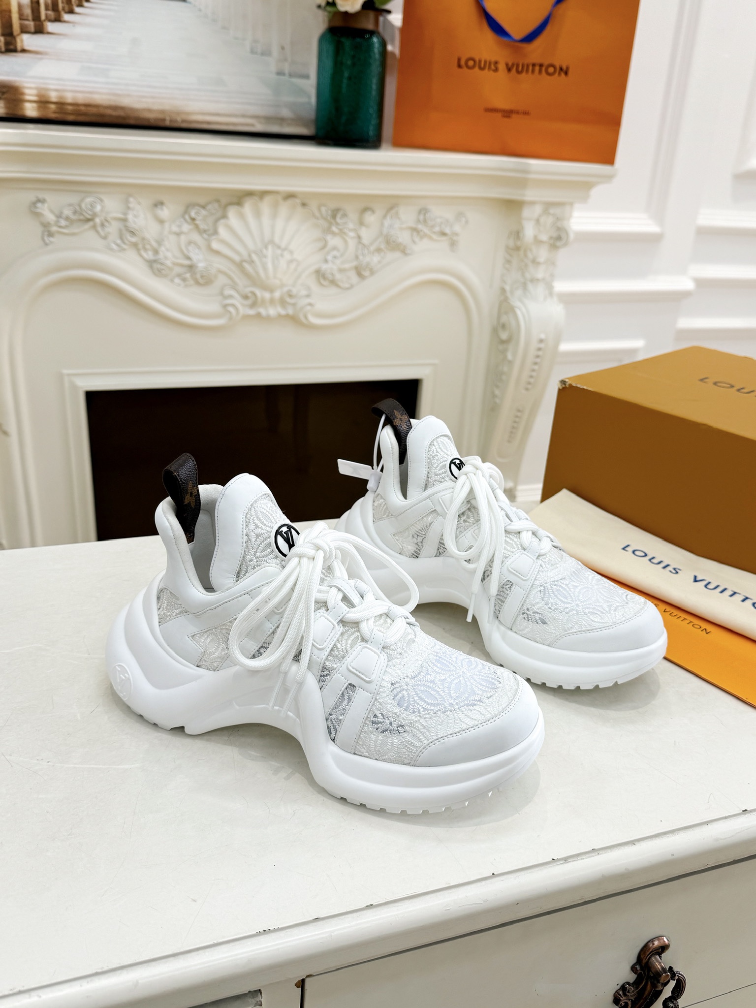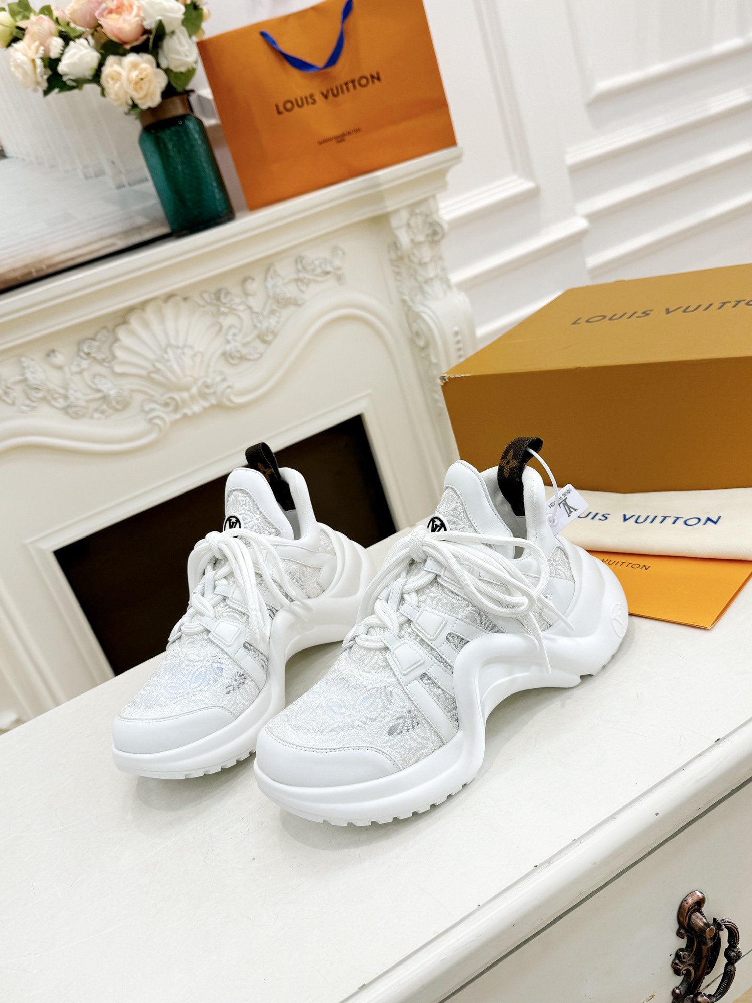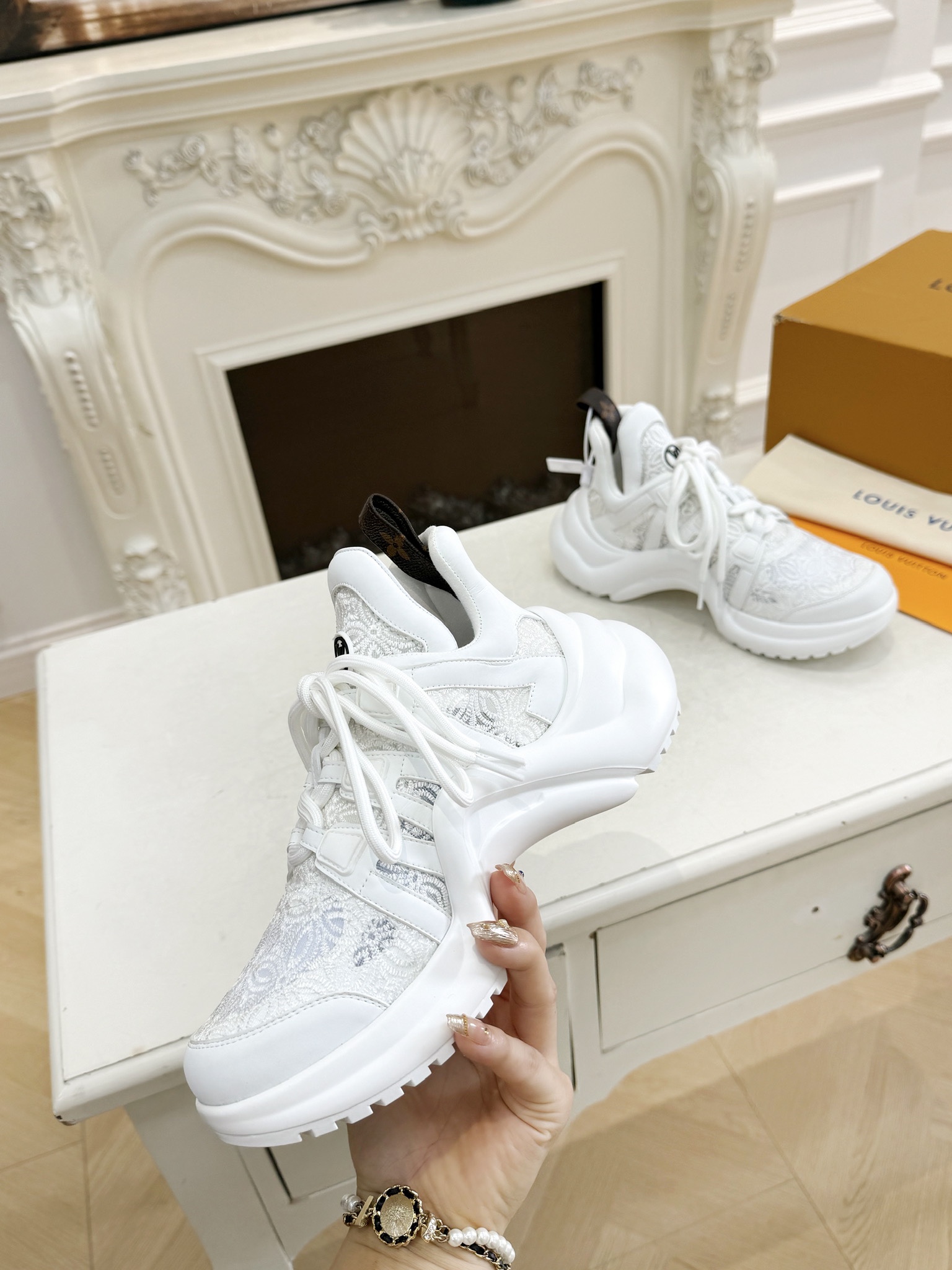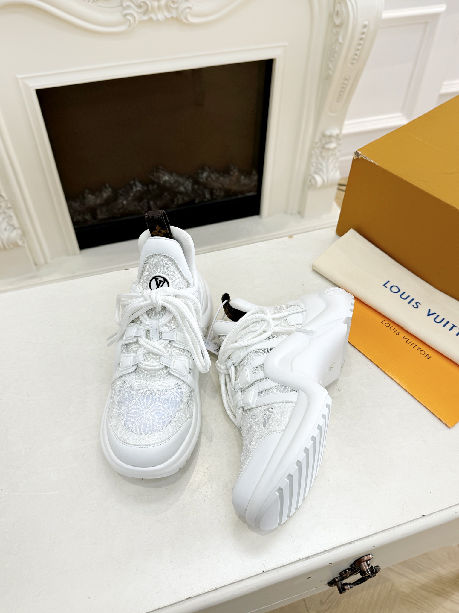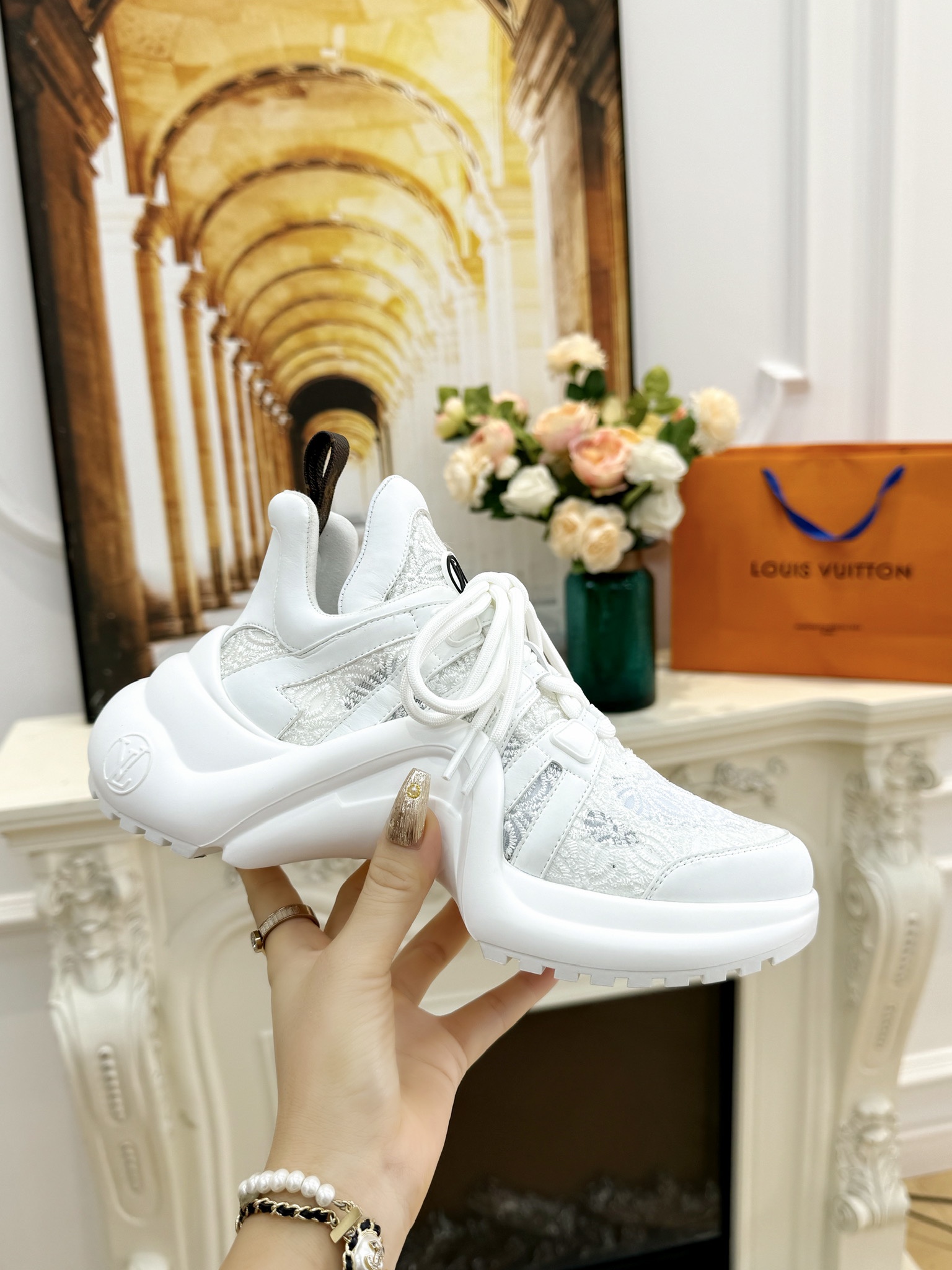 这款鞋子是AAAAA 1:1 质量 (非常棒). 使用了和原版一模一样的材料. 商标部分也保持了和路易威登/Louis Vuitton一样. 图片拍摄是实物鞋子拍摄, 您所收到的实物保证和我们图片一模一样.