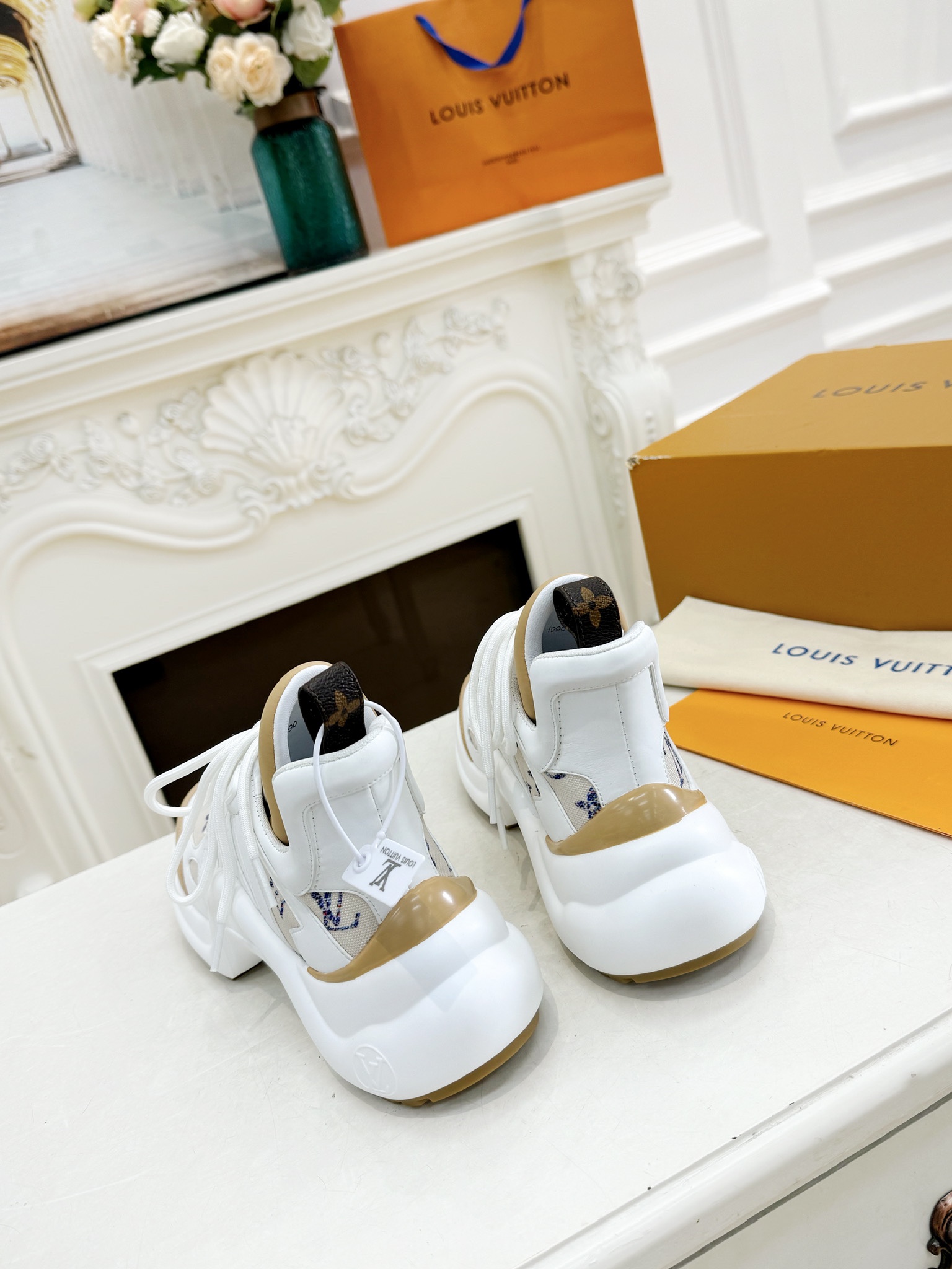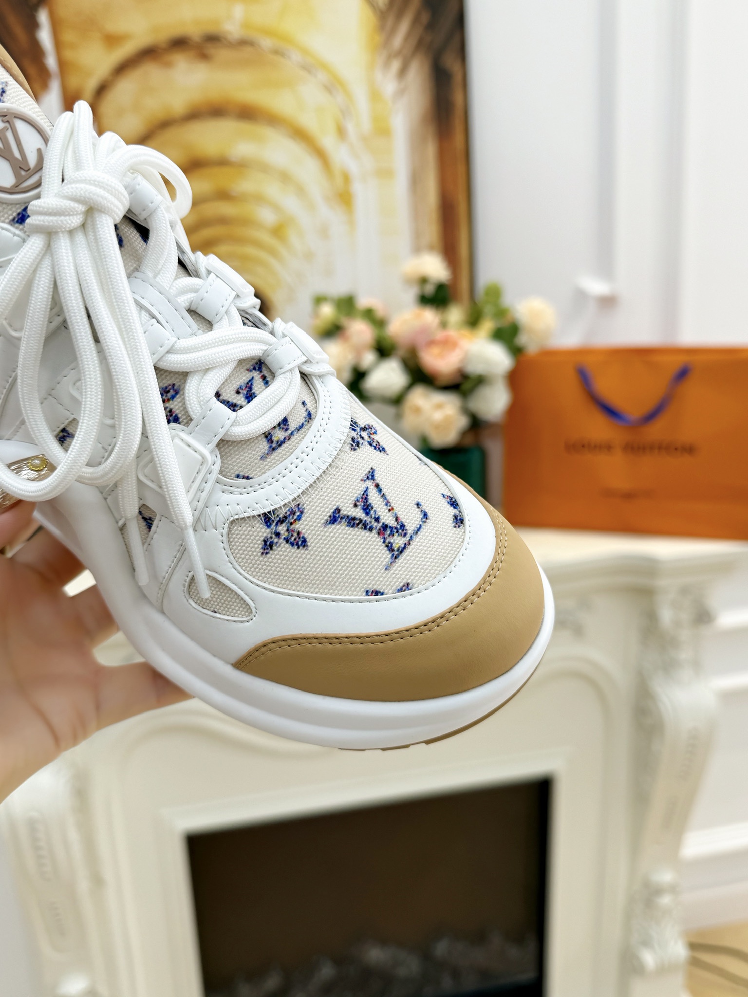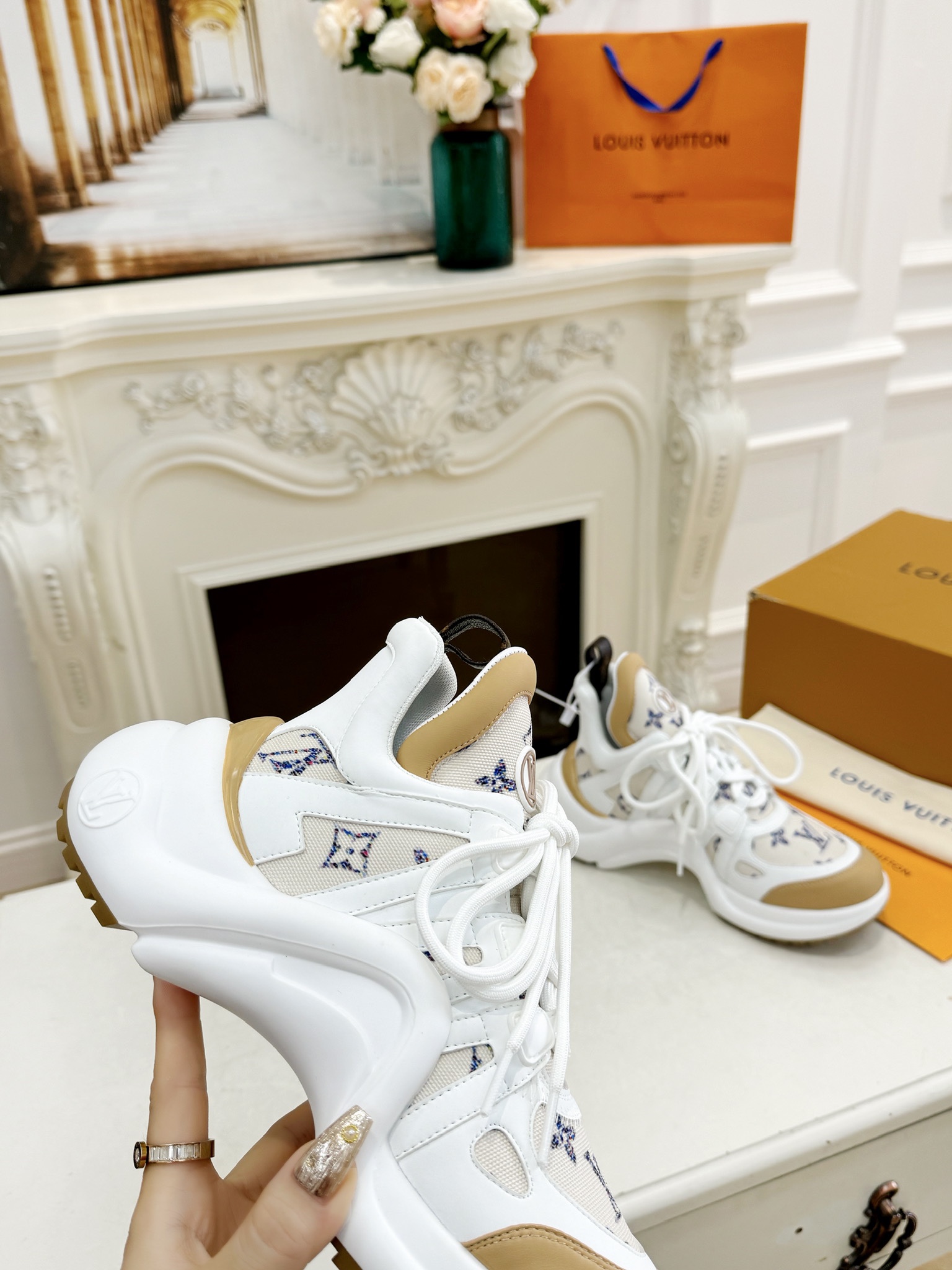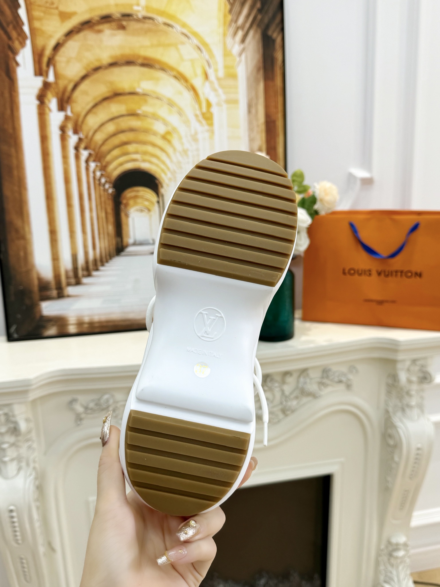 这款鞋子是AAAAA 1:1 质量 (非常棒). 使用了和原版一模一样的材料. 商标部分也保持了和路易威登/Louis Vuitton一样. 图片拍摄是实物鞋子拍摄, 您所收到的实物保证和我们图片一模一样.