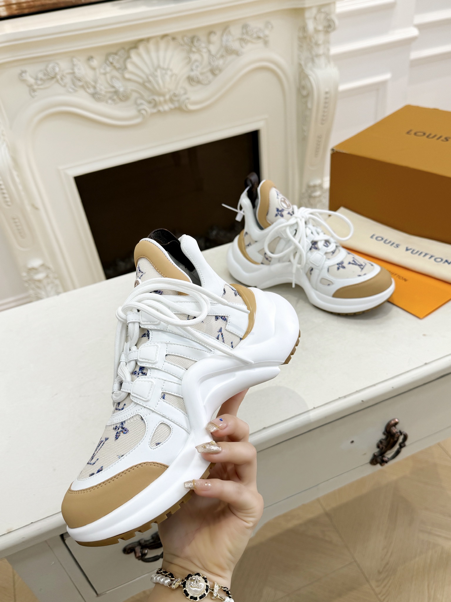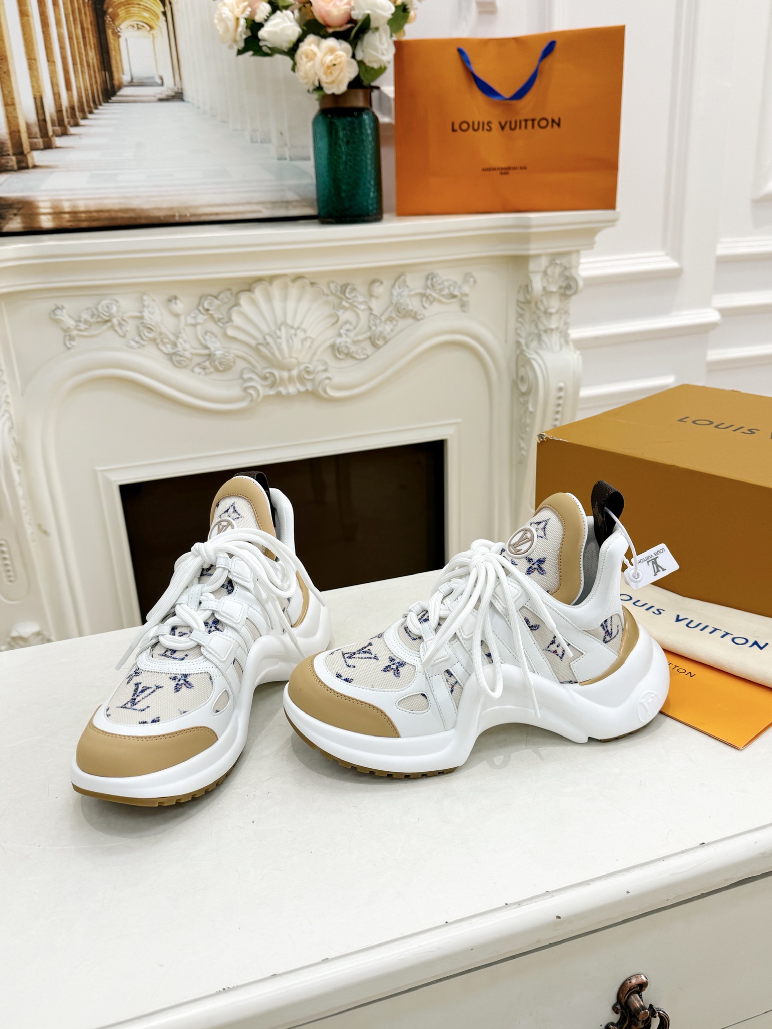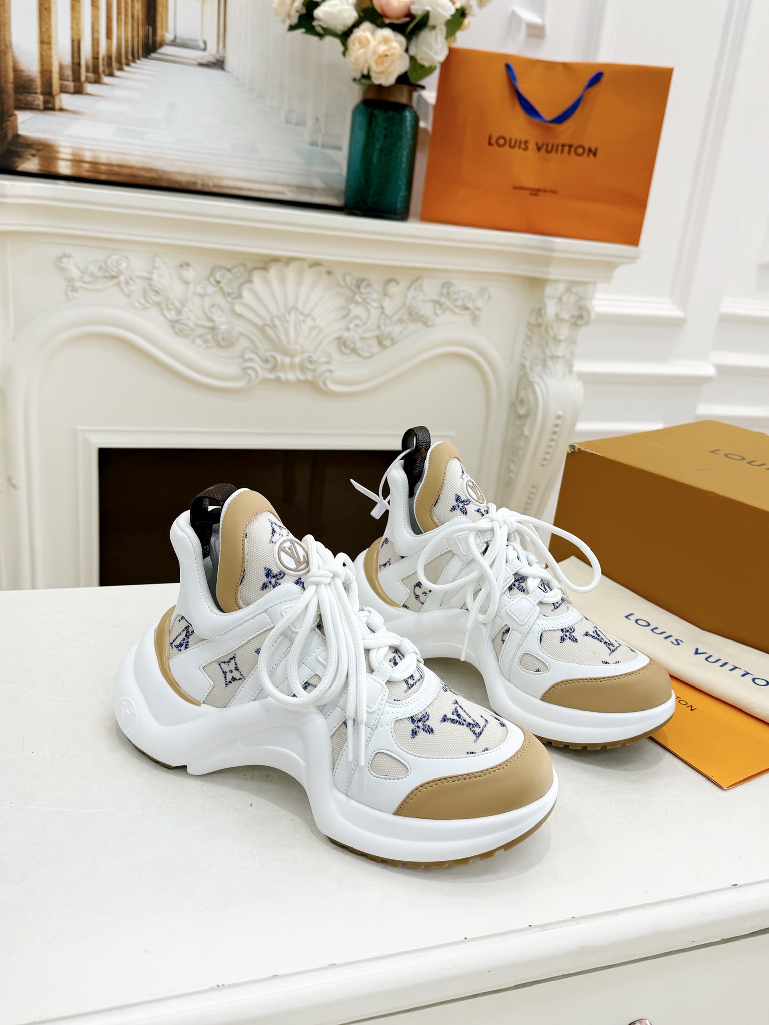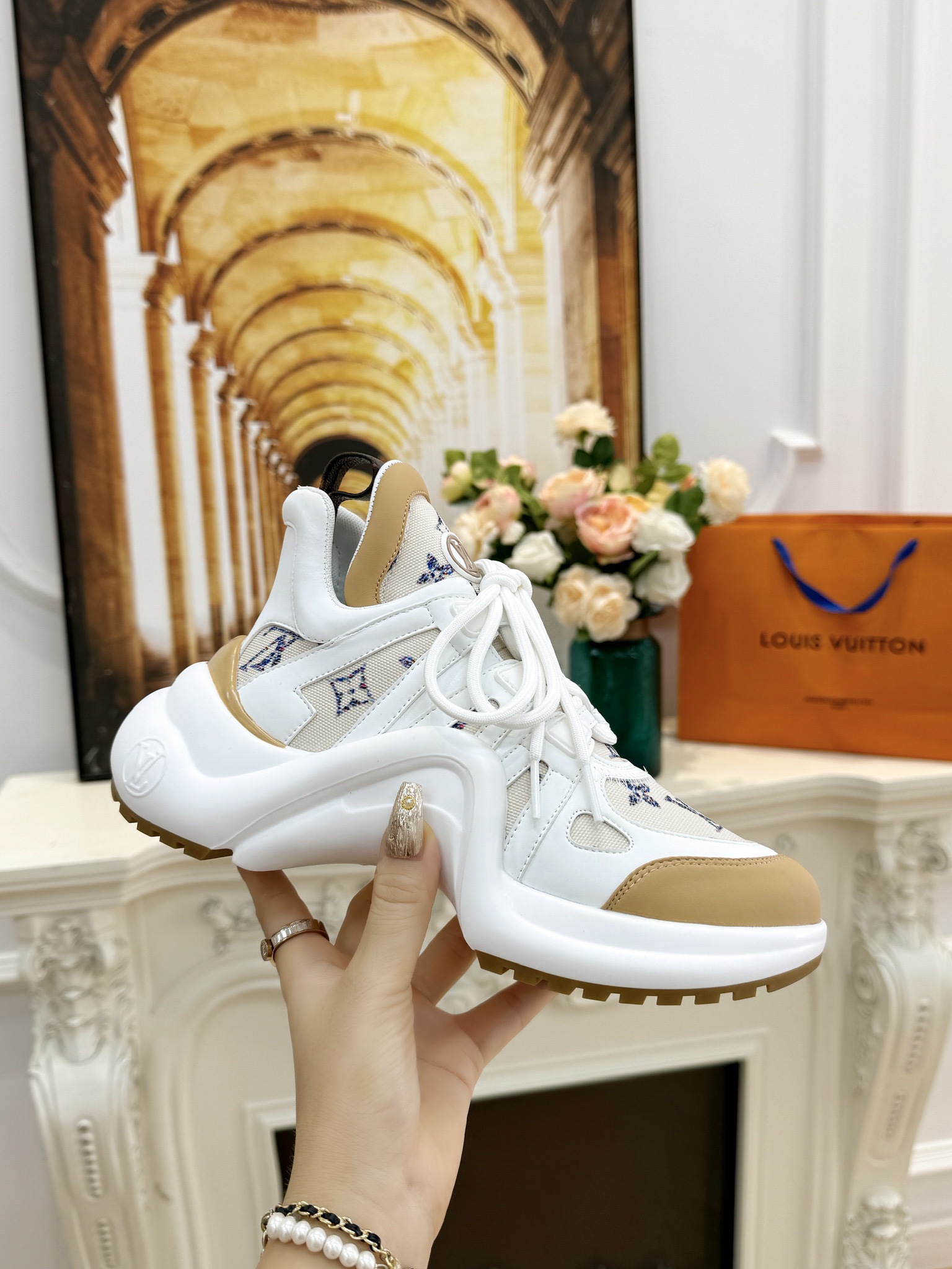 这款鞋子是AAAAA 1:1 质量 (非常棒). 使用了和原版一模一样的材料. 商标部分也保持了和路易威登/Louis Vuitton一样. 图片拍摄是实物鞋子拍摄, 您所收到的实物保证和我们图片一模一样.