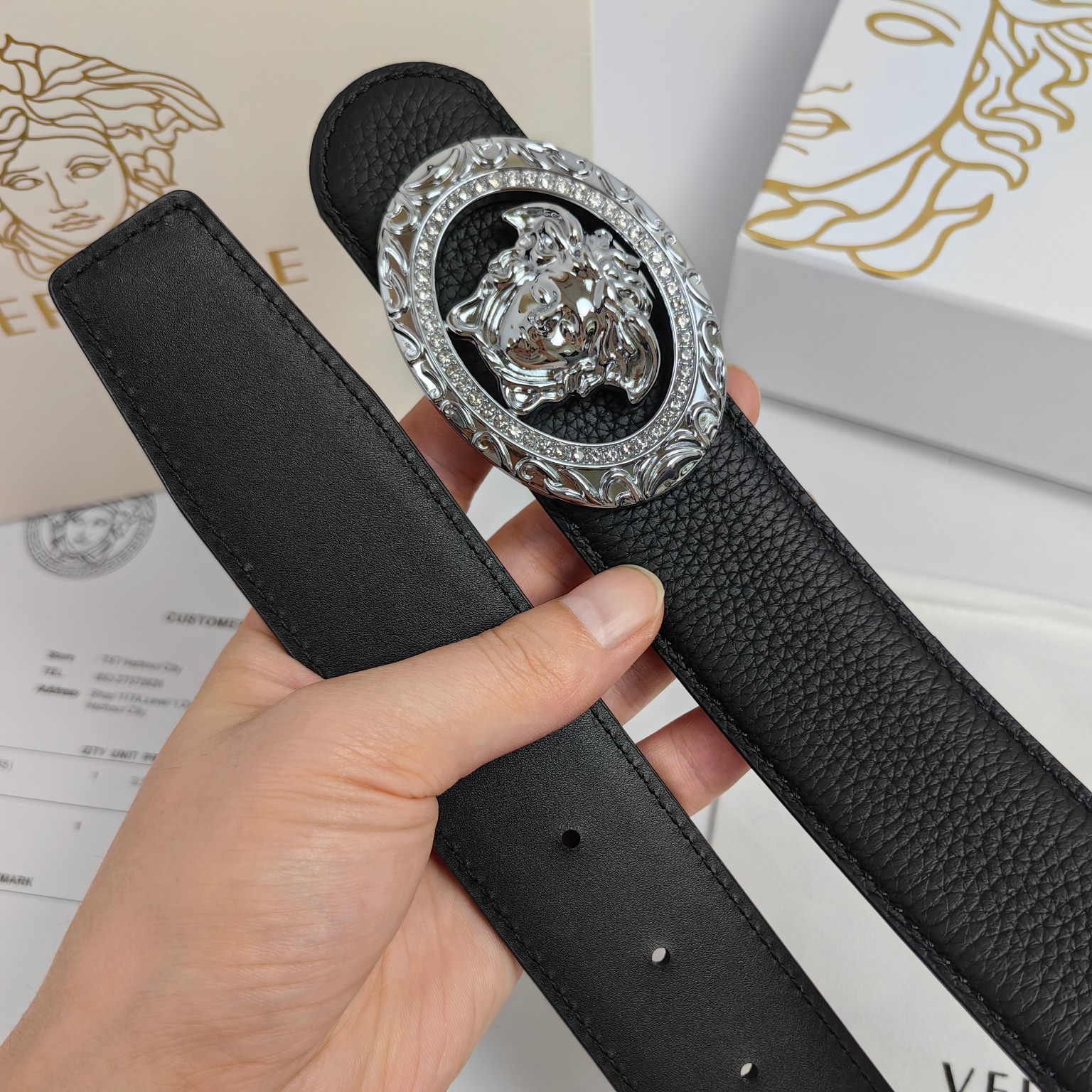 这款皮带是AAAAA 1:1 质量 (非常棒). 使用了和原版一模一样的材料. 商标部分也保持了和范思哲/Versace一样. 图片拍摄是实物皮带拍摄, 您所收到的实物保证和我们图片一模一样.