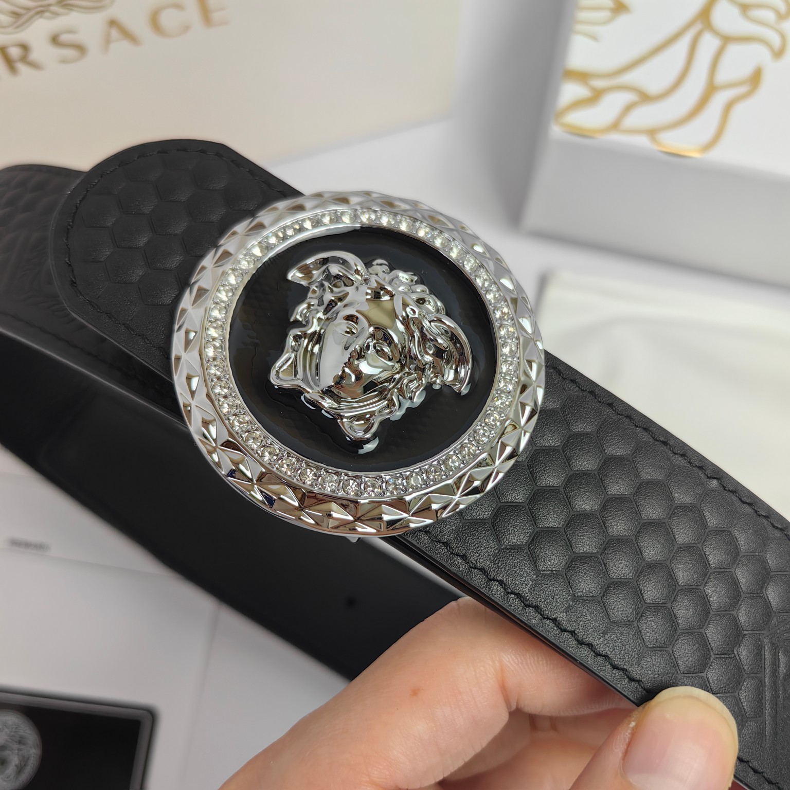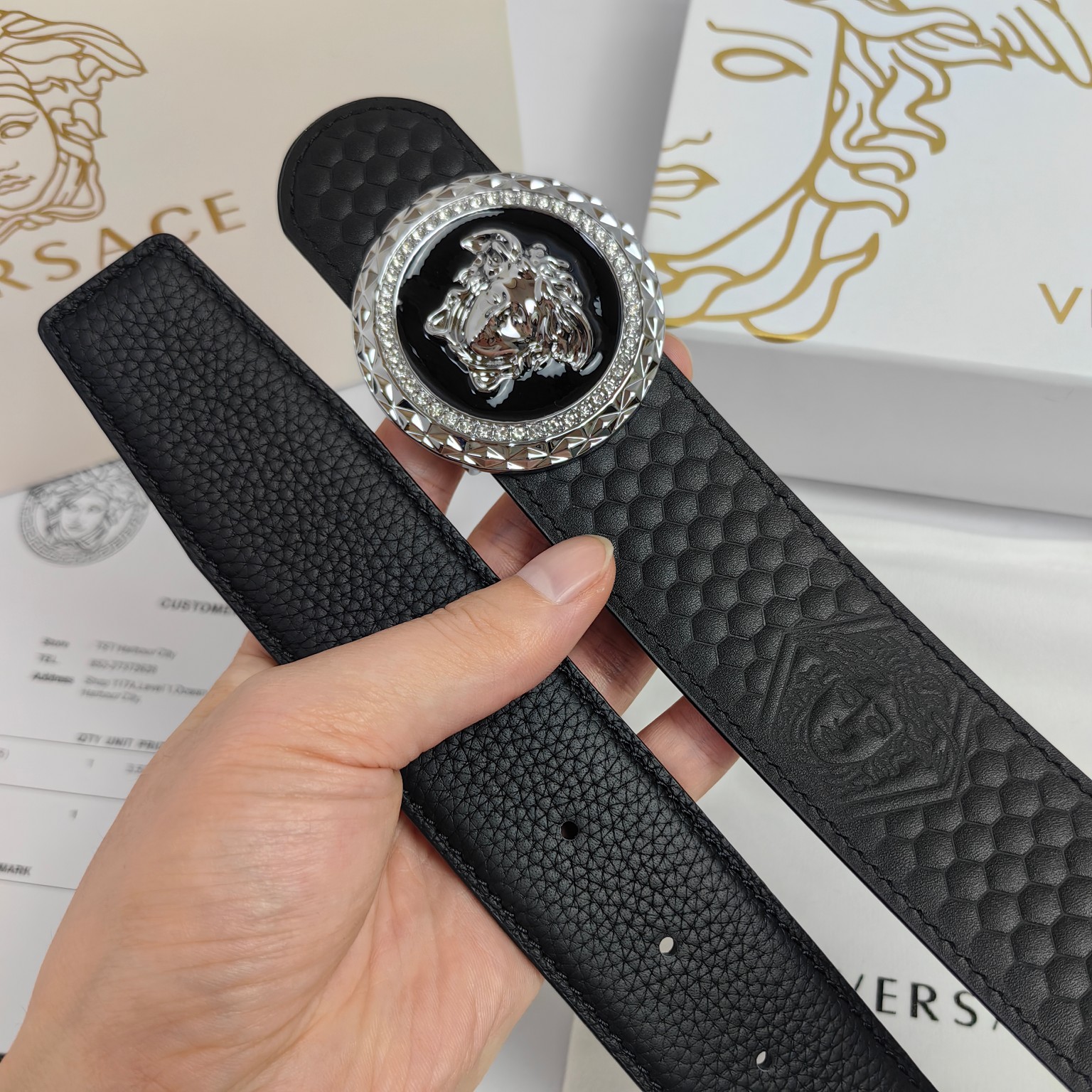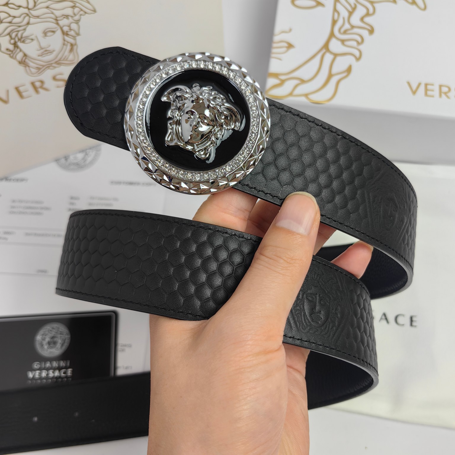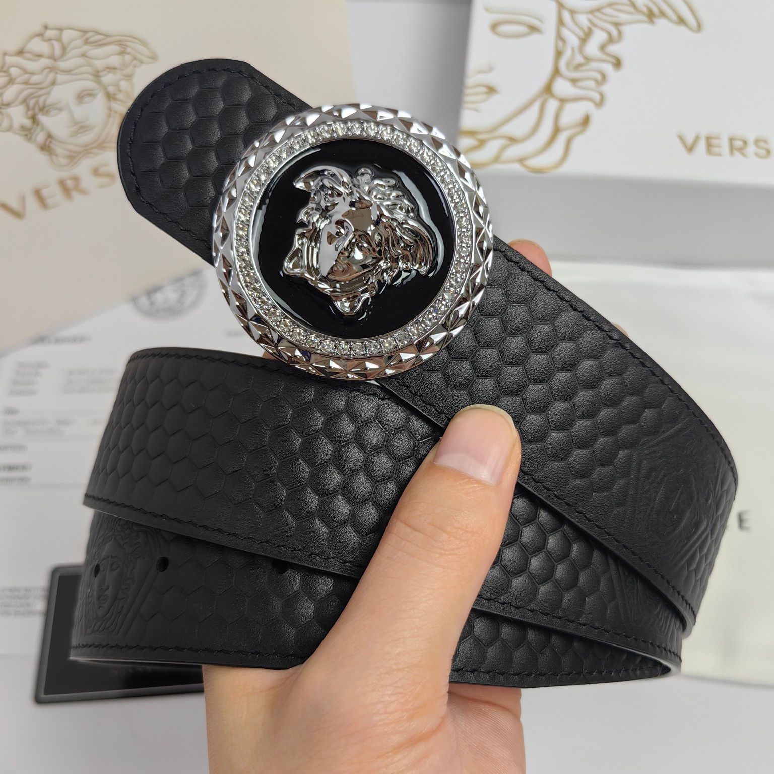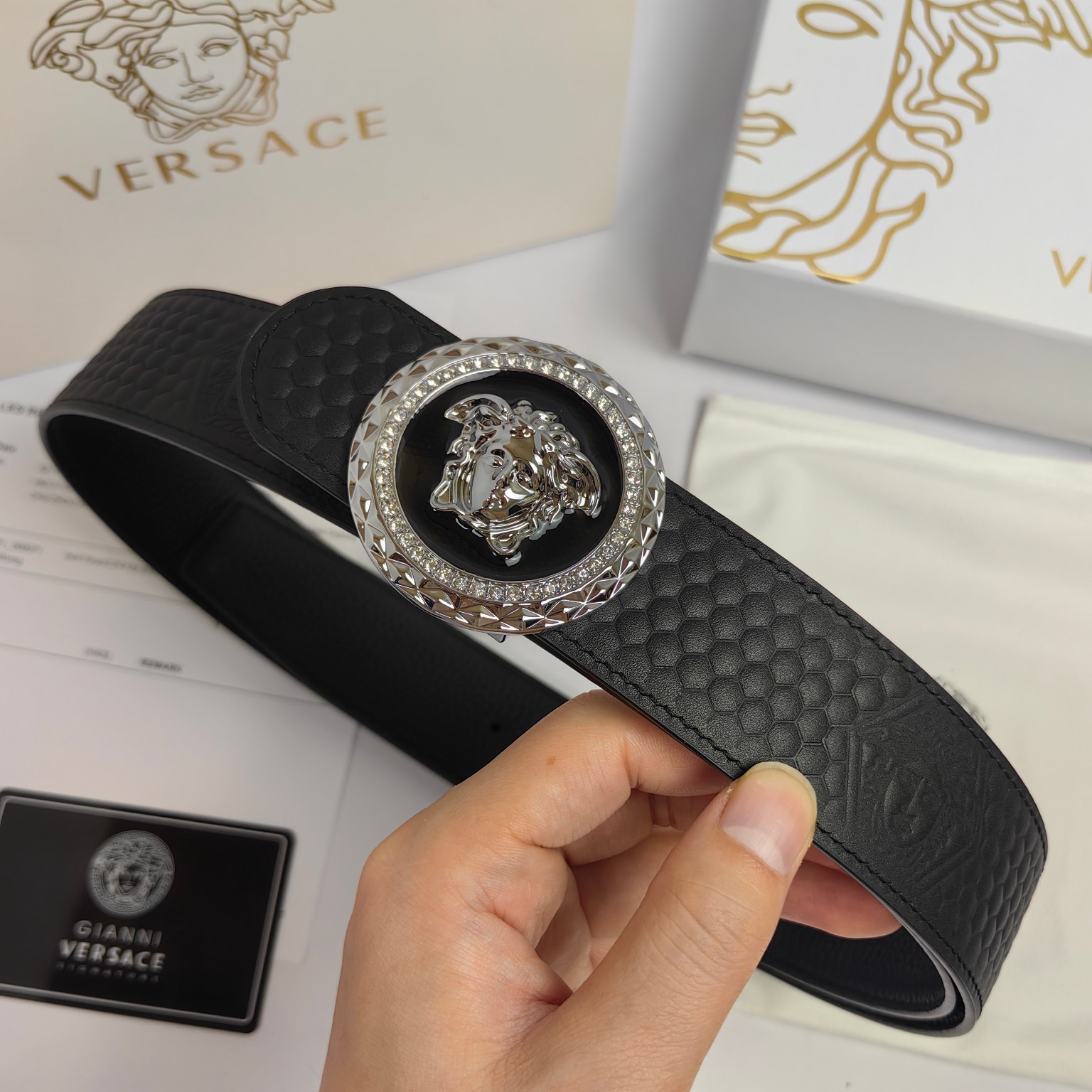 这款皮带是AAAAA 1:1 质量 (非常棒). 使用了和原版一模一样的材料. 商标部分也保持了和范思哲/Versace一样. 图片拍摄是实物皮带拍摄, 您所收到的实物保证和我们图片一模一样.