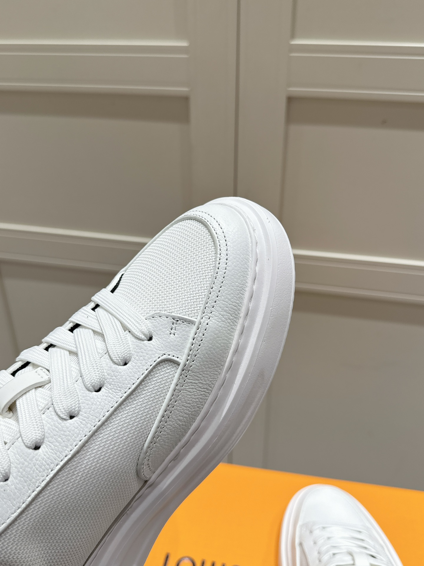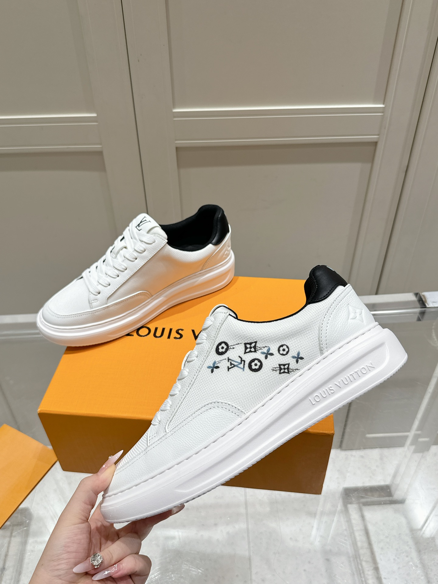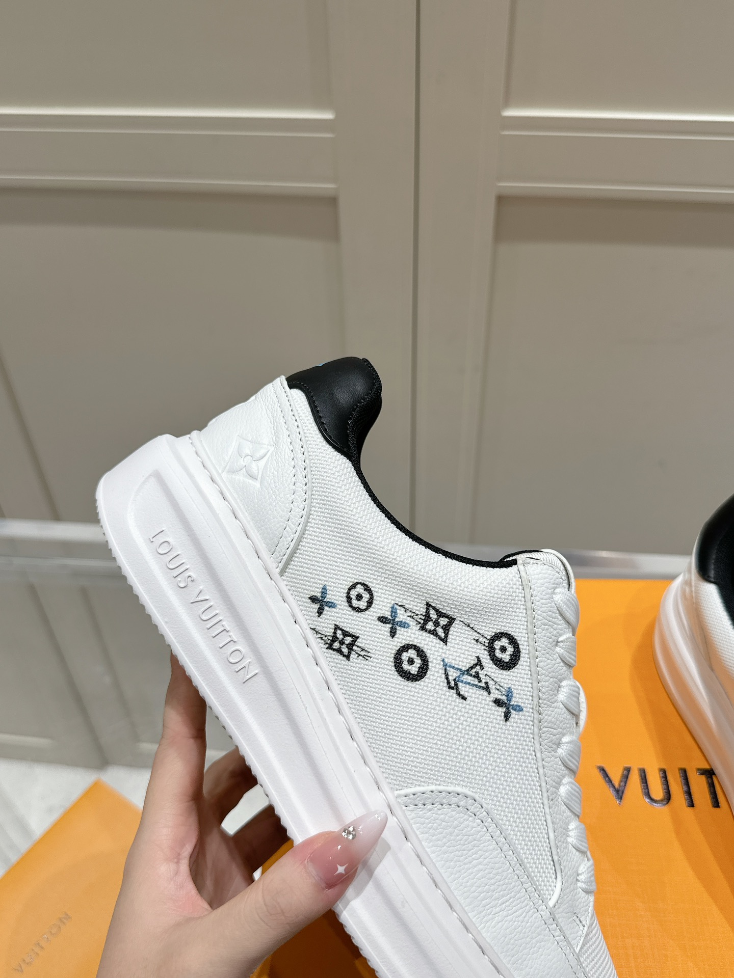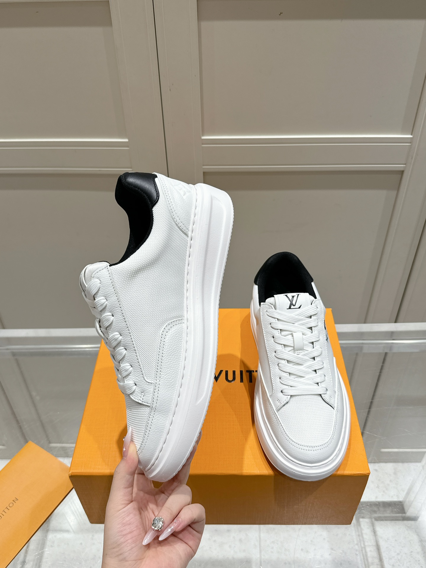 这款鞋子是AAAAA 1:1 质量 (非常棒). 使用了和原版一模一样的材料. 商标部分也保持了和路易威登/Louis Vuitton一样. 图片拍摄是实物鞋子拍摄, 您所收到的实物保证和我们图片一模一样.
