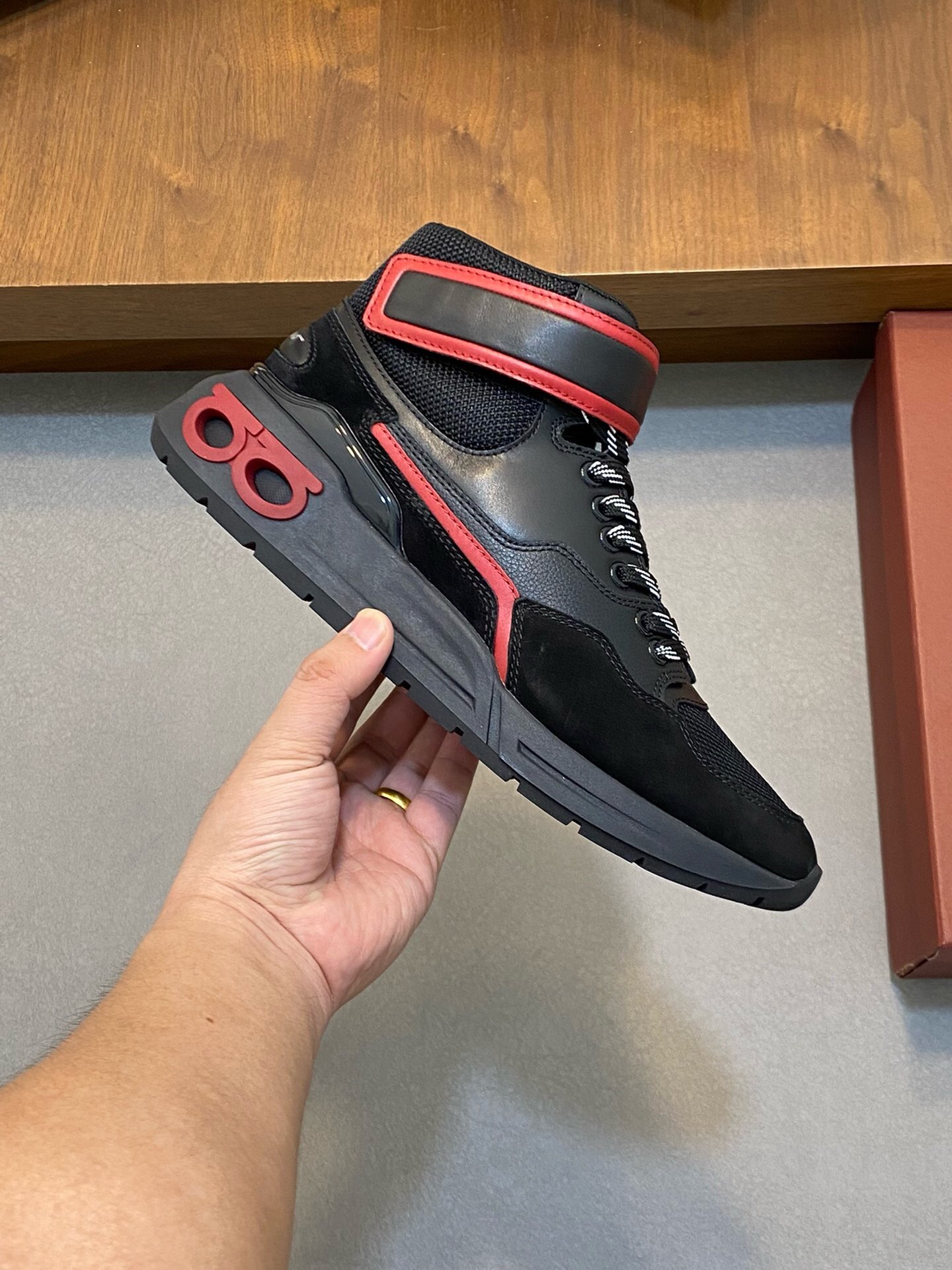 这款鞋子是AAAAA 1:1 质量 (非常棒). 使用了和原版一模一样的材料. 商标部分也保持了和菲拉格慕/Salvatore Ferragamo一样. 图片拍摄是实物鞋子拍摄, 您所收到的实物保证和我们图片一模一样.
