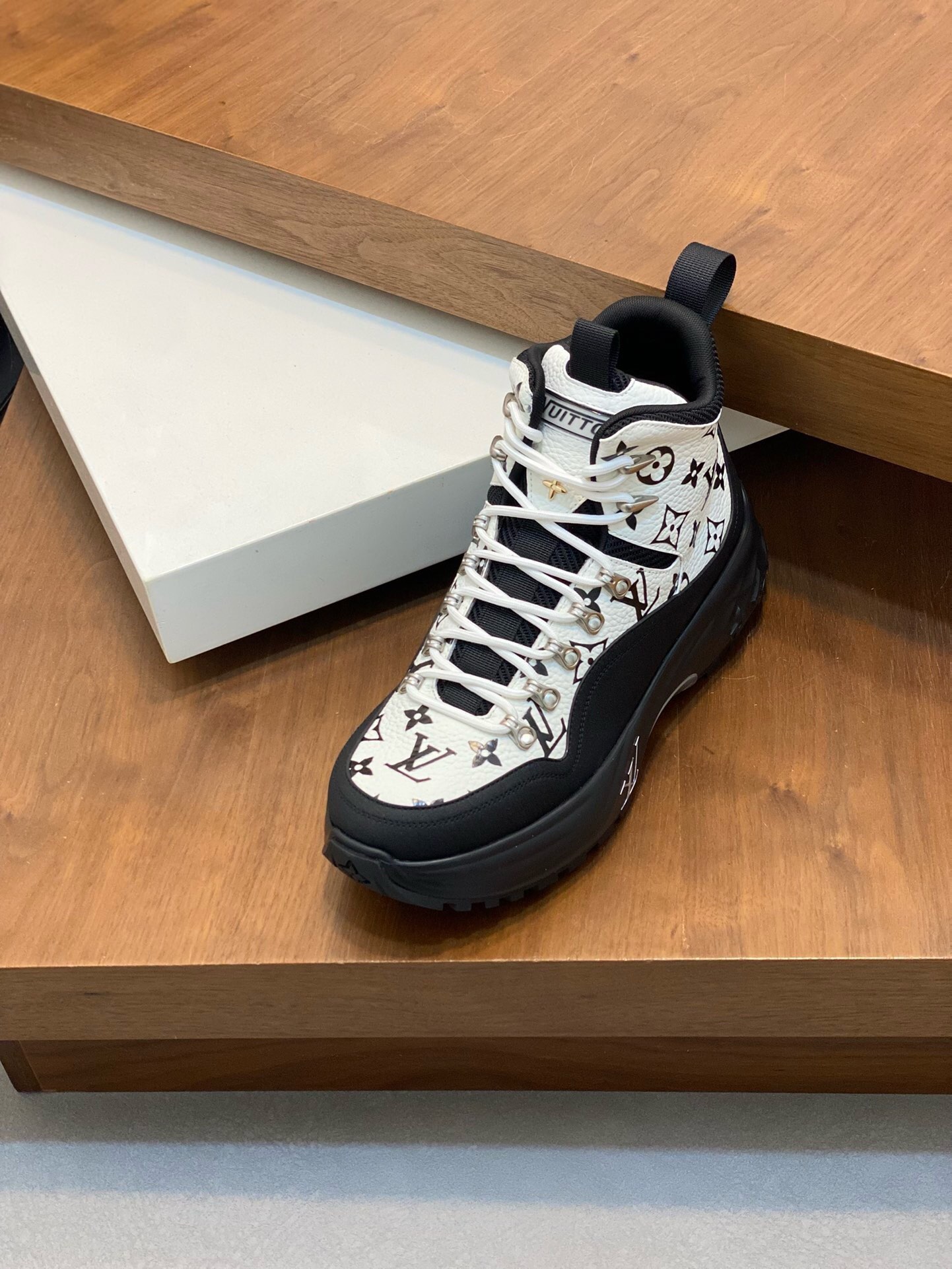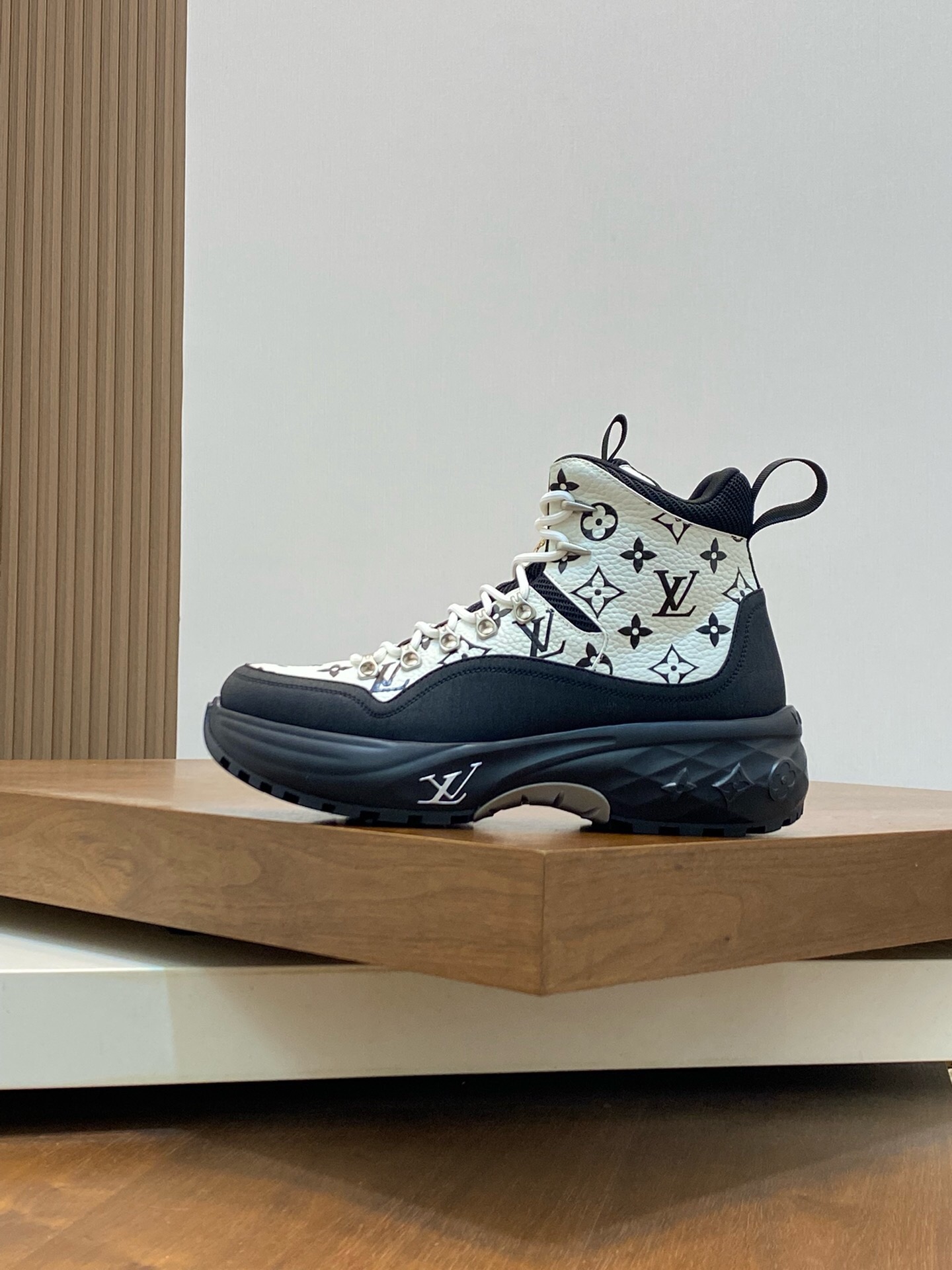 这款鞋子是AAAAA 1:1 质量 (非常棒). 使用了和原版一模一样的材料. 商标部分也保持了和路易威登/Louis Vuitton一样. 图片拍摄是实物鞋子拍摄, 您所收到的实物保证和我们图片一模一样.