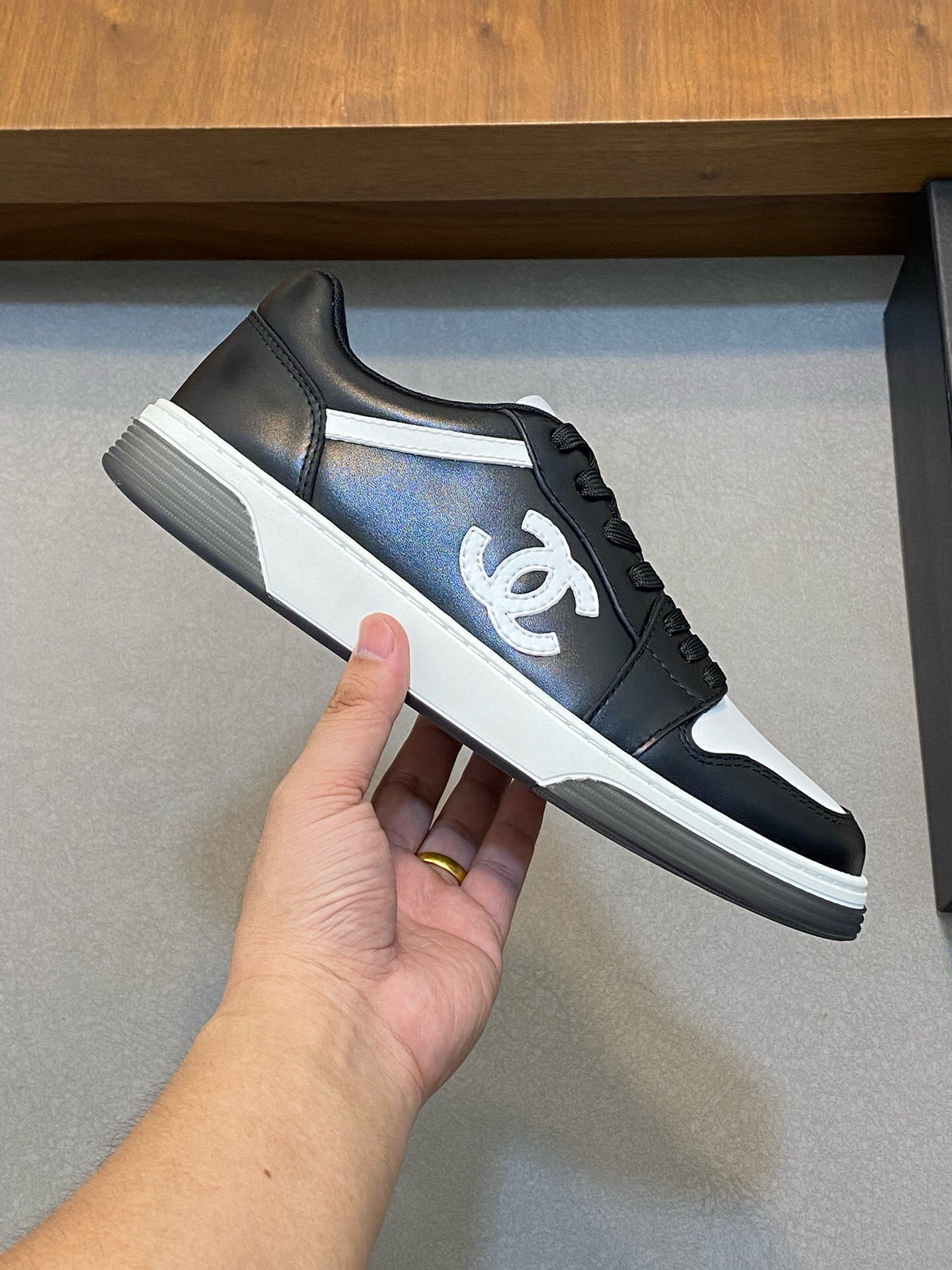这款鞋子是AAAAA 1:1 质量 (非常棒). 使用了和原版一模一样的材料. 商标部分也保持了和香奈儿/Chanel一样. 图片拍摄是实物鞋子拍摄, 您所收到的实物保证和我们图片一模一样.