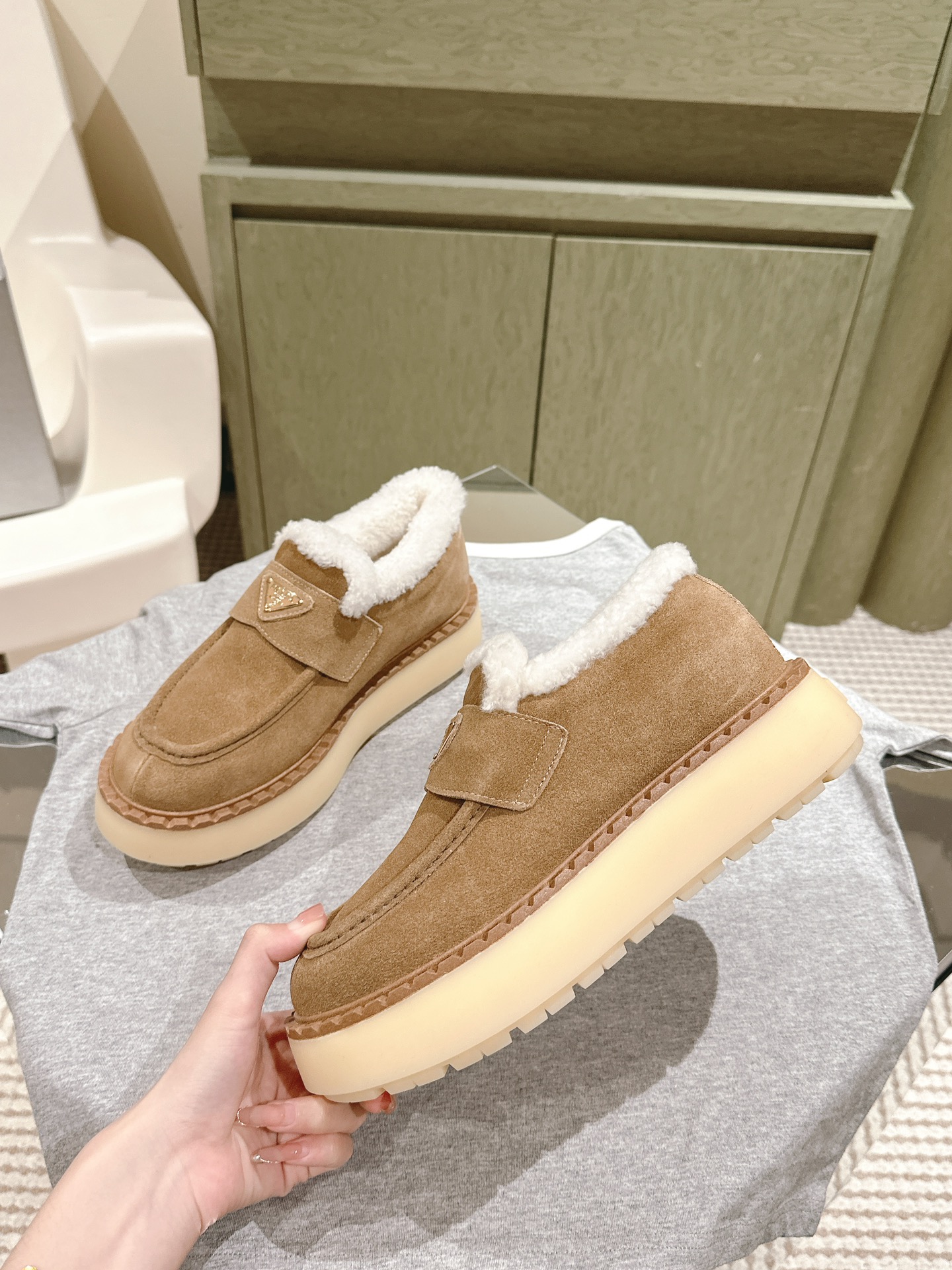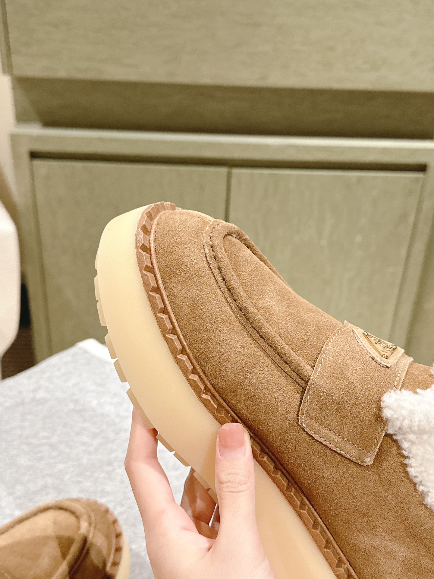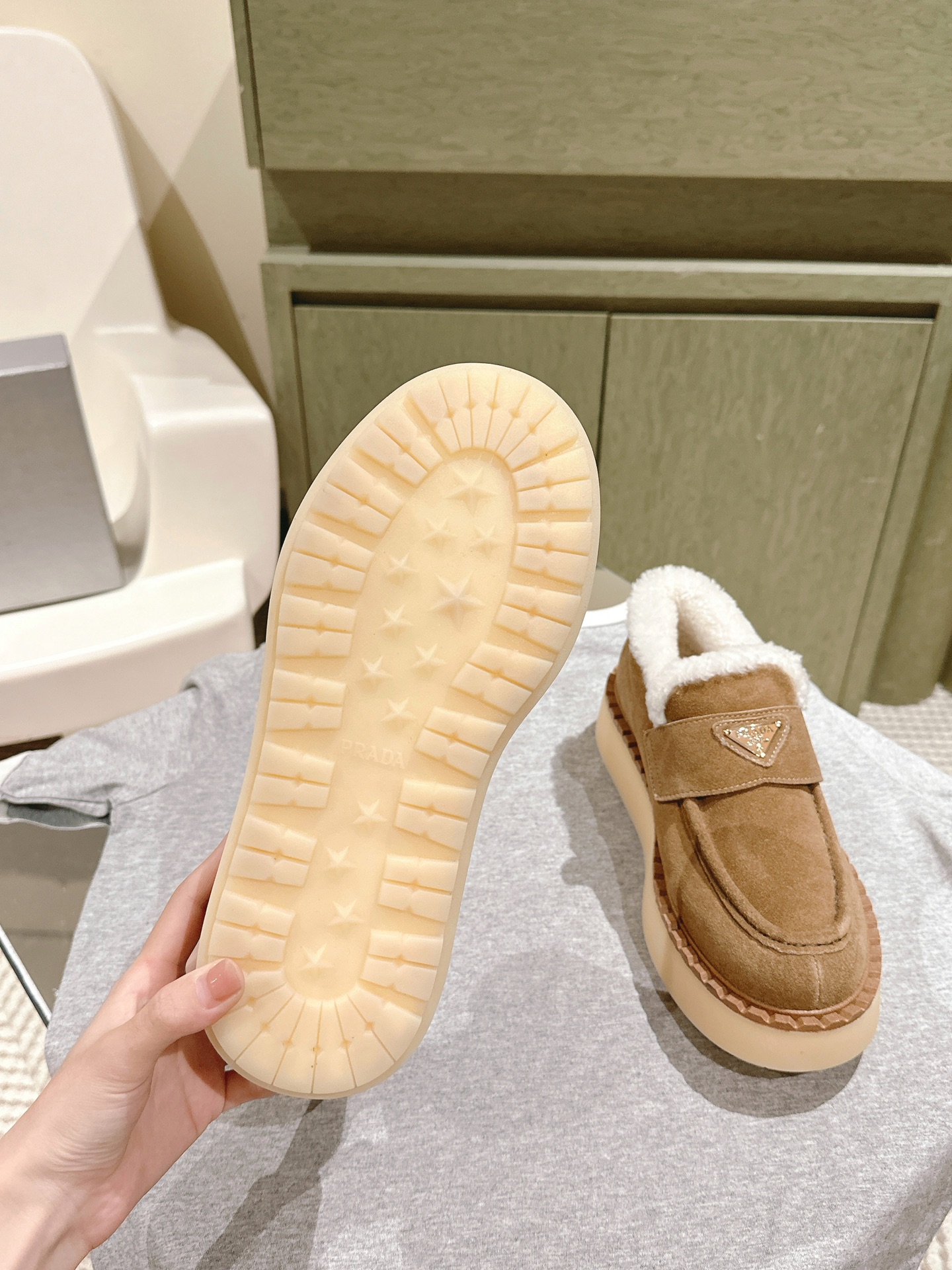 这款鞋子是AAAAA 1:1 质量 (非常棒). 使用了和原版一模一样的材料. 商标部分也保持了和普拉达/Prada一样. 图片拍摄是实物鞋子拍摄, 您所收到的实物保证和我们图片一模一样.