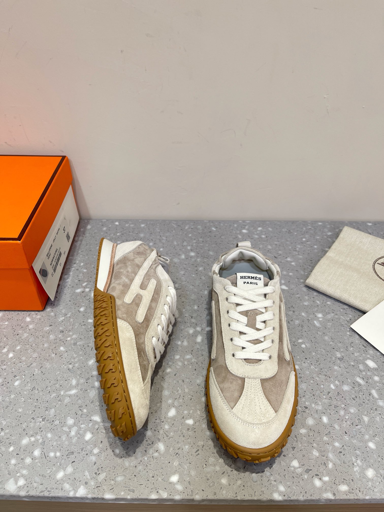 这款鞋子是AAAAA 1:1 质量 (非常棒). 使用了和原版一模一样的材料. 商标部分也保持了和爱马仕/Hermes一样. 图片拍摄是实物鞋子拍摄, 您所收到的实物保证和我们图片一模一样.