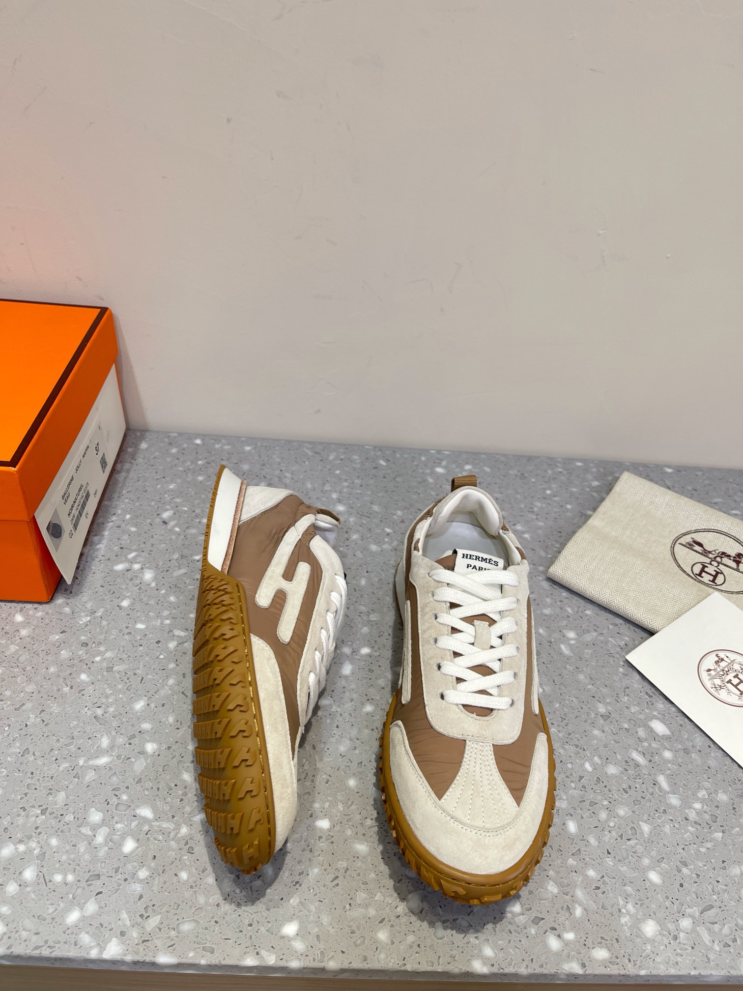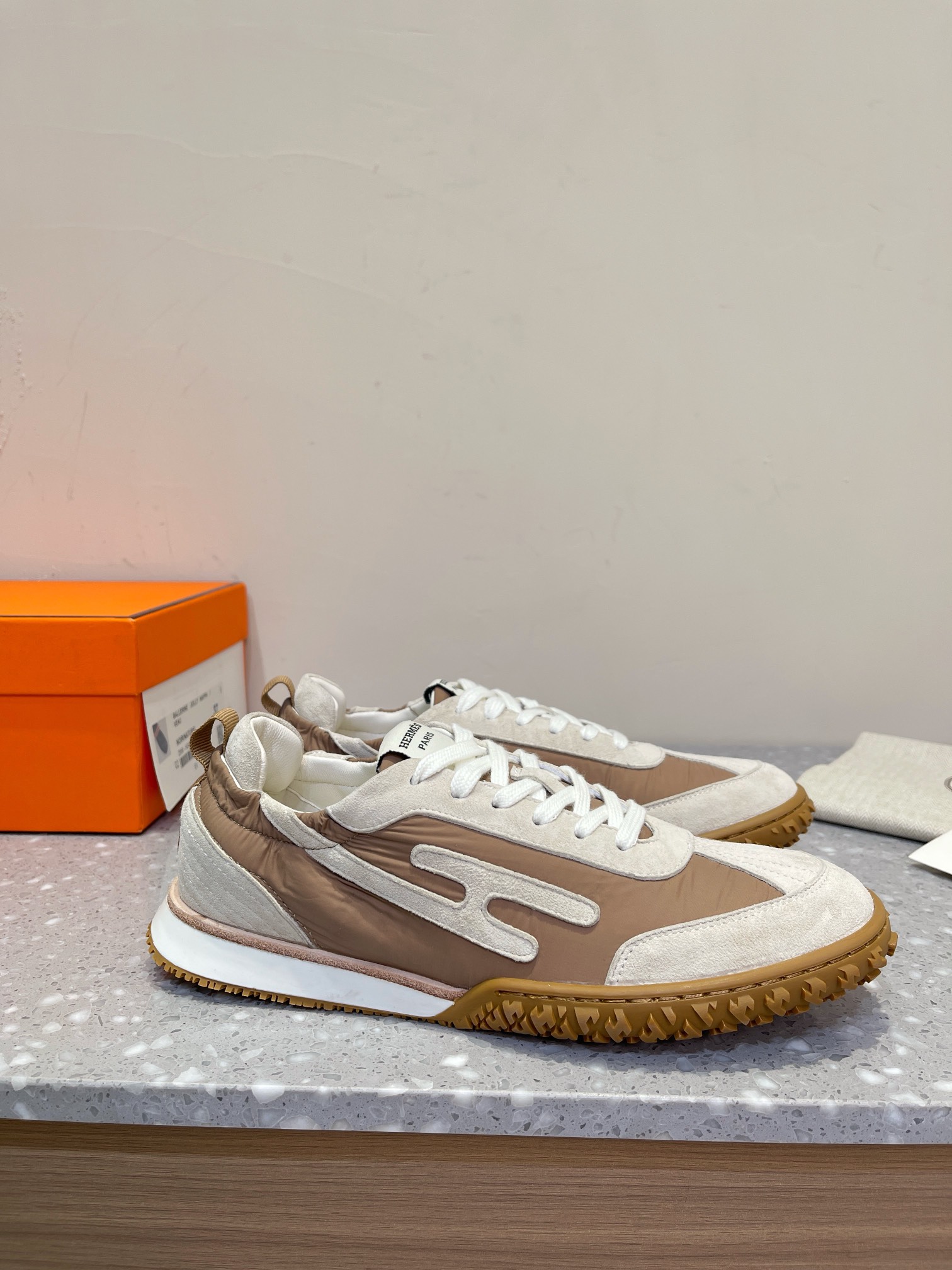 这款鞋子是AAAAA 1:1 质量 (非常棒). 使用了和原版一模一样的材料. 商标部分也保持了和爱马仕/Hermes一样. 图片拍摄是实物鞋子拍摄, 您所收到的实物保证和我们图片一模一样.
