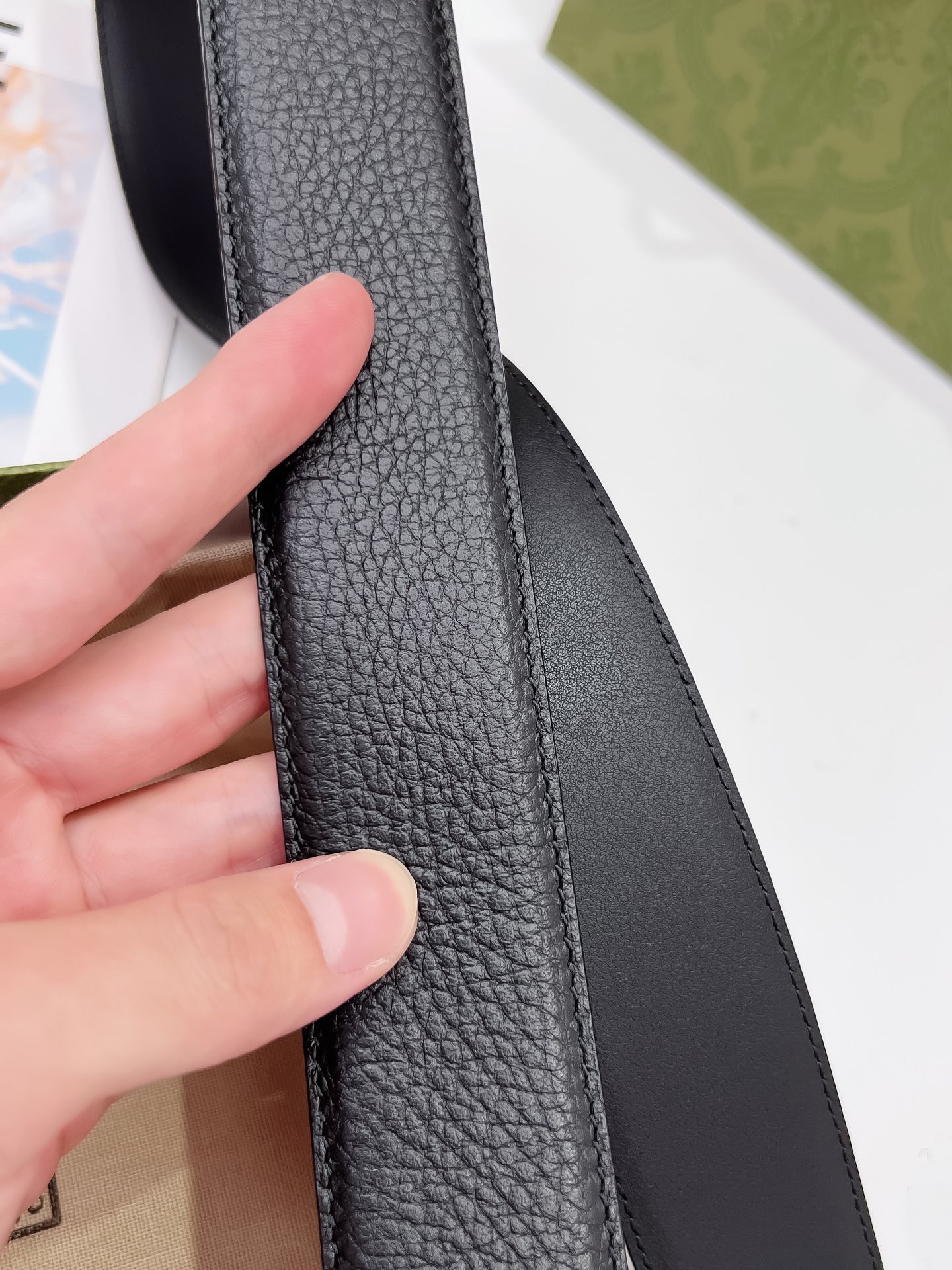 这款皮带是AAAAA 1:1 质量 (非常棒). 使用了和原版一模一样的材料. 商标部分也保持了和一样. 图片拍摄是实物皮带拍摄, 您所收到的实物保证和我们图片一模一样.