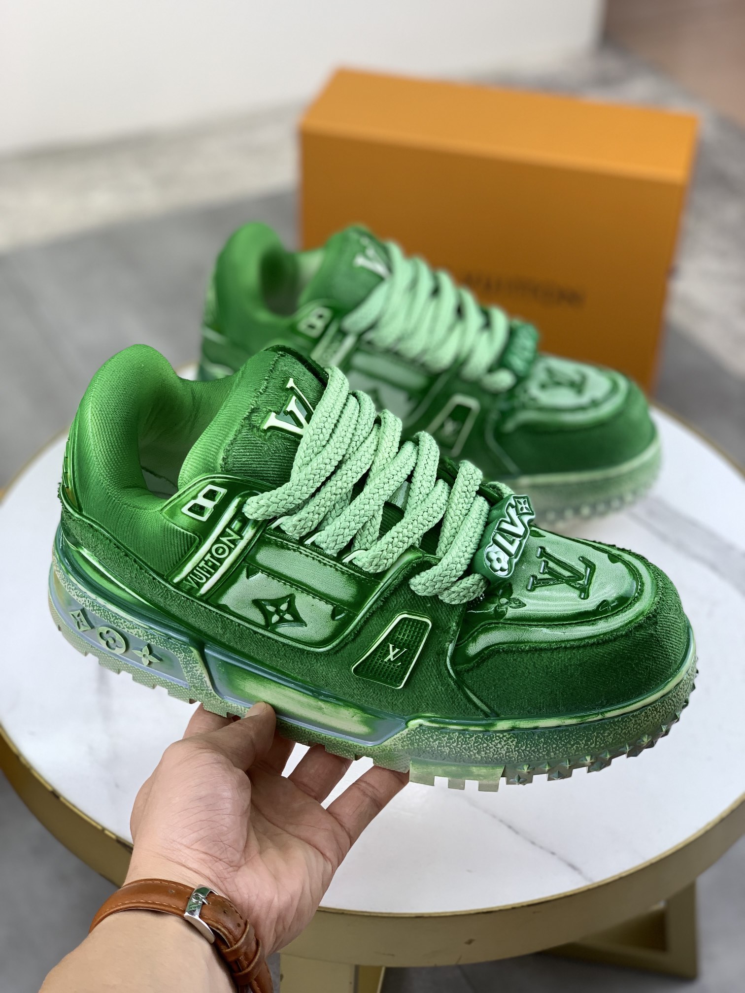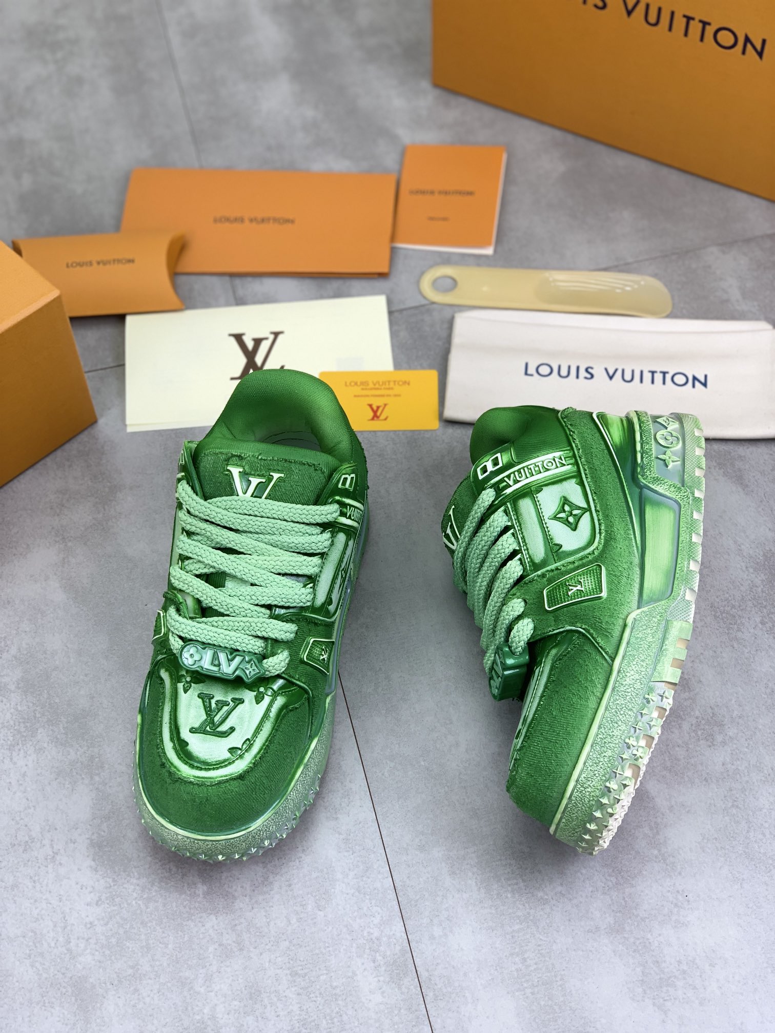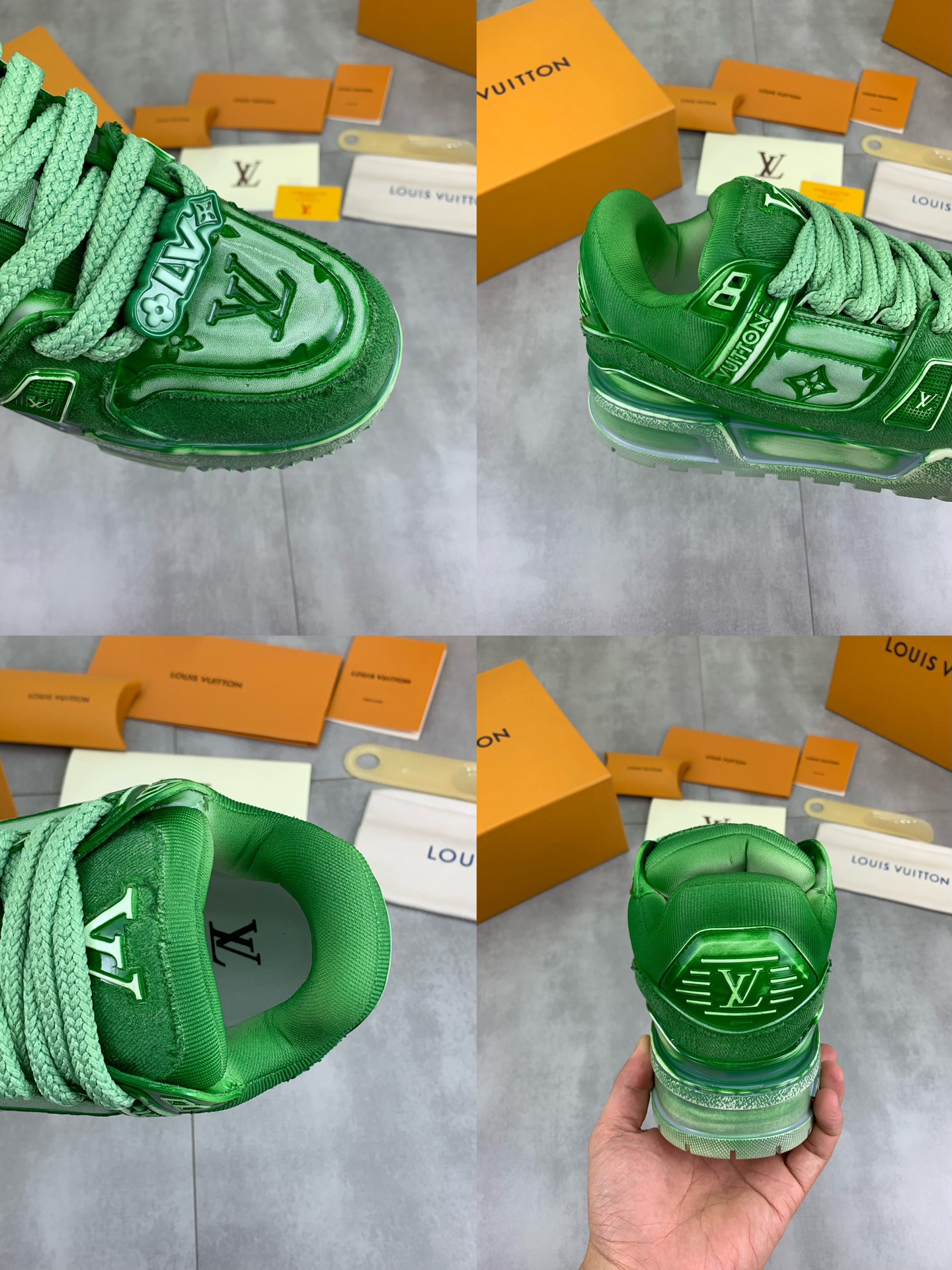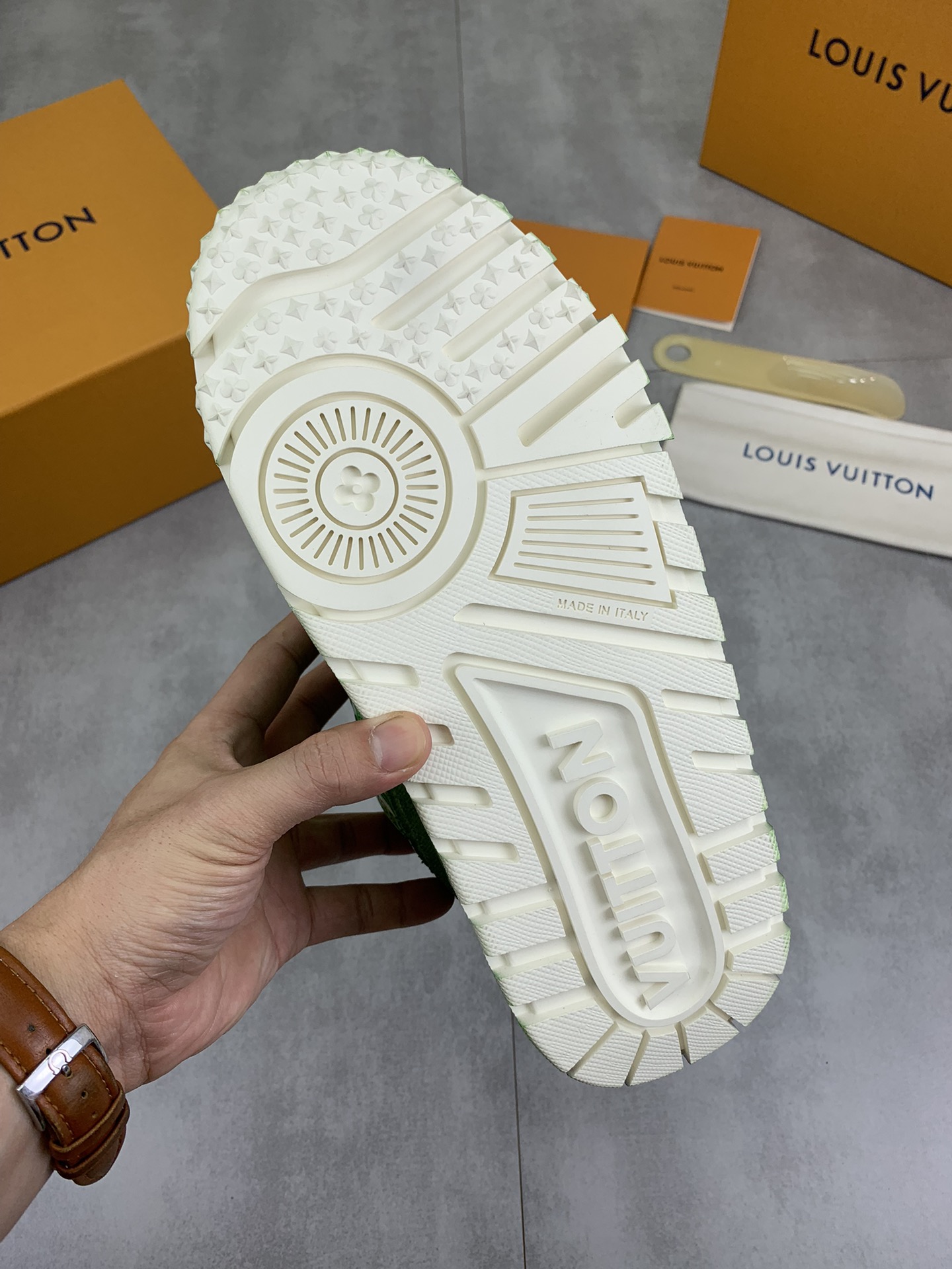 这款鞋子是AAAAA 1:1 质量 (非常棒). 使用了和原版一模一样的材料. 商标部分也保持了和路易威登/Louis Vuitton一样. 图片拍摄是实物鞋子拍摄, 您所收到的实物保证和我们图片一模一样.