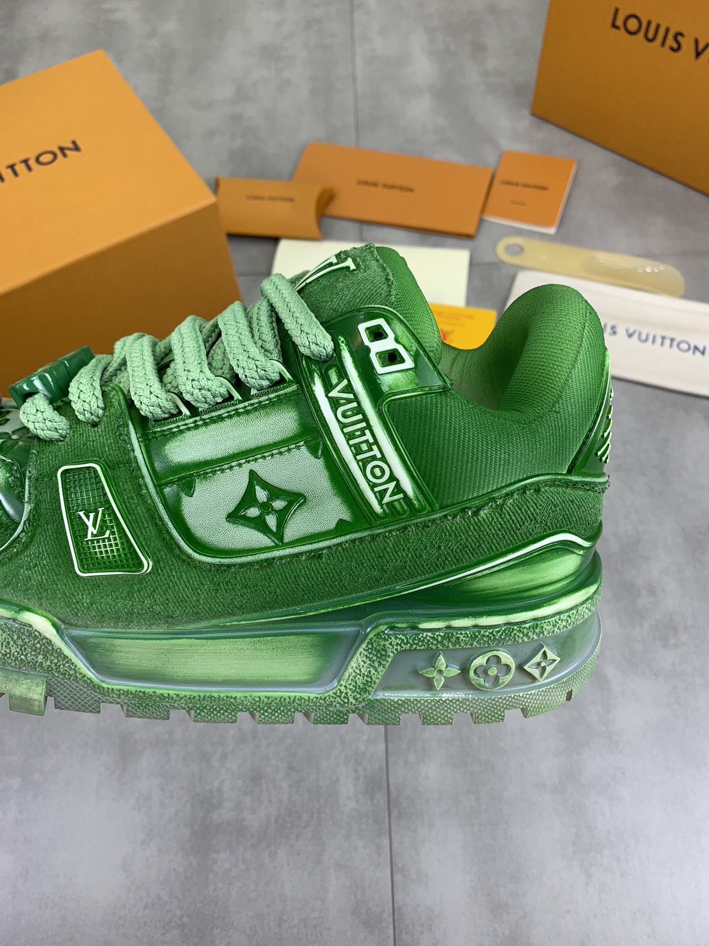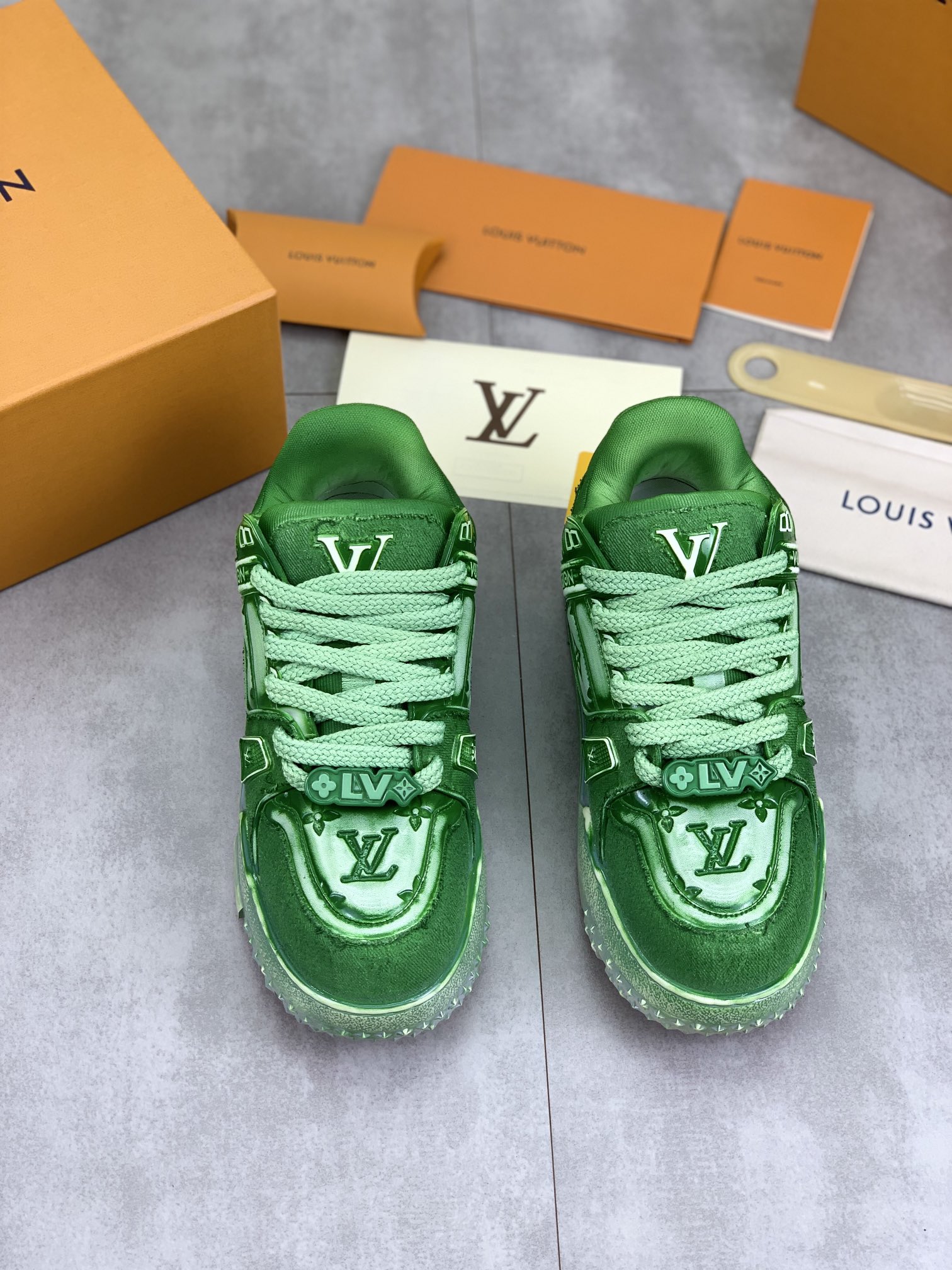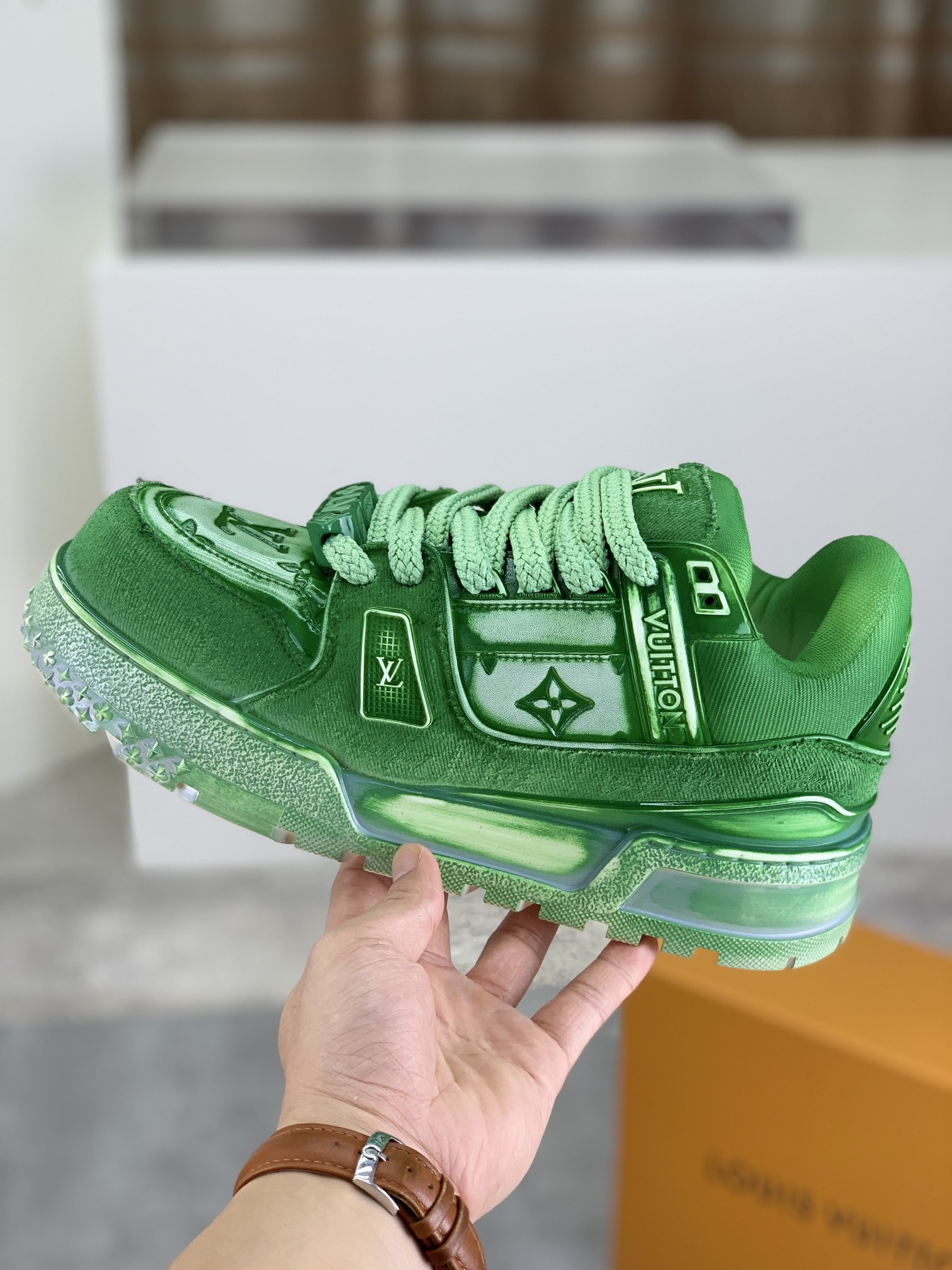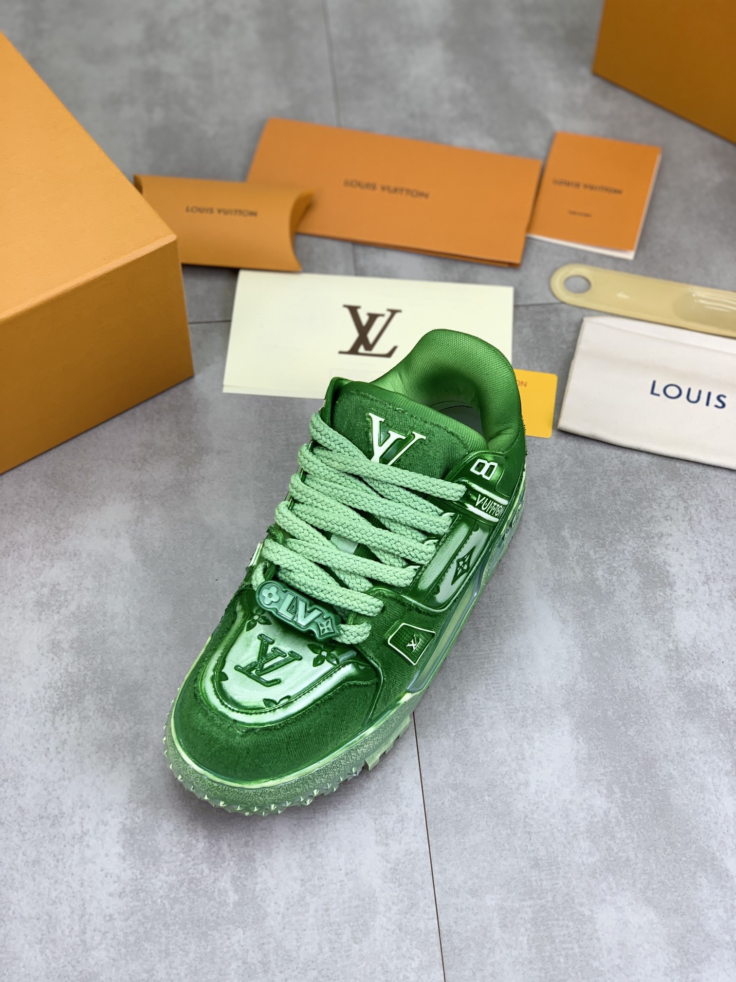 这款鞋子是AAAAA 1:1 质量 (非常棒). 使用了和原版一模一样的材料. 商标部分也保持了和路易威登/Louis Vuitton一样. 图片拍摄是实物鞋子拍摄, 您所收到的实物保证和我们图片一模一样.