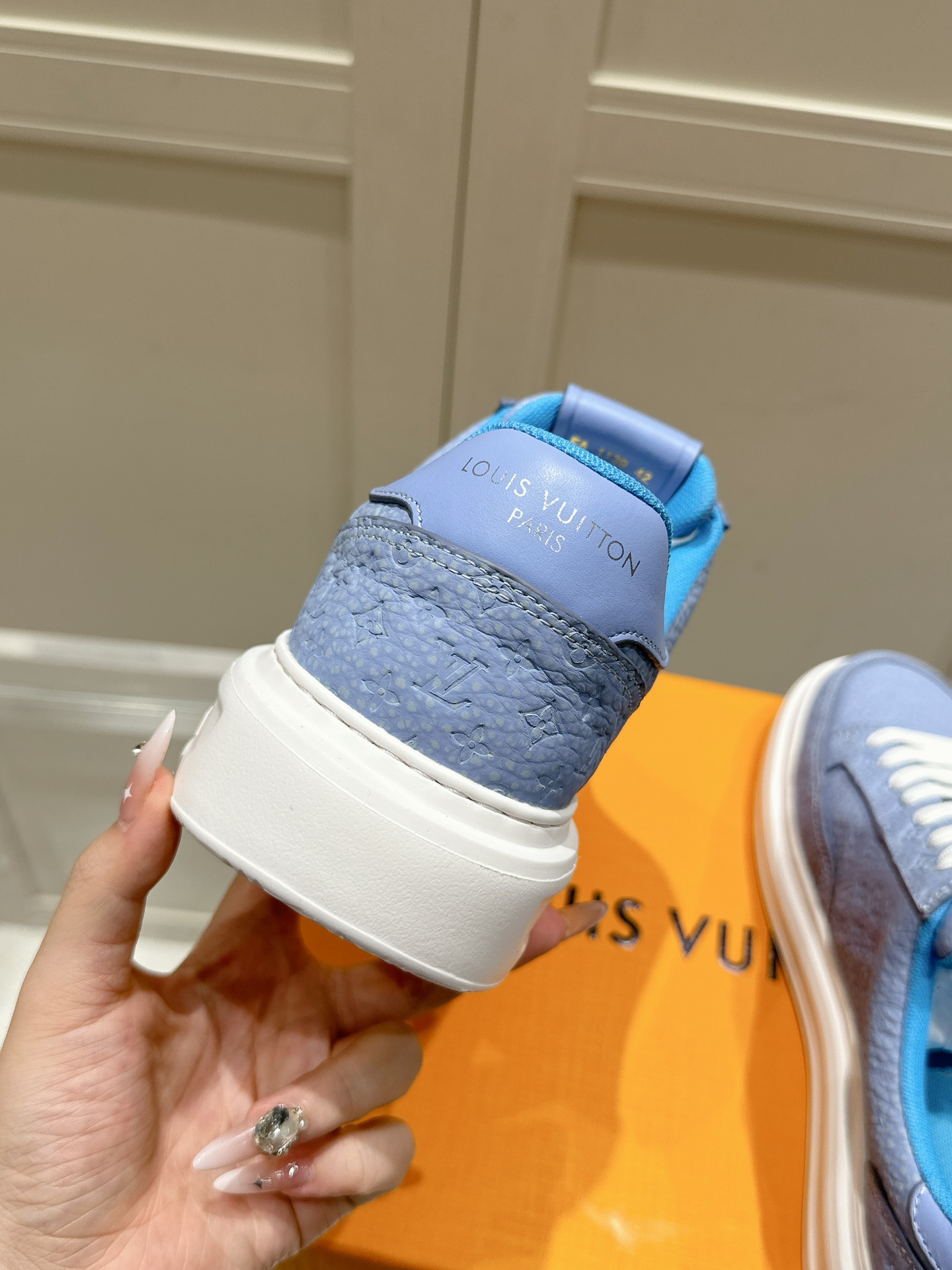 这款鞋子是AAAAA 1:1 质量 (非常棒). 使用了和原版一模一样的材料. 商标部分也保持了和路易威登/Louis Vuitton一样. 图片拍摄是实物鞋子拍摄, 您所收到的实物保证和我们图片一模一样.