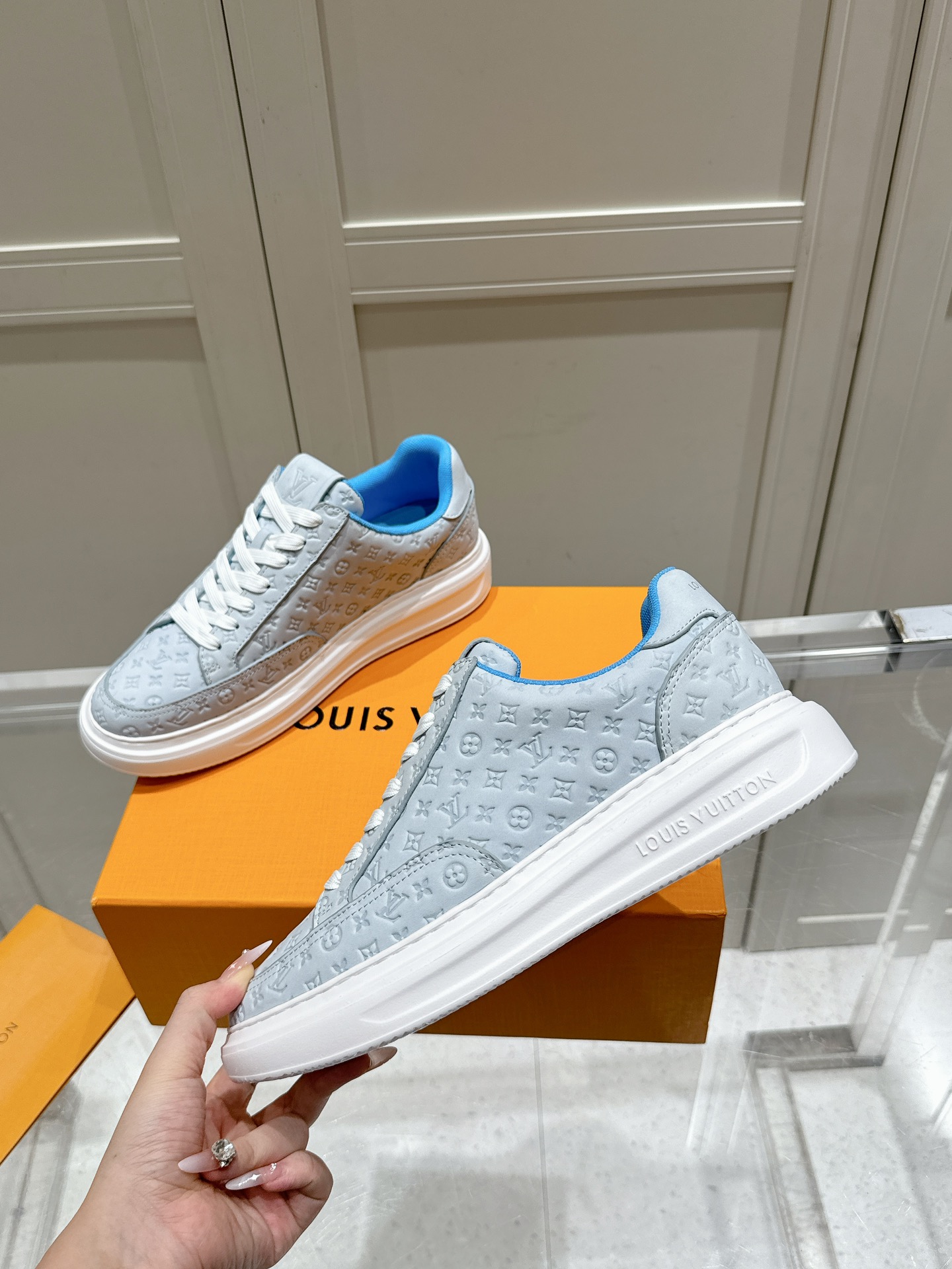 这款鞋子是AAAAA 1:1 质量 (非常棒). 使用了和原版一模一样的材料. 商标部分也保持了和路易威登/Louis Vuitton一样. 图片拍摄是实物鞋子拍摄, 您所收到的实物保证和我们图片一模一样.