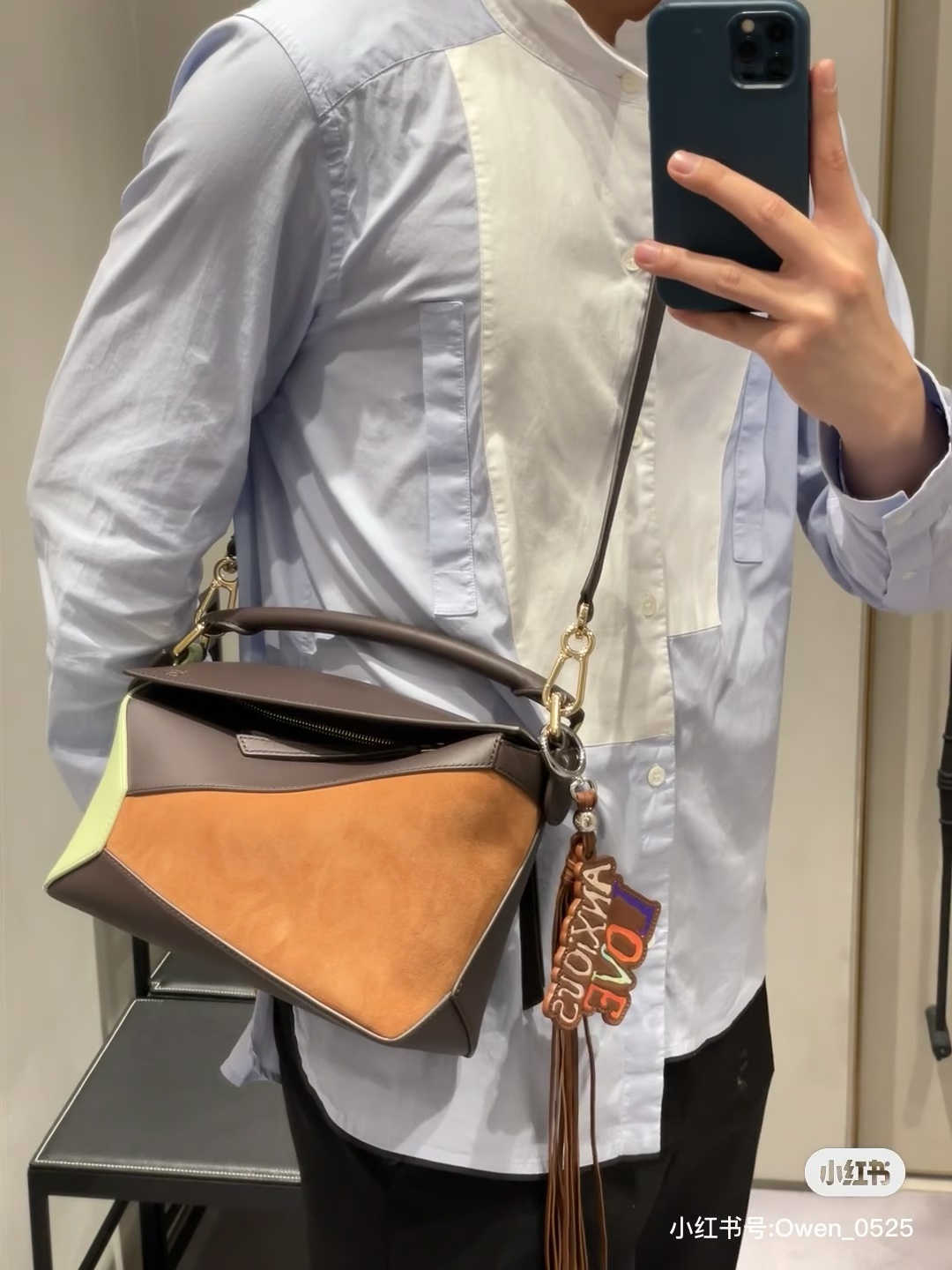这款包包是AAAAA 1:1 质量 (非常棒). 使用了和原版一模一样的材料. 商标部分也保持了和罗意威/Loewe一样. 图片拍摄是实物包包拍摄, 您所收到的实物保证和我们图片一模一样.