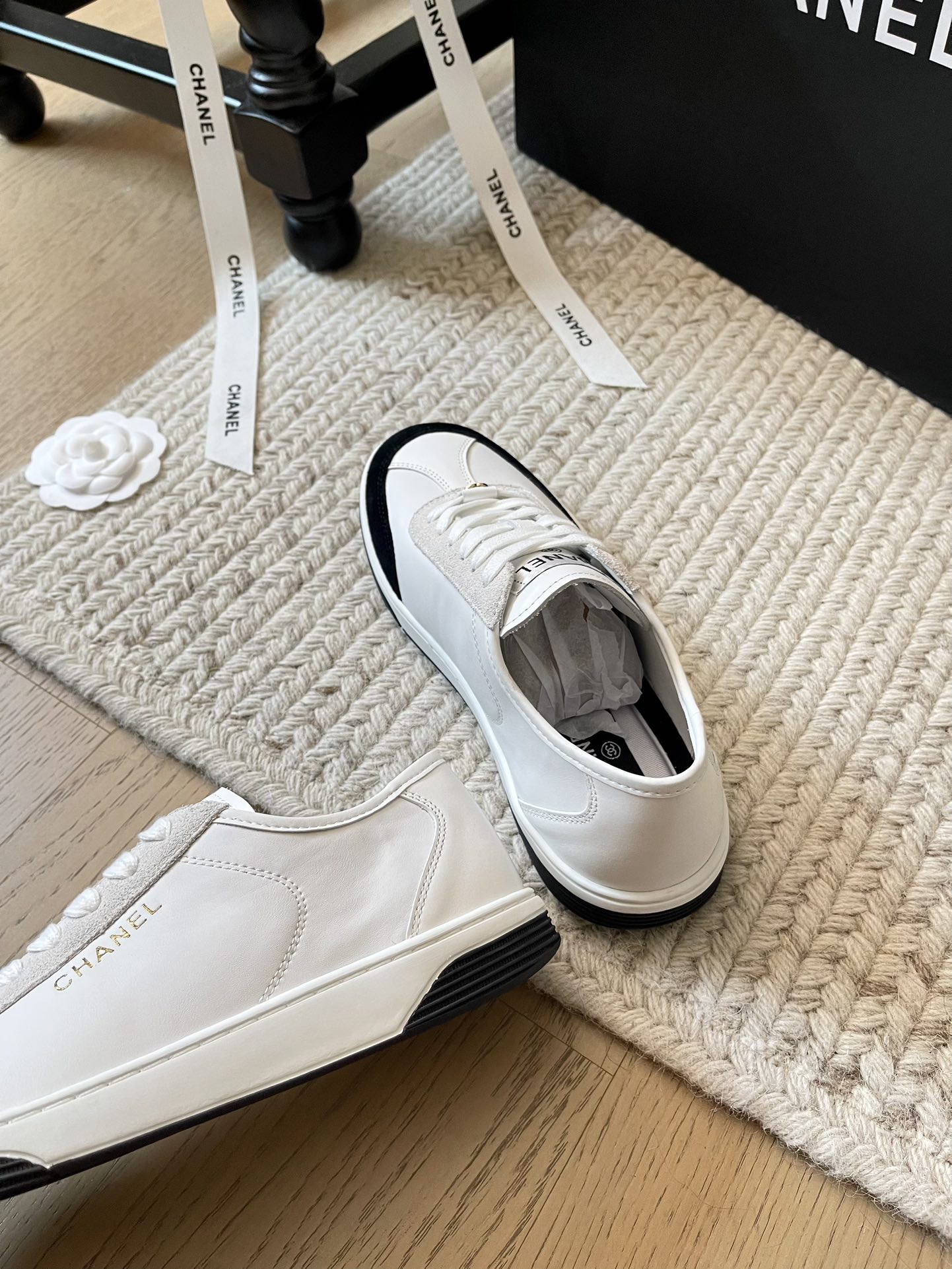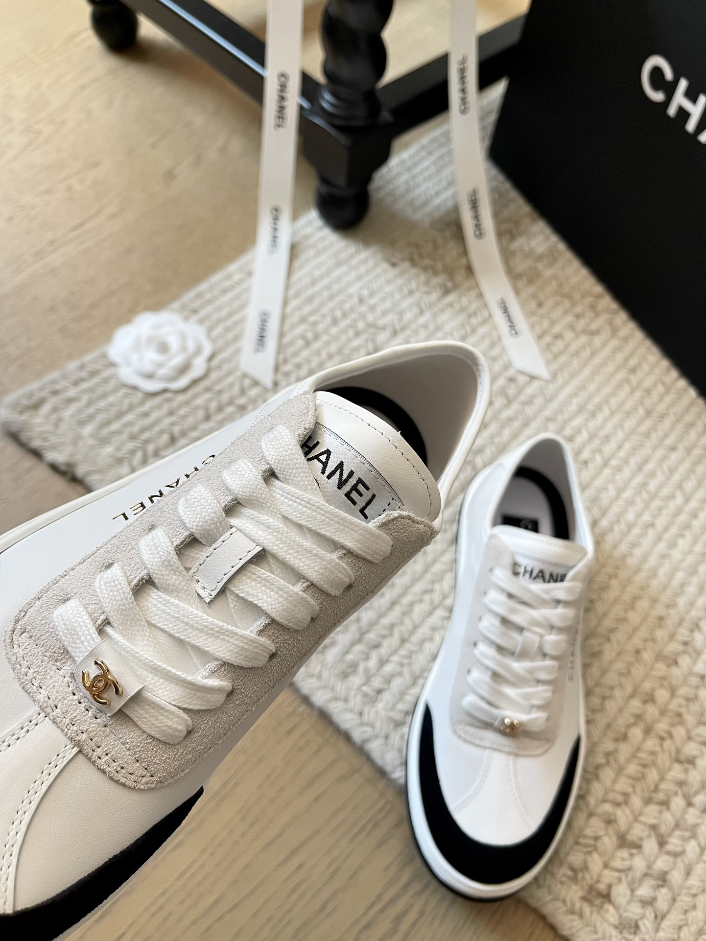 这款鞋子是AAAAA 1:1 质量 (非常棒). 使用了和原版一模一样的材料. 商标部分也保持了和香奈儿/Chanel一样. 图片拍摄是实物鞋子拍摄, 您所收到的实物保证和我们图片一模一样.