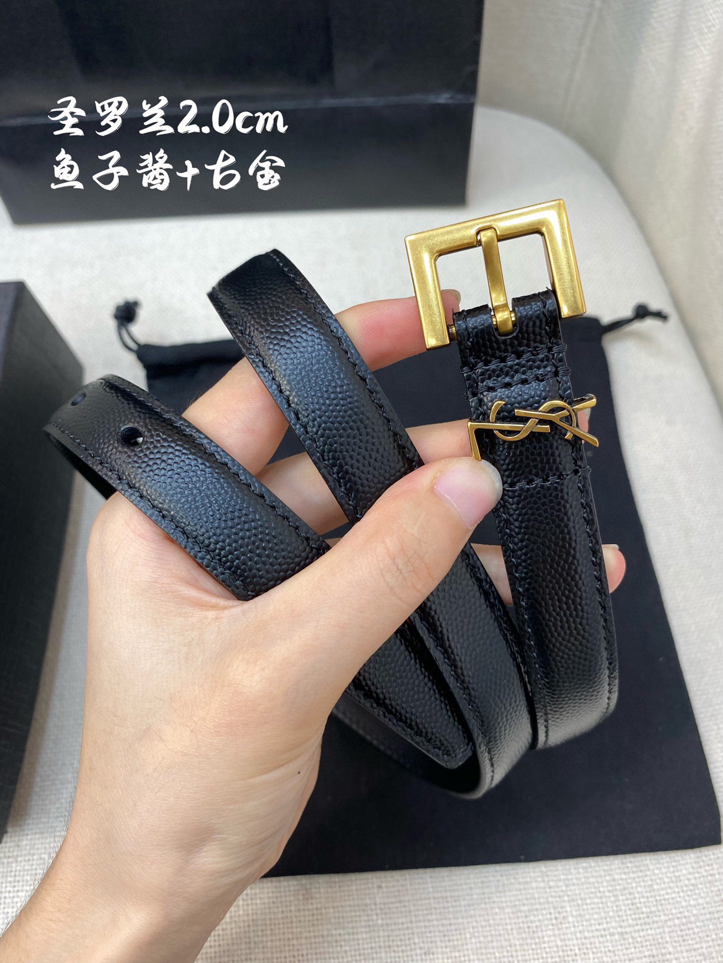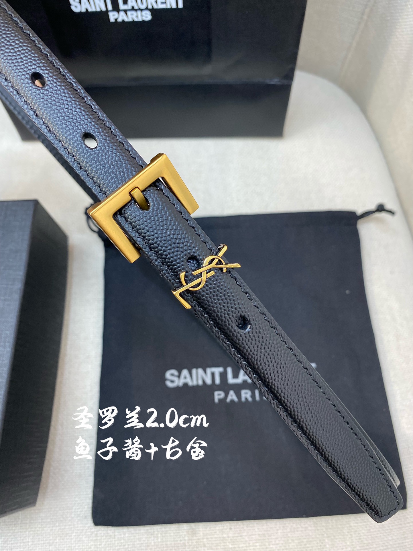 这款皮带是AAAAA 1:1 质量 (非常棒). 使用了和原版一模一样的材料. 商标部分也保持了和圣罗兰/Saint Laurent一样. 图片拍摄是实物皮带拍摄, 您所收到的实物保证和我们图片一模一样.