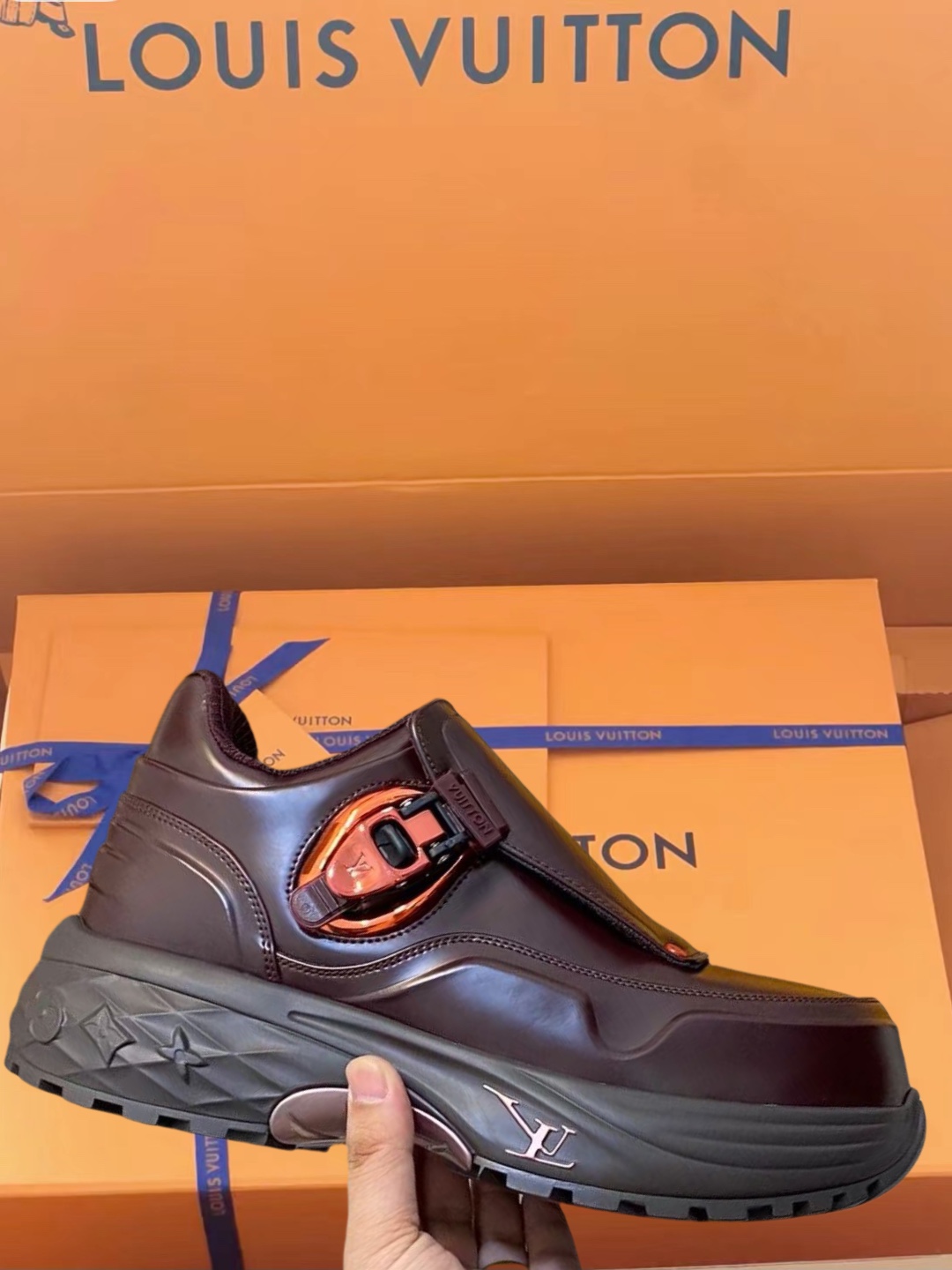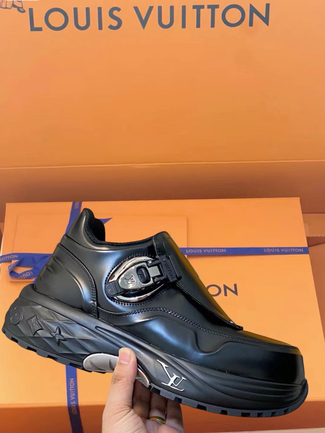 这款鞋子是AAAAA 1:1 质量 (非常棒). 使用了和原版一模一样的材料. 商标部分也保持了和路易威登/Louis Vuitton一样. 图片拍摄是实物鞋子拍摄, 您所收到的实物保证和我们图片一模一样.
