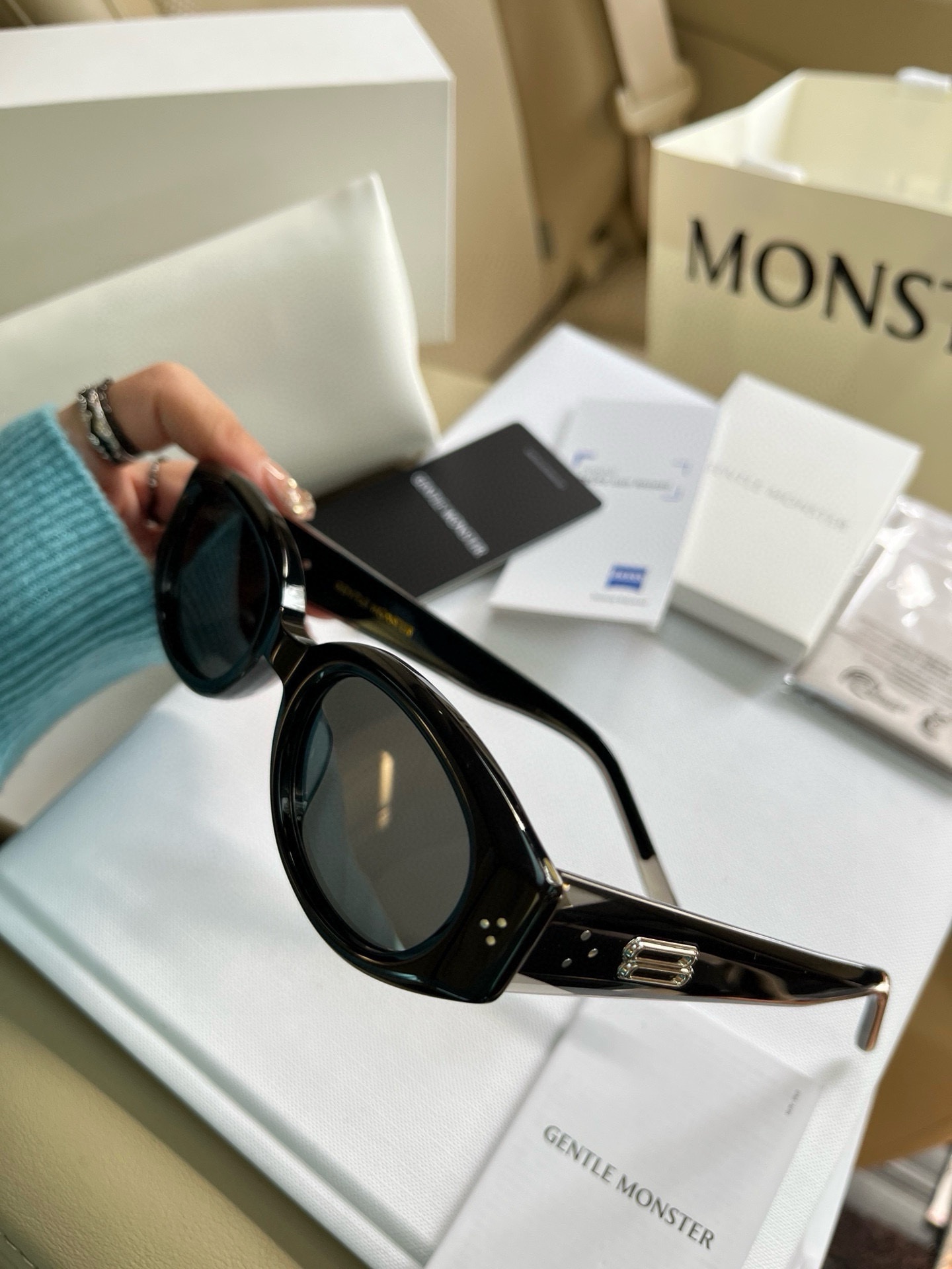 这款太阳眼镜是AAAAA 1:1 质量 (非常棒). 使用了和原版一模一样的材料. 商标部分也保持了和一样. 图片拍摄是实物太阳眼镜拍摄, 您所收到的实物保证和我们图片一模一样.
