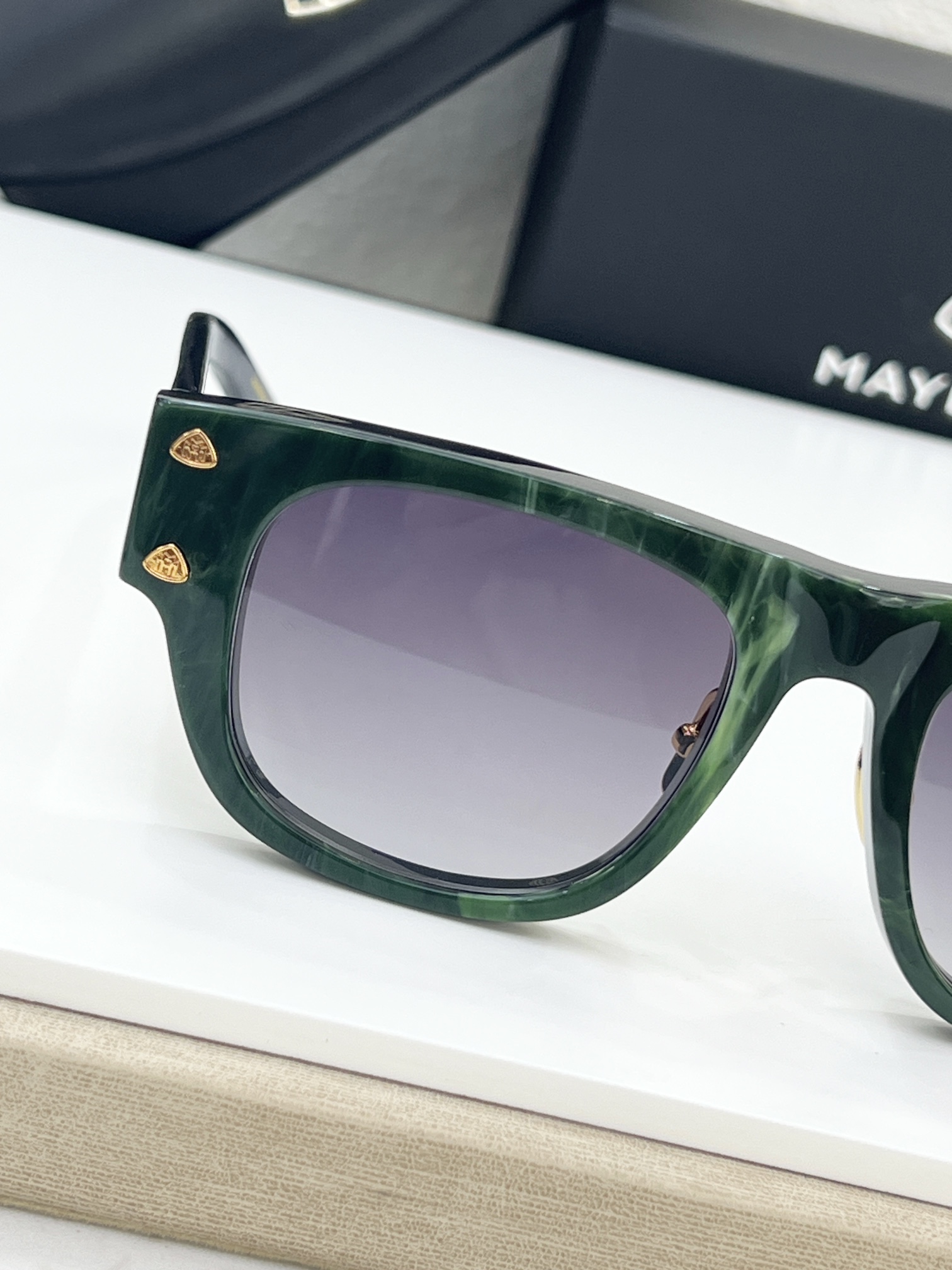 这款太阳眼镜是AAAAA 1:1 质量 (非常棒). 使用了和原版一模一样的材料. 商标部分也保持了和MAYBACH一样. 图片拍摄是实物太阳眼镜拍摄, 您所收到的实物保证和我们图片一模一样.