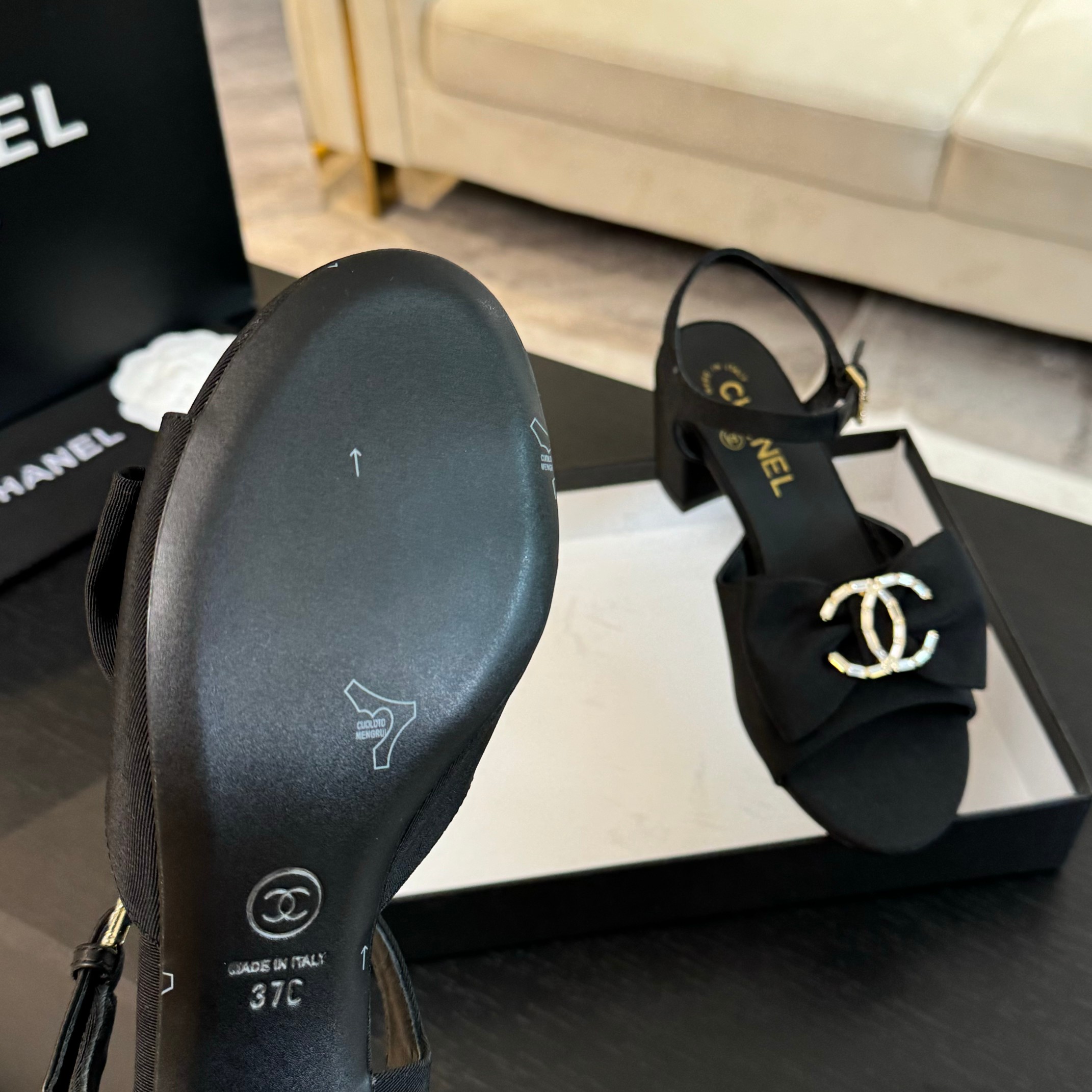 这款鞋子是AAAAA 1:1 质量 (非常棒). 使用了和原版一模一样的材料. 商标部分也保持了和香奈儿/Chanel一样. 图片拍摄是实物鞋子拍摄, 您所收到的实物保证和我们图片一模一样.