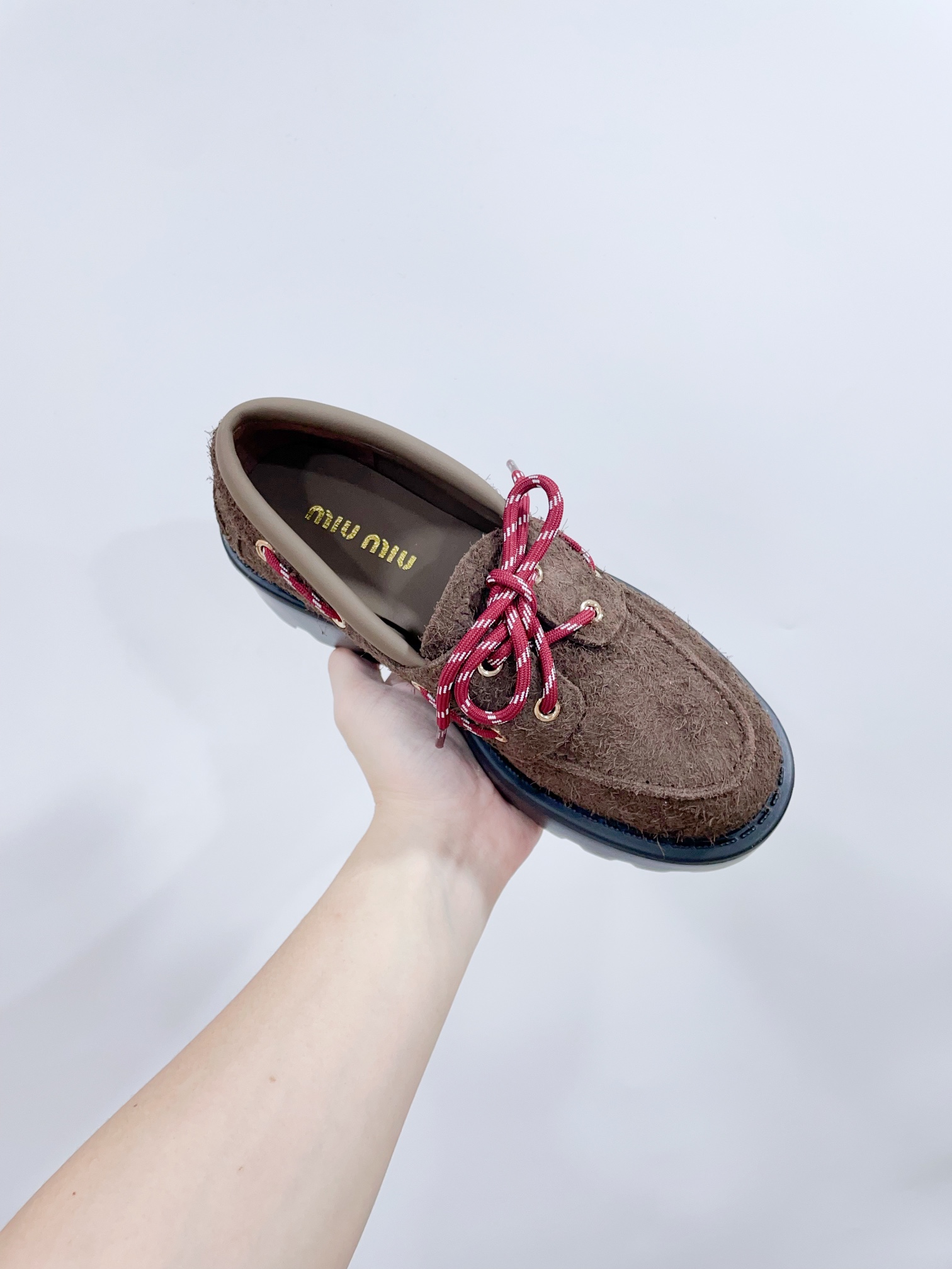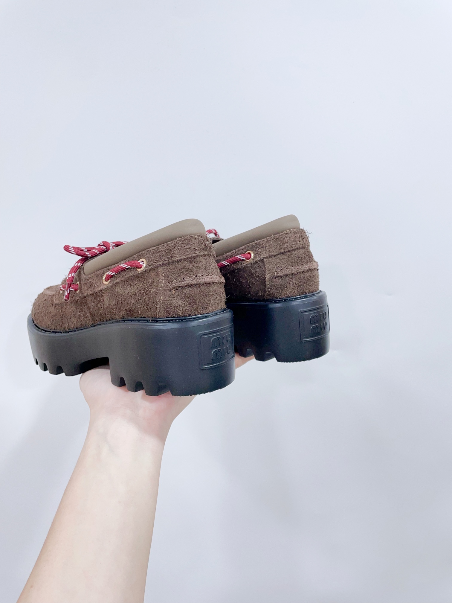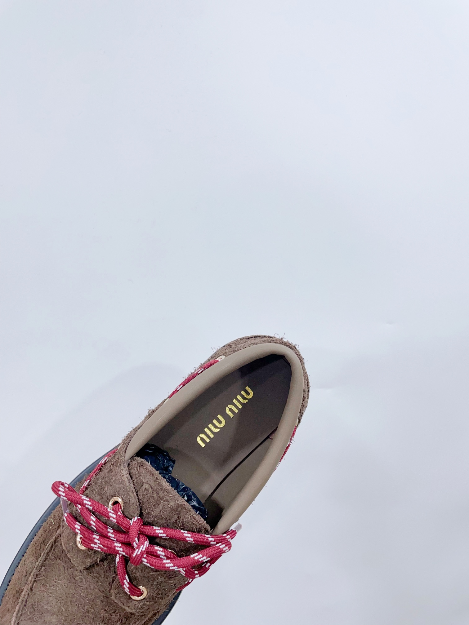 这款鞋子是AAAAA 1:1 质量 (非常棒). 使用了和原版一模一样的材料. 商标部分也保持了和缪缪/Miu Miu一样. 图片拍摄是实物鞋子拍摄, 您所收到的实物保证和我们图片一模一样.