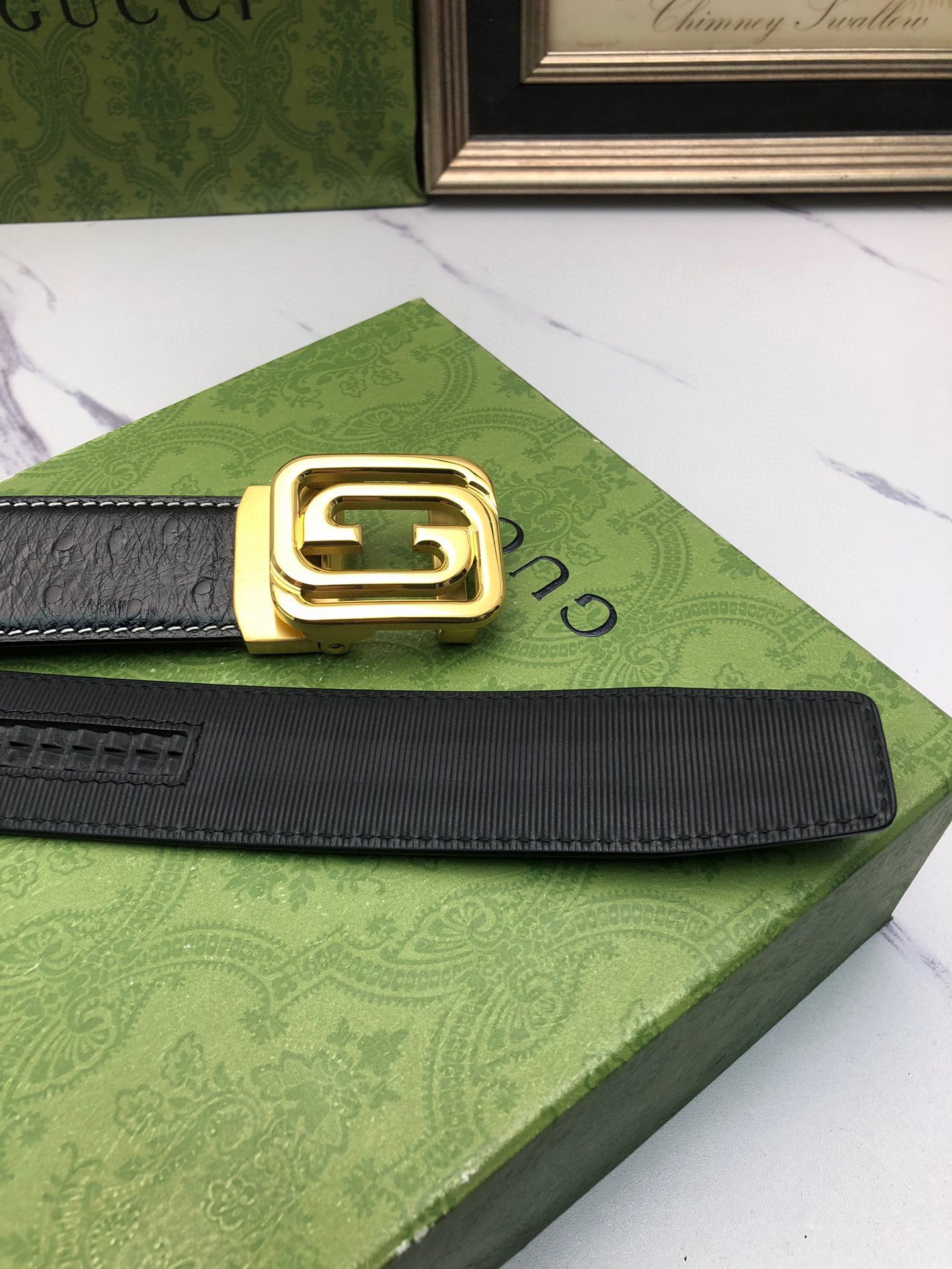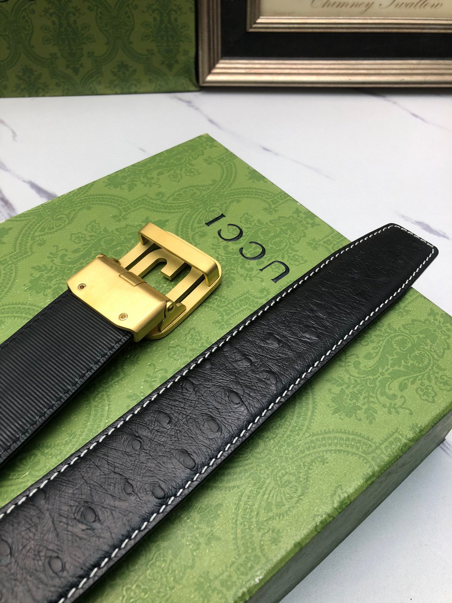 这款皮带是AAAAA 1:1 质量 (非常棒). 使用了和原版一模一样的材料. 商标部分也保持了和古奇/Gucci一样. 图片拍摄是实物皮带拍摄, 您所收到的实物保证和我们图片一模一样.